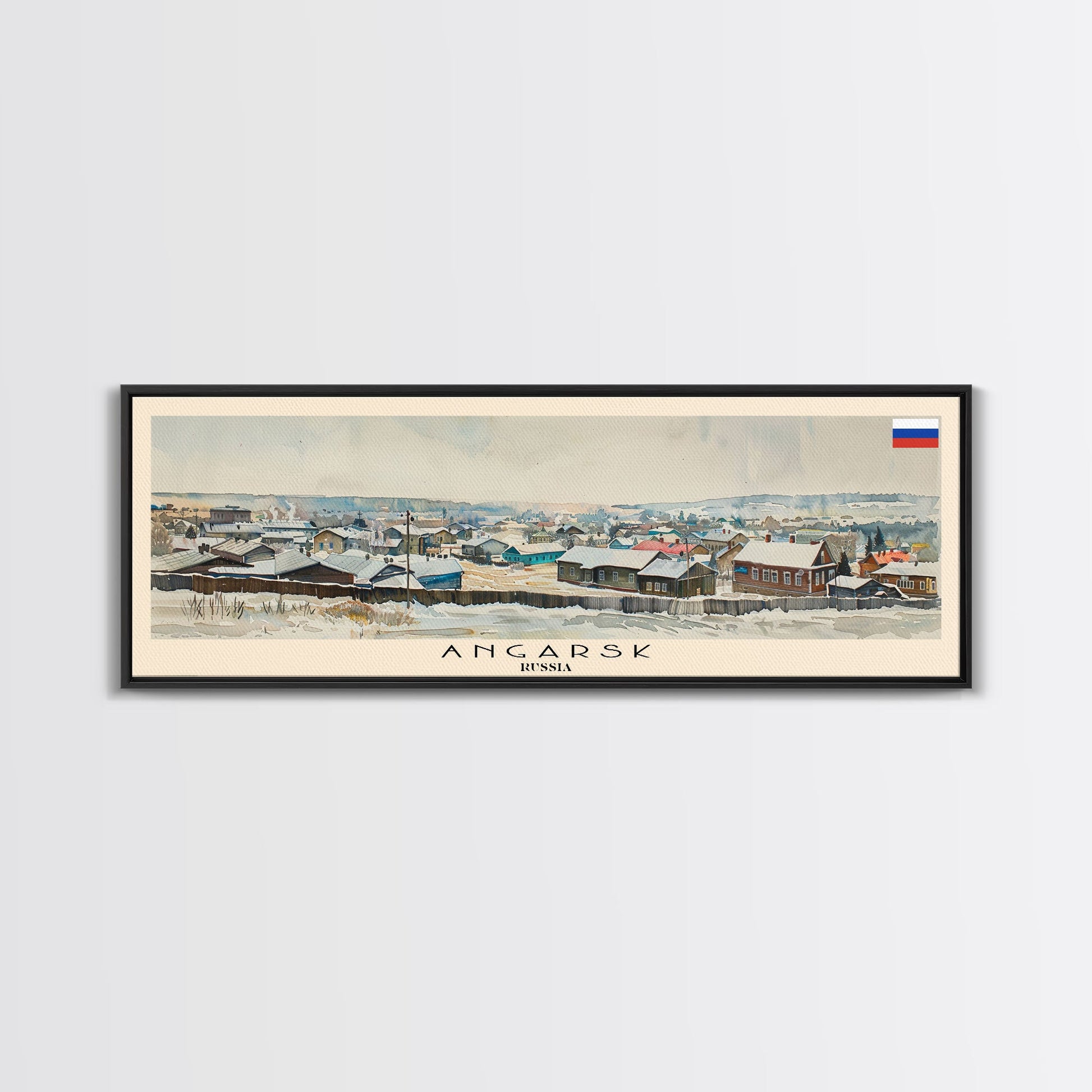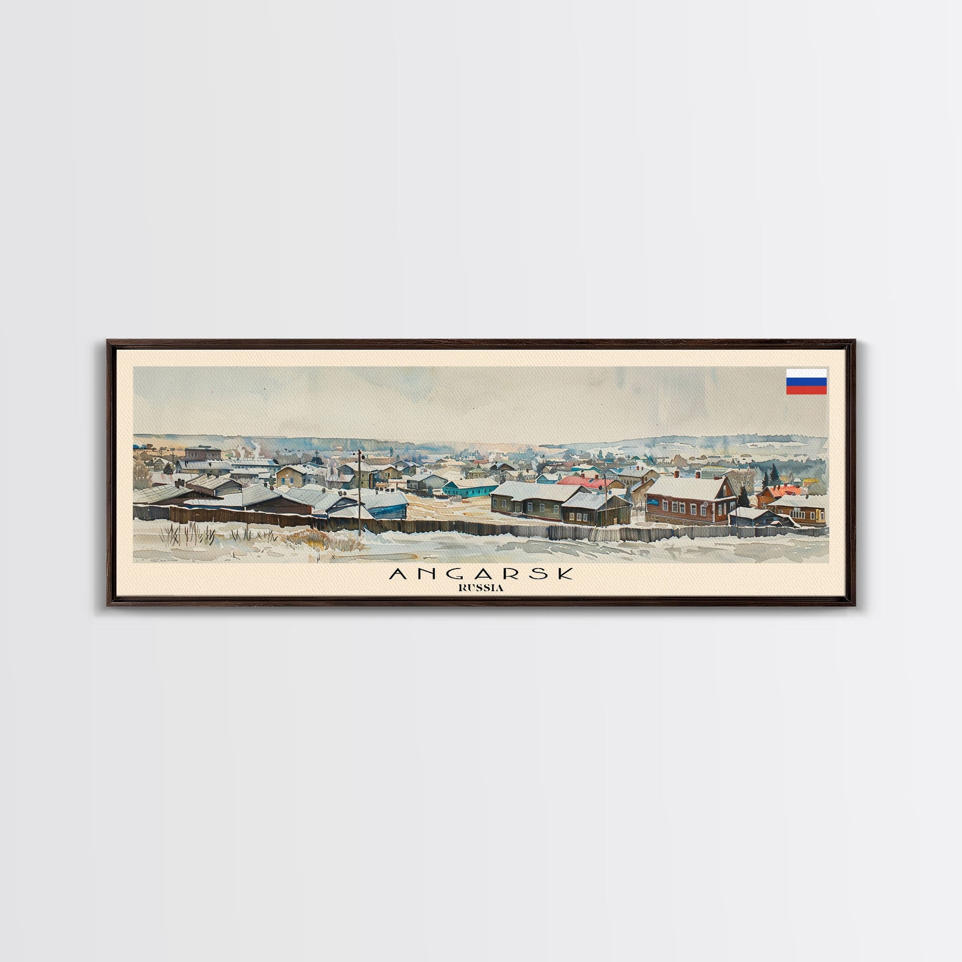 Angarsk Russia Panoramic Travel Poster, Framed Canvas Print or Metal Wall Art, Travel Art, Home Decor, Panoramic Painting, Midcentury Art