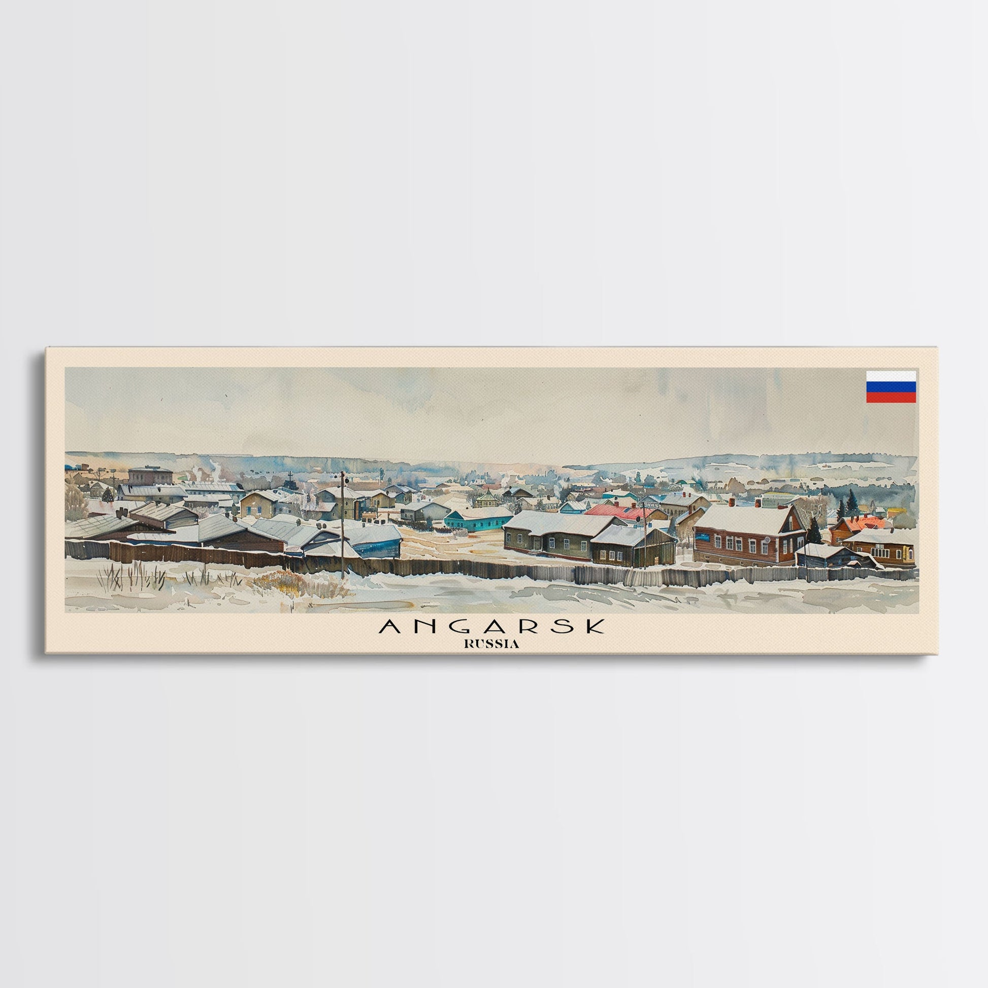 Angarsk Russia Panoramic Travel Poster, Framed Canvas Print or Metal Wall Art, Travel Art, Home Decor, Panoramic Painting, Midcentury Art