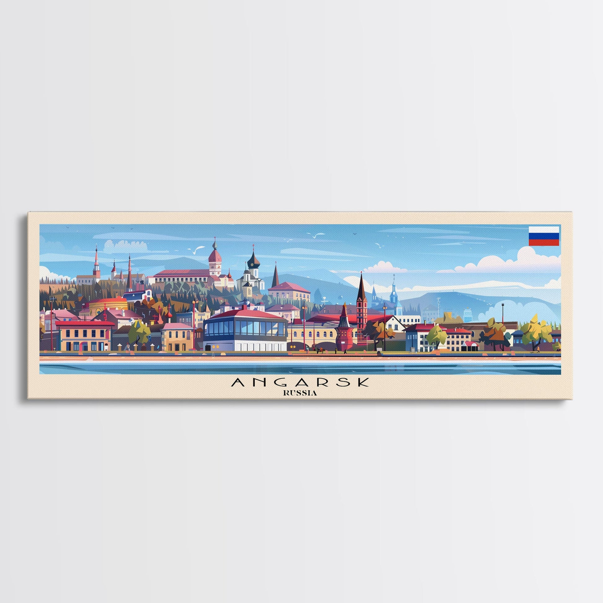 Angarsk Russia Panoramic Travel Poster, Framed Canvas Print or Metal Wall Art, Travel Art, Home Decor, Panoramic Painting, Midcentury Art