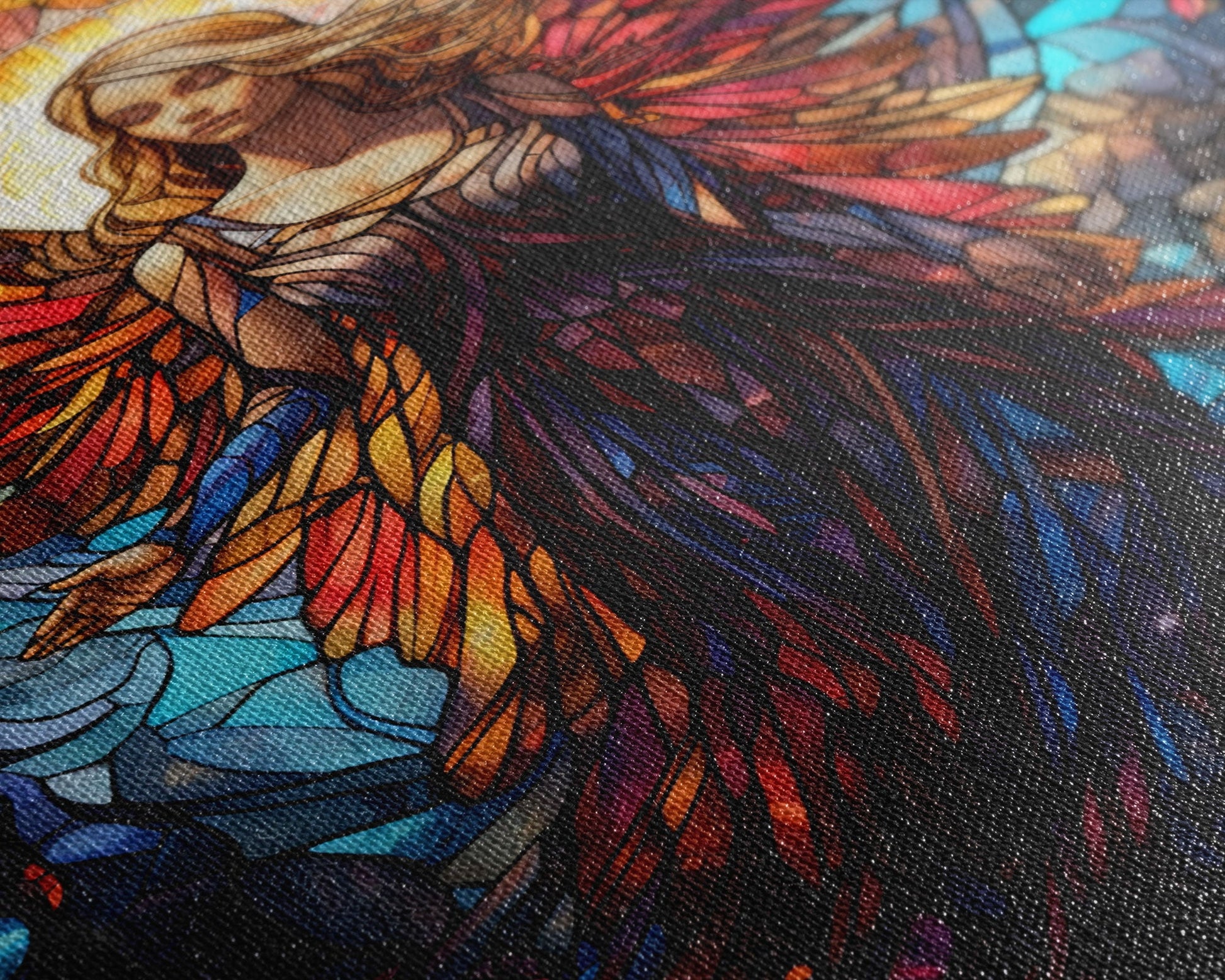 Angel, Fantasy Art, Angel Wings, Canvas Print, Wall Hanging, Portrait Art, Stained Glass Art, Housewarming Gift, Bedroom Teen Girl Art