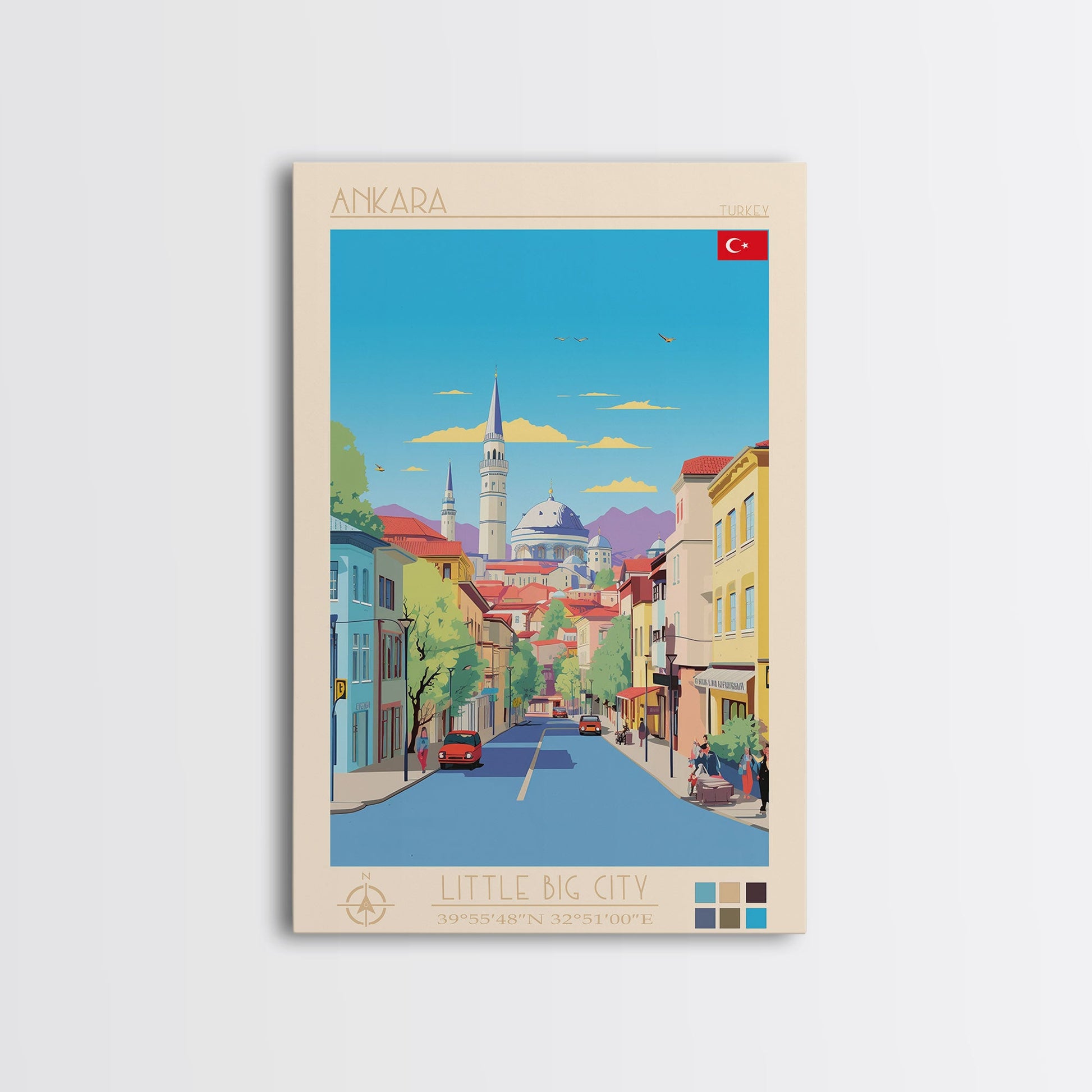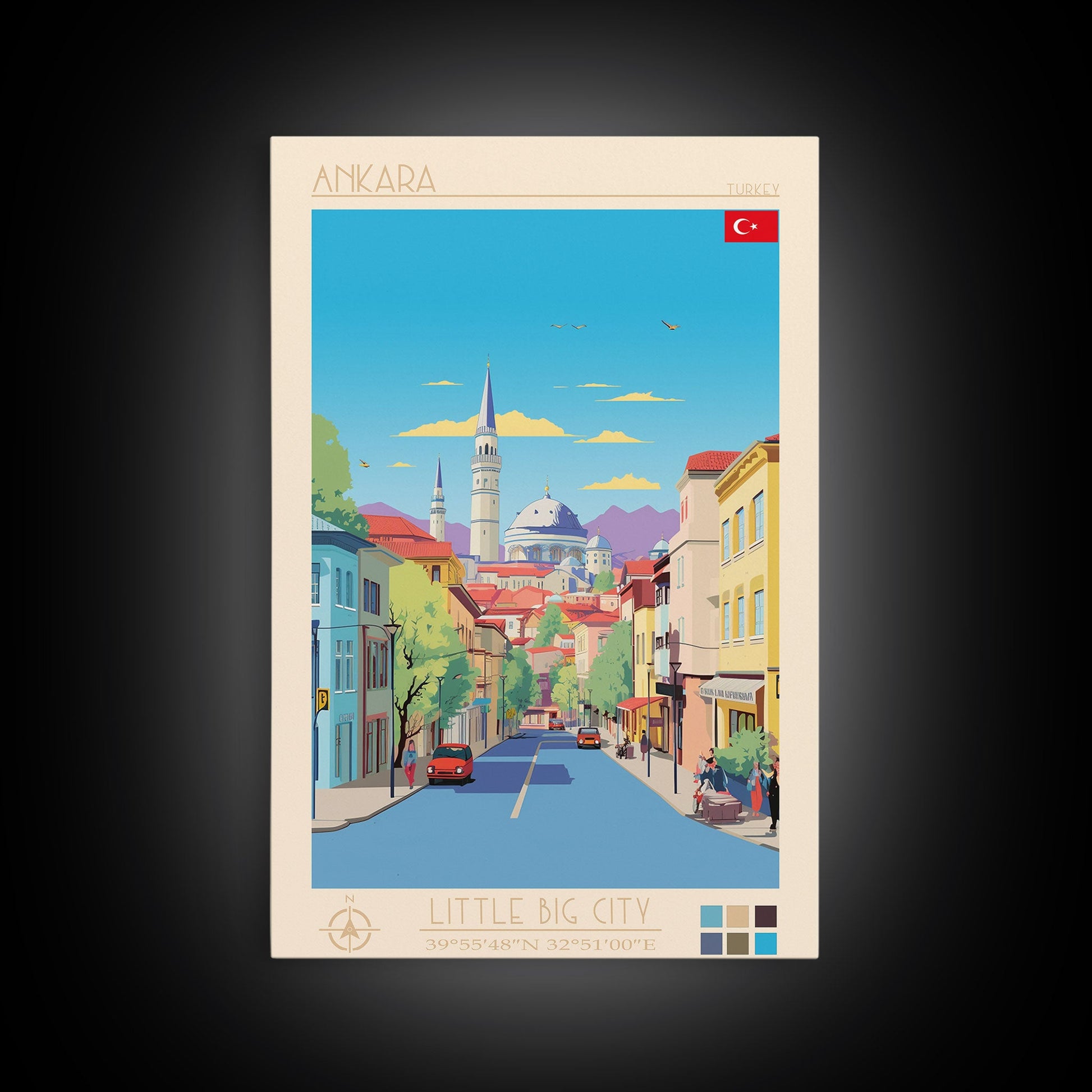 Ankara Turkey Travel Poster Framed Canvas Print, Midcentury Modern Art, Pop Art Wall Decor, Home Decor, Vacation Gift, Living Room Art
