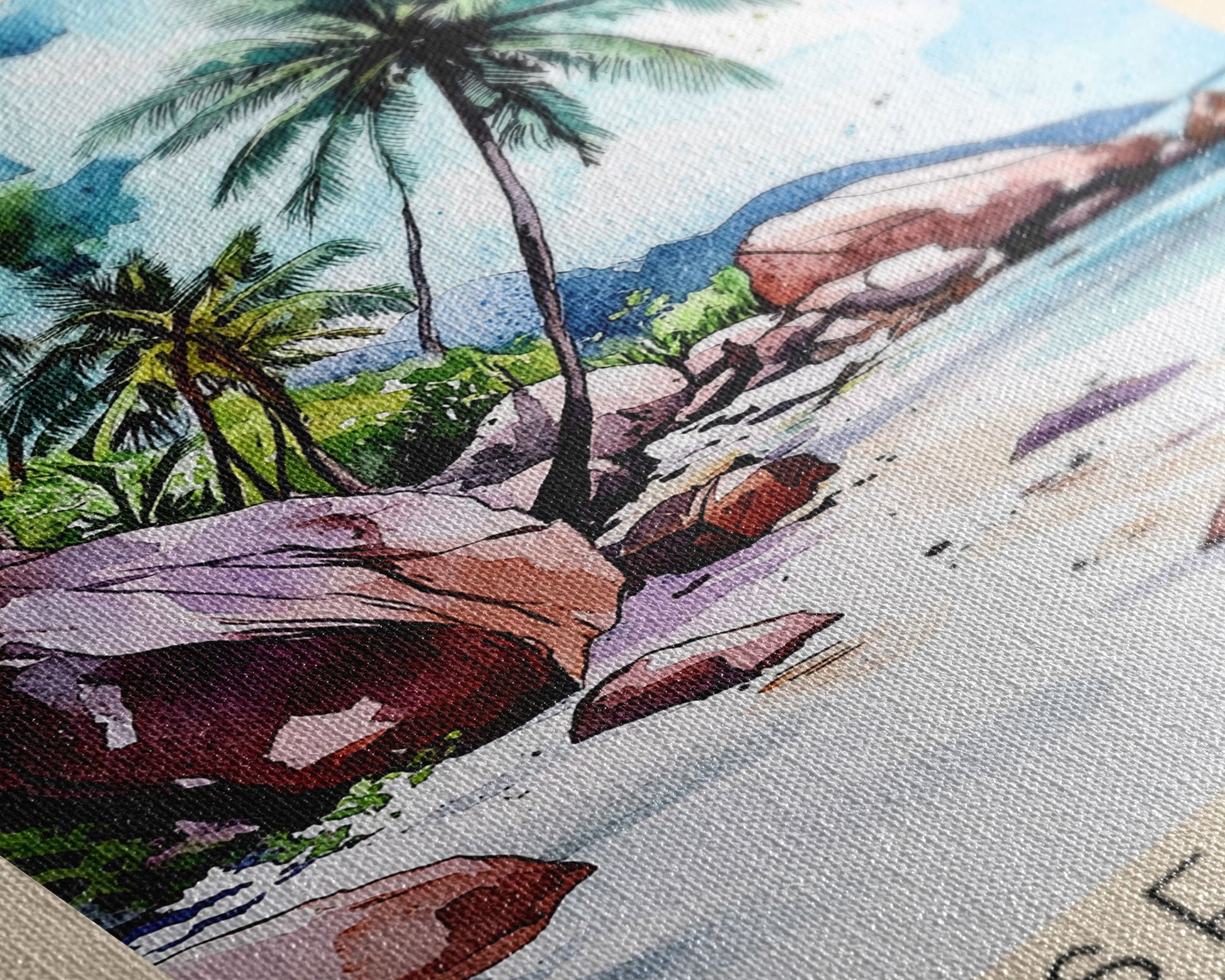Anse Cocos, Seychelles Watercolor Beach Print, Vacation Gift, Seychelles Wall Art, Beach Painting, Beach Decor, Beach Painting