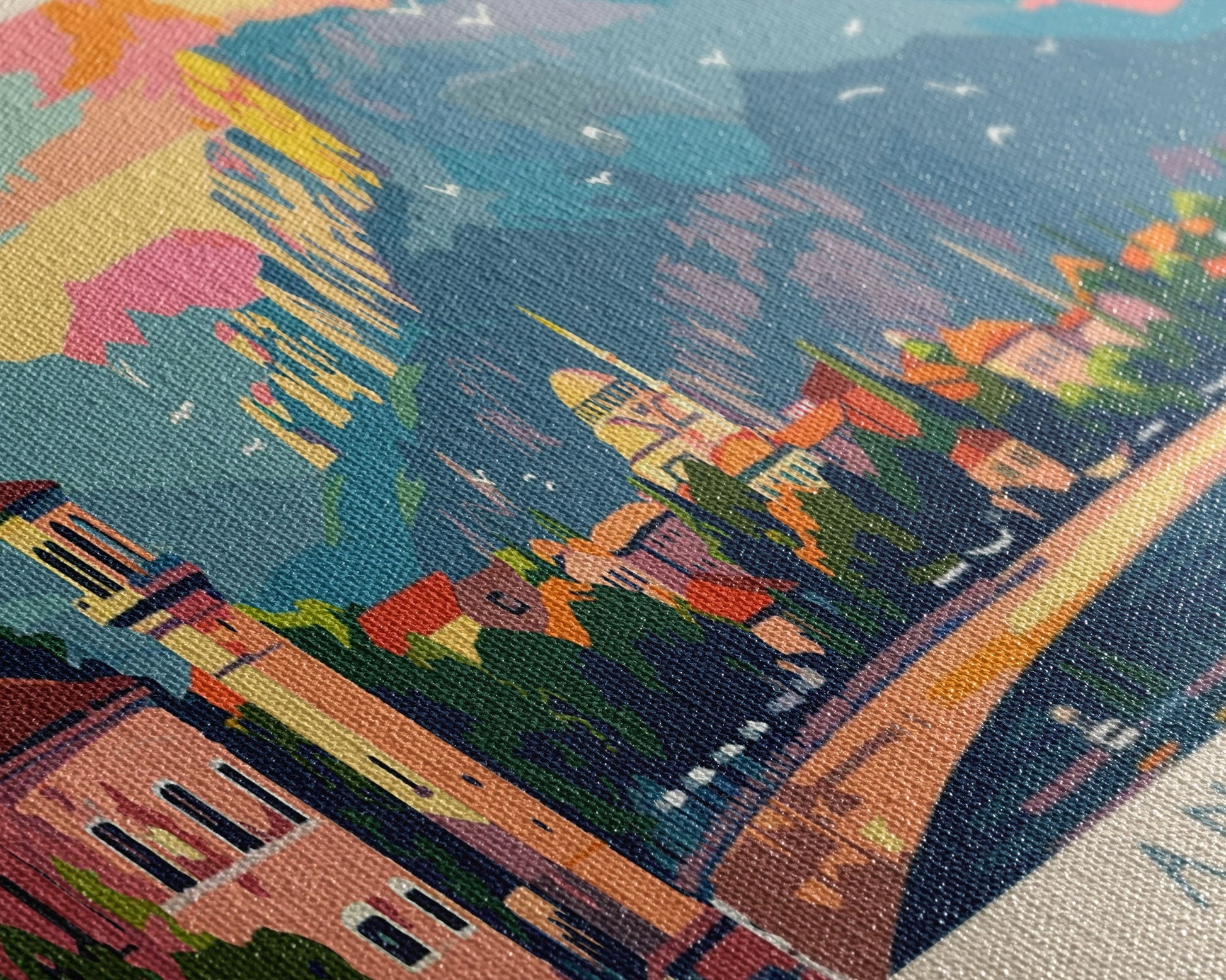 Antalya Turkey Panoramic Travel Poster, Framed Canvas Print or Metal Wall Art, Travel Art, Home Decor, Panoramic Painting, Midcentury Art