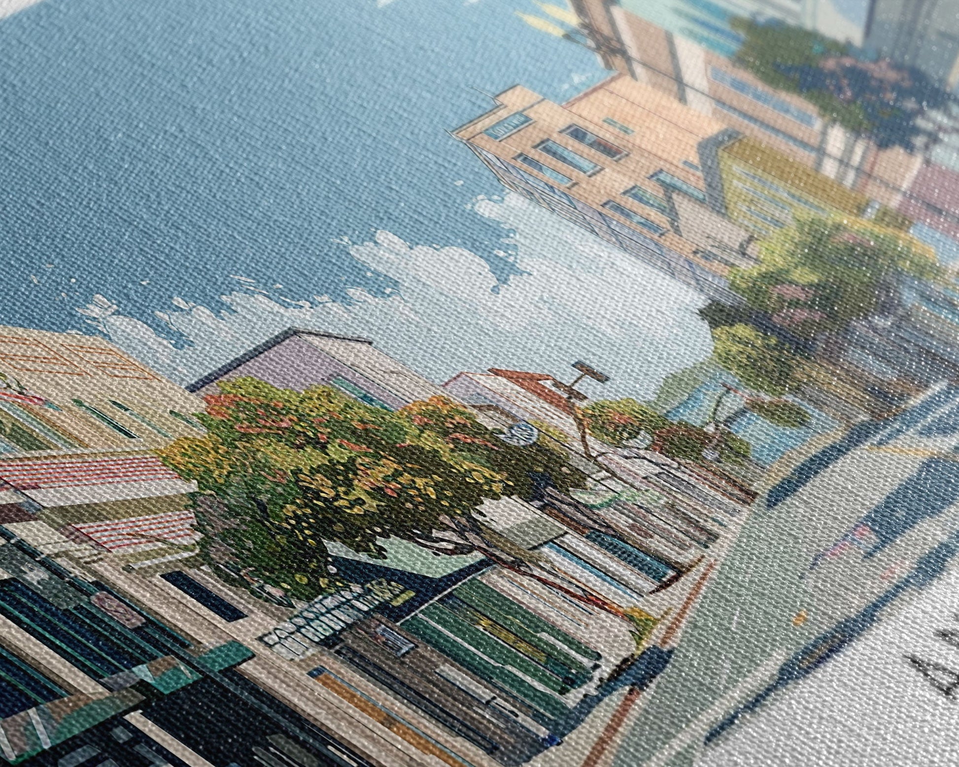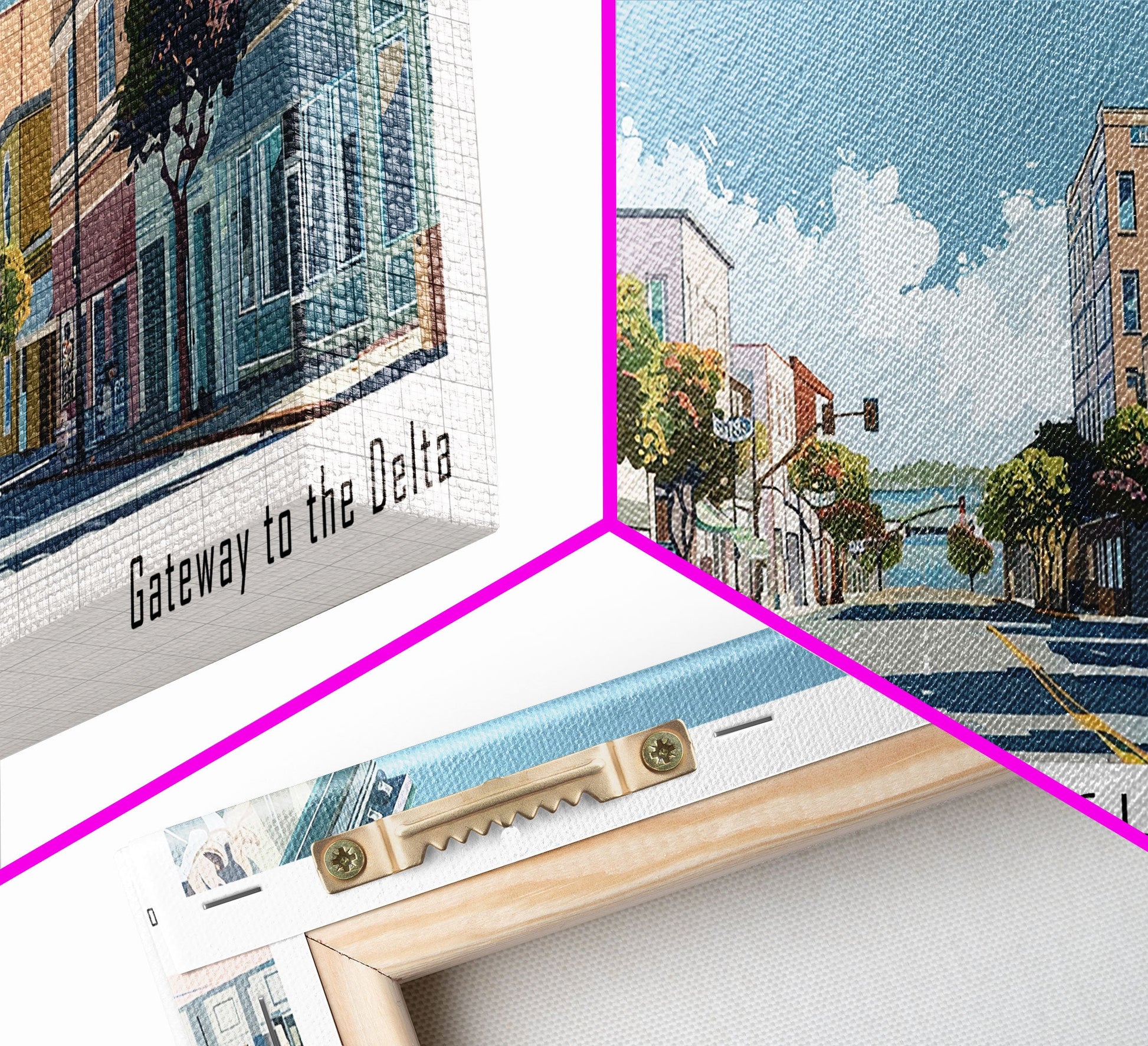 Antioch California Panoramic Painting, Mid Century Modern Framed Canvas Print, Retro Pop Art Travel Poster, Home Decor, City Art