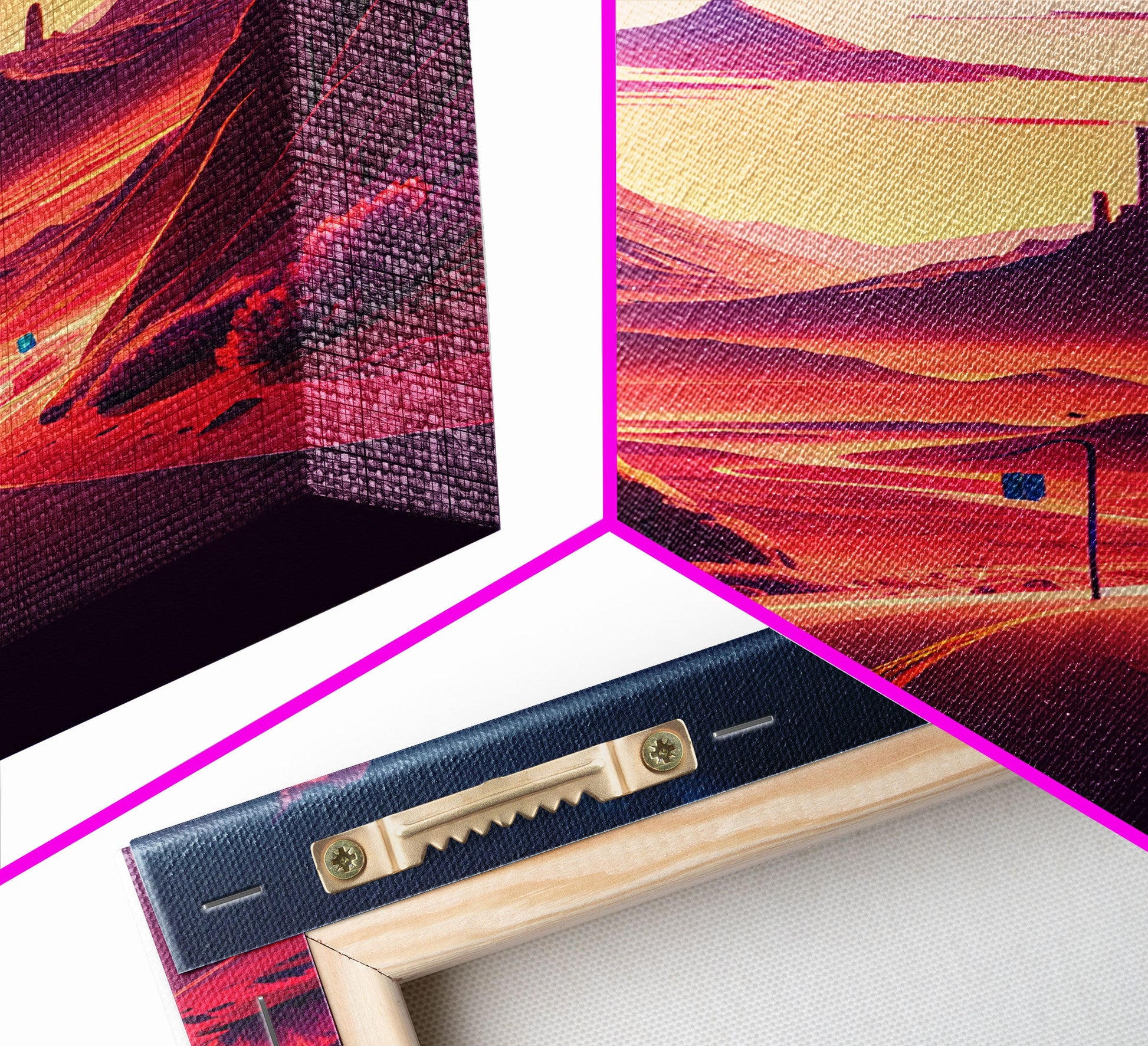 Hello and thank you for taking the time to view our modern high quality giclée artwork! We offer both posters and stretched canvas prints. Our posters are printed on Ultra Matte 60 lb / 230 GSM high quality photo paper, with a thickness of 10 mil. Our canvases are printed on museum grade 350 GSM canvas material with ECO friendly archival grade ink, then hand stretched and stapled over premium, FSC certified and shrink resistant frames. Designed and built to last a lifetime.