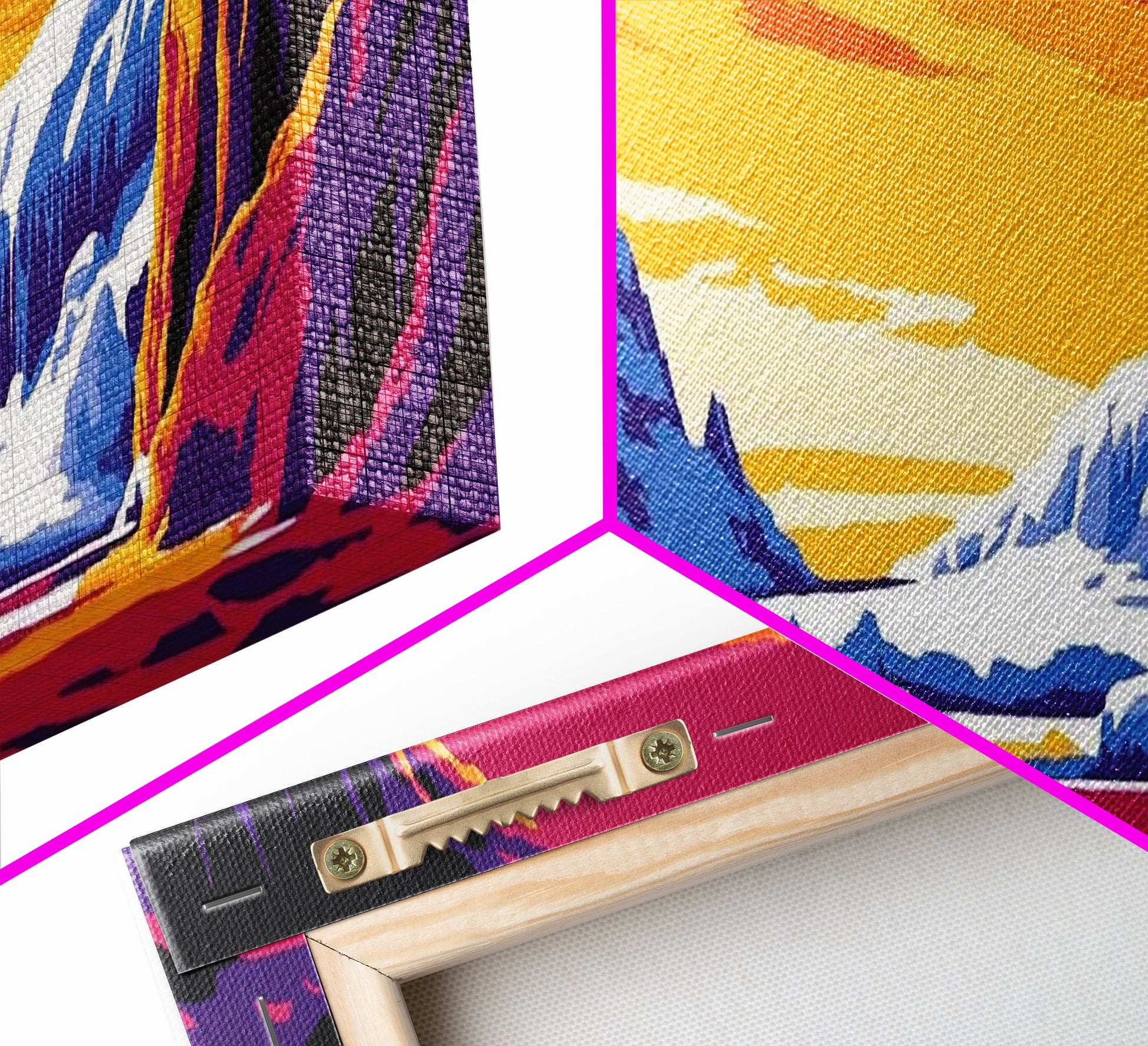 Hello and thank you for taking the time to view our modern high quality giclée artwork! We offer both posters and stretched canvas prints. Our posters are printed on Ultra Matte 60 lb / 230 GSM high quality photo paper, with a thickness of 10 mil. Our canvases are printed on museum grade 350 GSM canvas material with ECO friendly archival grade ink, then hand stretched and stapled over premium, FSC certified and shrink resistant frames. Designed and built to last a lifetime.