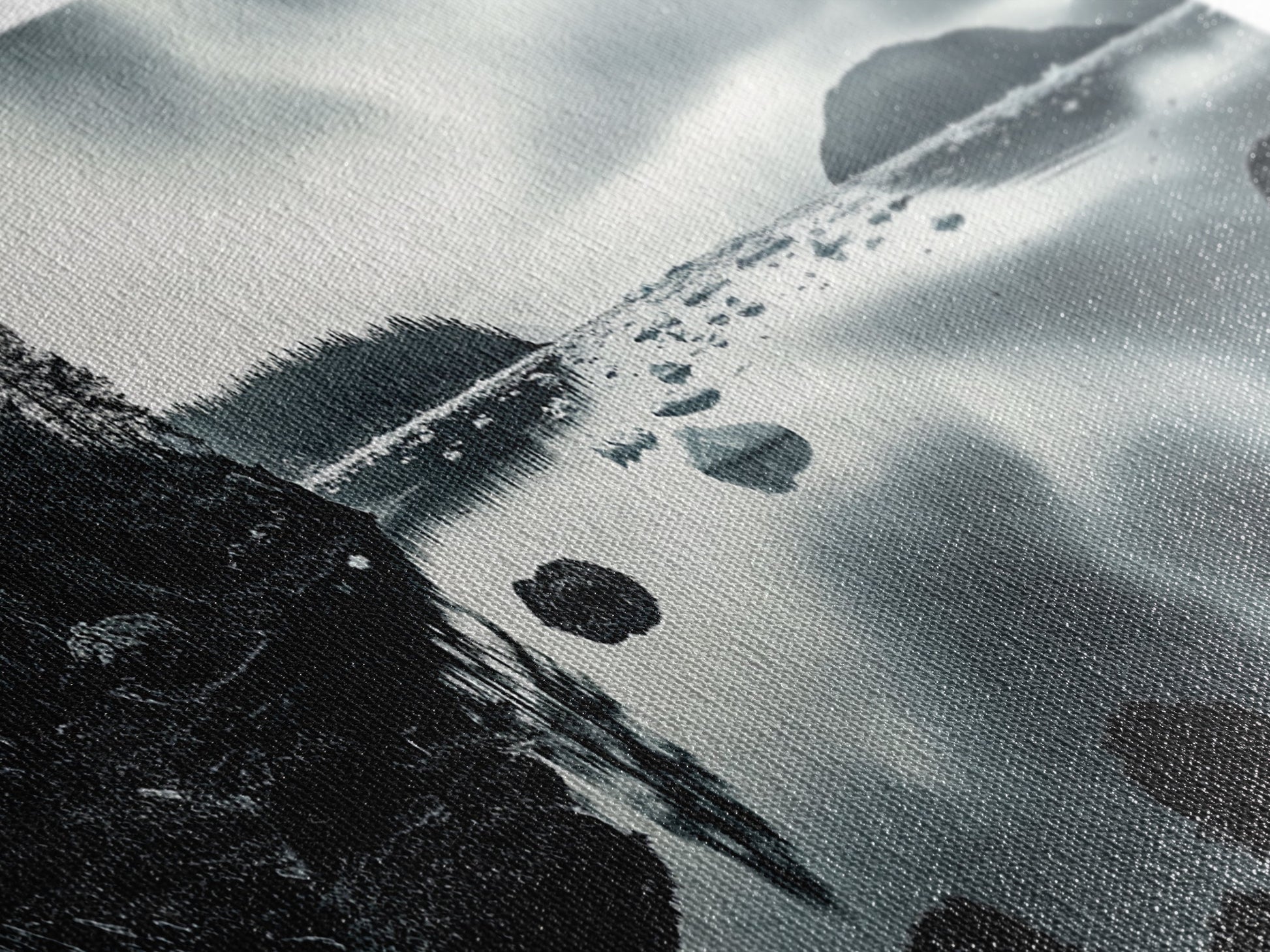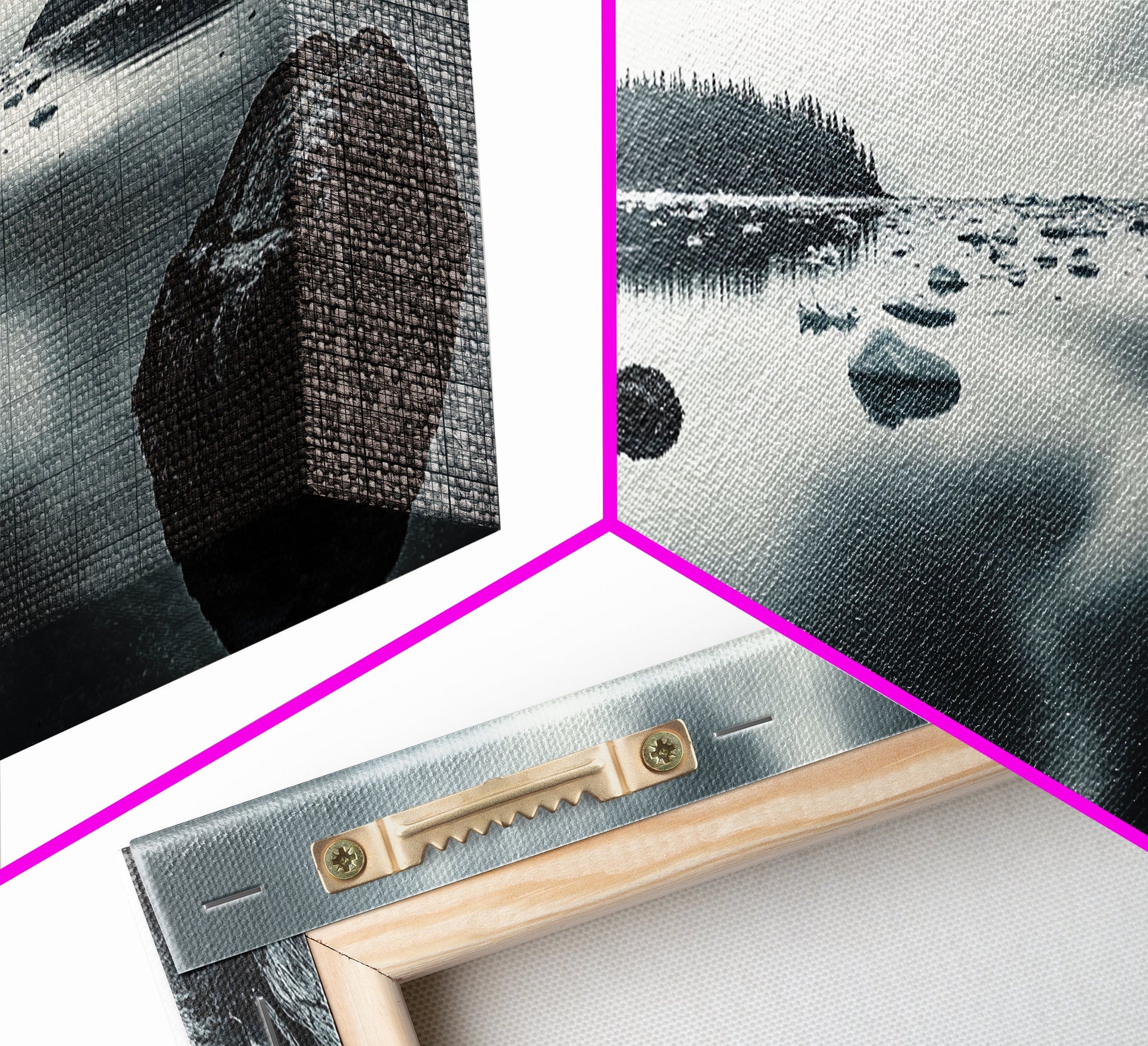 Arctic Shore, Ice Reflections, Northern Coastline, Framed Canvas Print, Moody ocean art, Coastal decor, Living room wall art, Monochrome nature