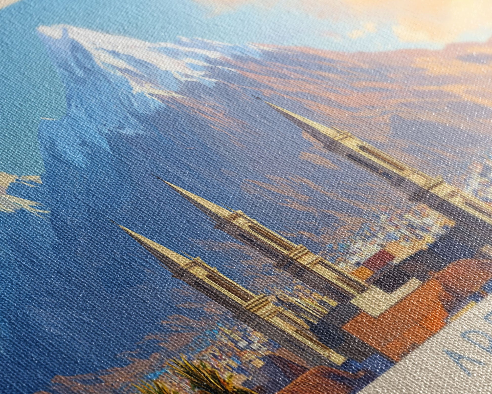 Most of our canvases are made in the USA, with the exception of canvases ordered with the light oak unstained frames, and any large canvases (24x48, 30x60, 16x48 and 20x60) ordered WITH a frame. These are temporarily made in and shipped from Europe, while we try to find a more consistent supplier in the USA.