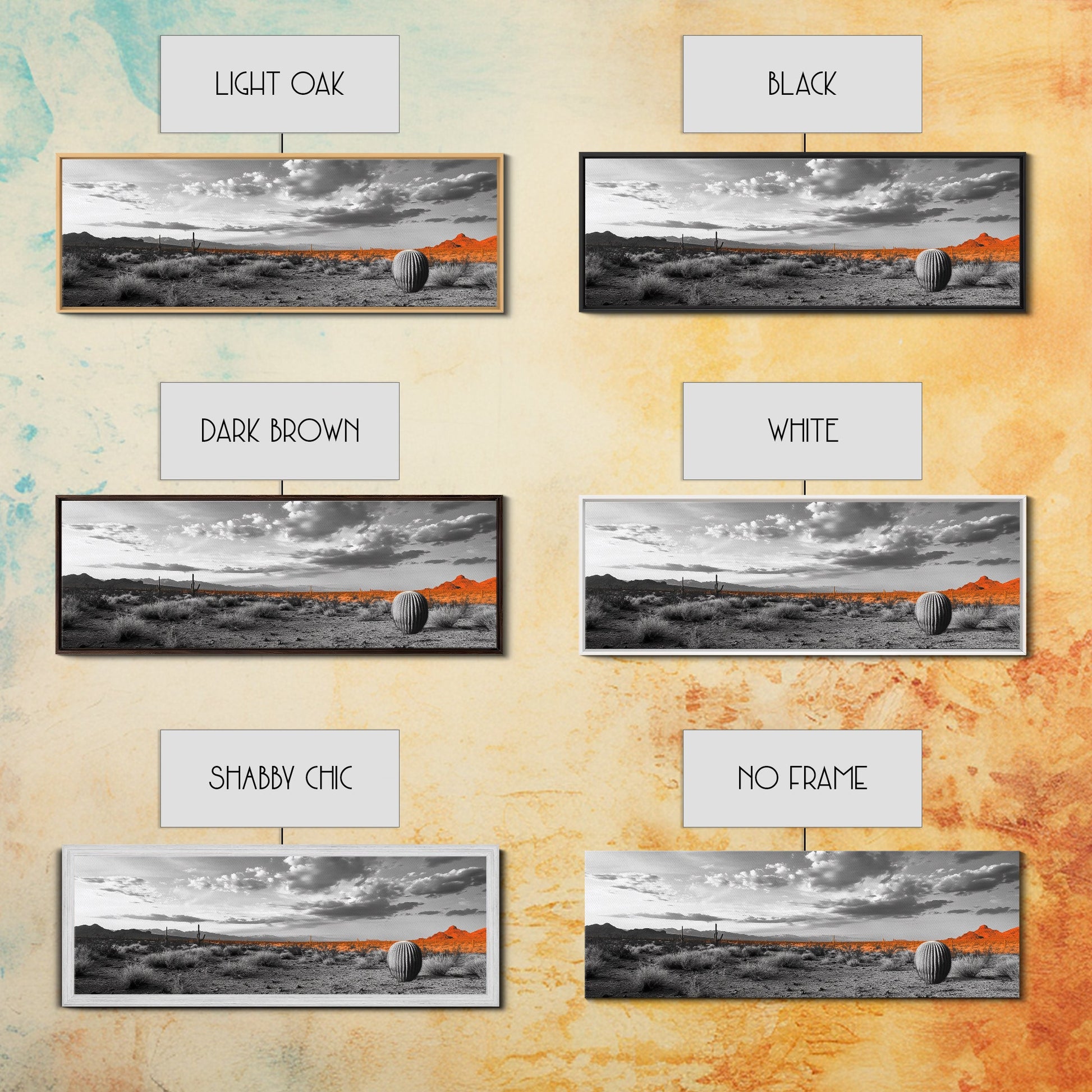 Arizona Desert Cactus, Orange Sunset Landscape, Saguaro Art, Framed Canvas Print, Western Wall Decor, Rustic Living Room Accent