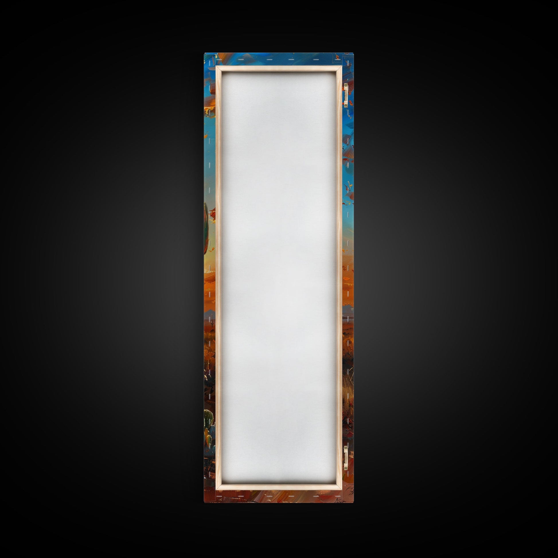 Arizona Desert Landscape with Saguaro Cactus at Sunset on a Framed Canvas Print Skinny Art Piece