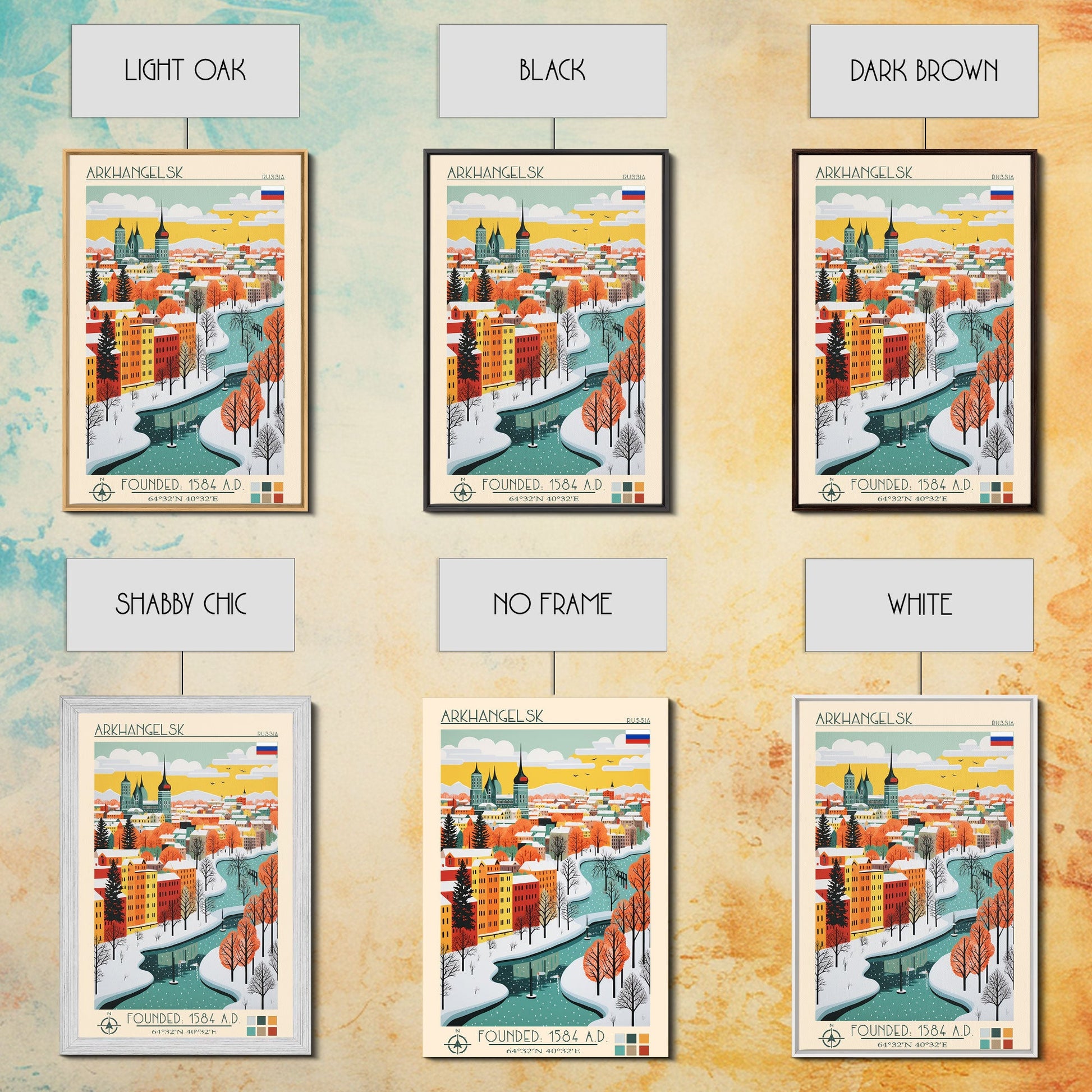 Arkhangelsk Russia Travel Poster Framed Canvas Print, Midcentury Modern Art, Pop Art Wall Decor, Home Decor, Vacation Gift, Living Room Art