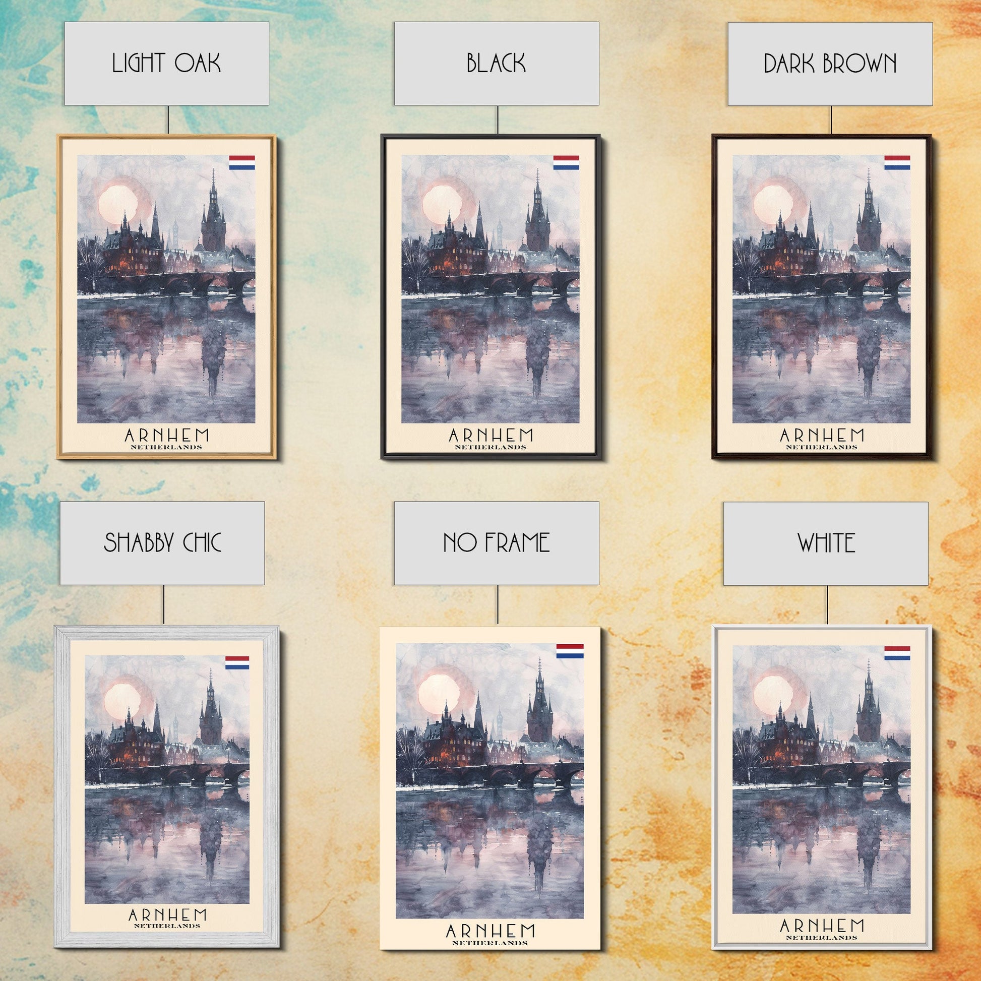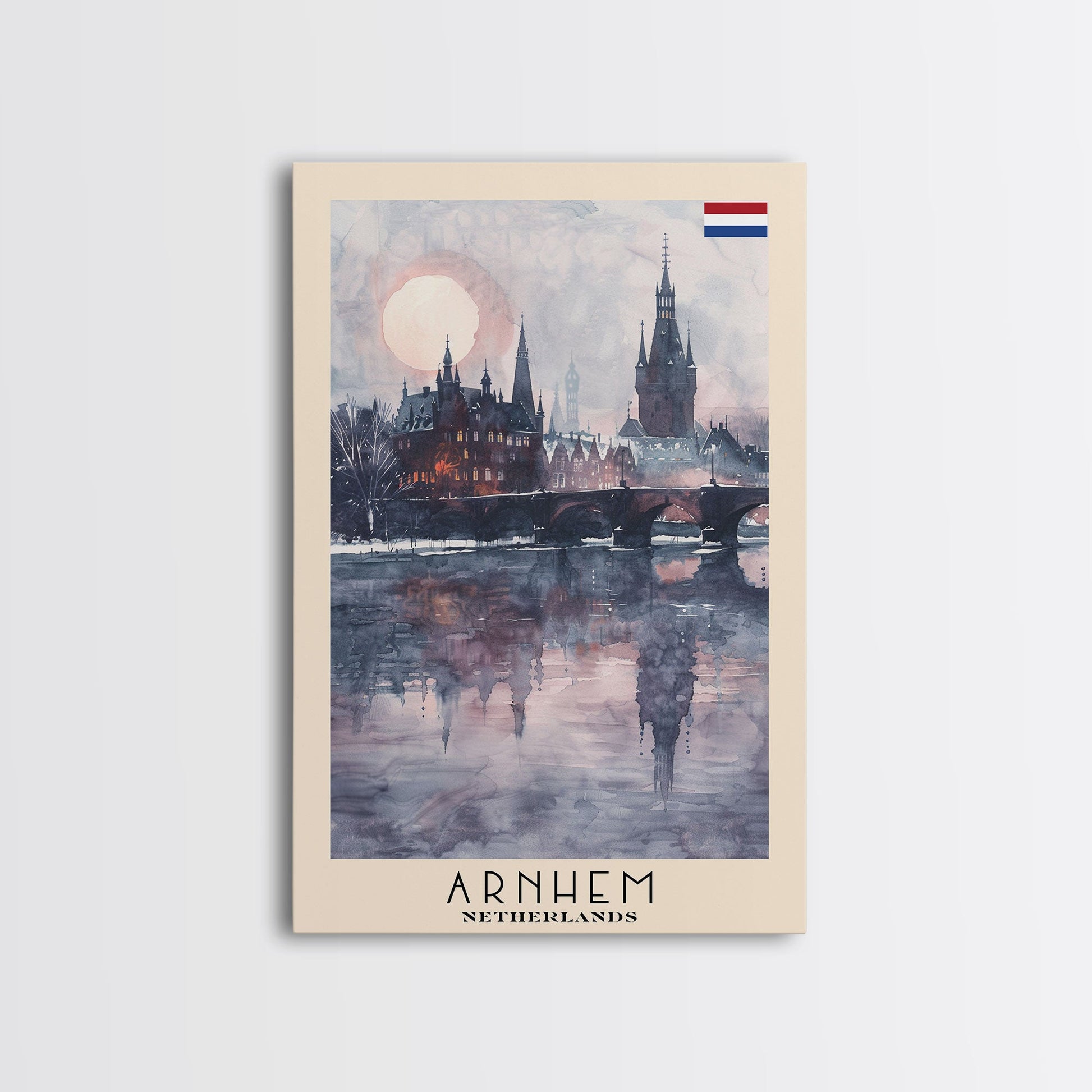 Arnhem Netherlands Travel Poster Framed Canvas Print, Wall Art, Home Decor, Vacation Print, Watercolor Painting, Cityscape Art