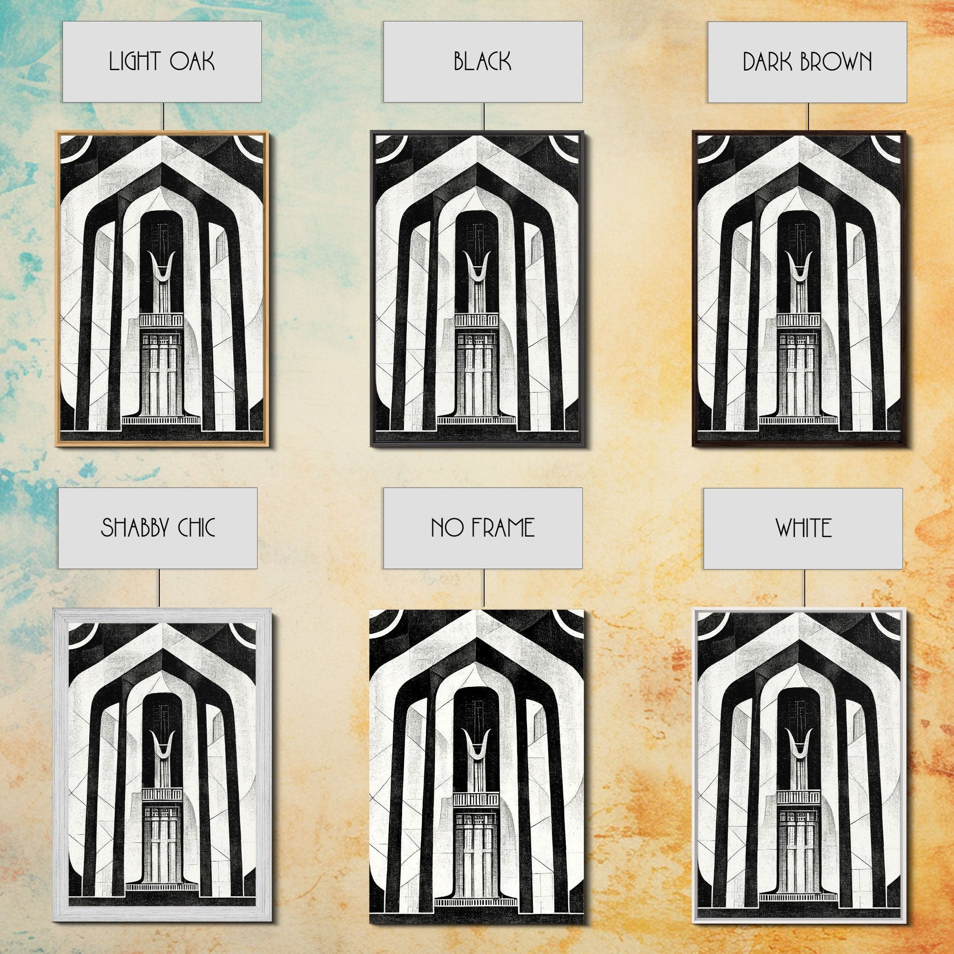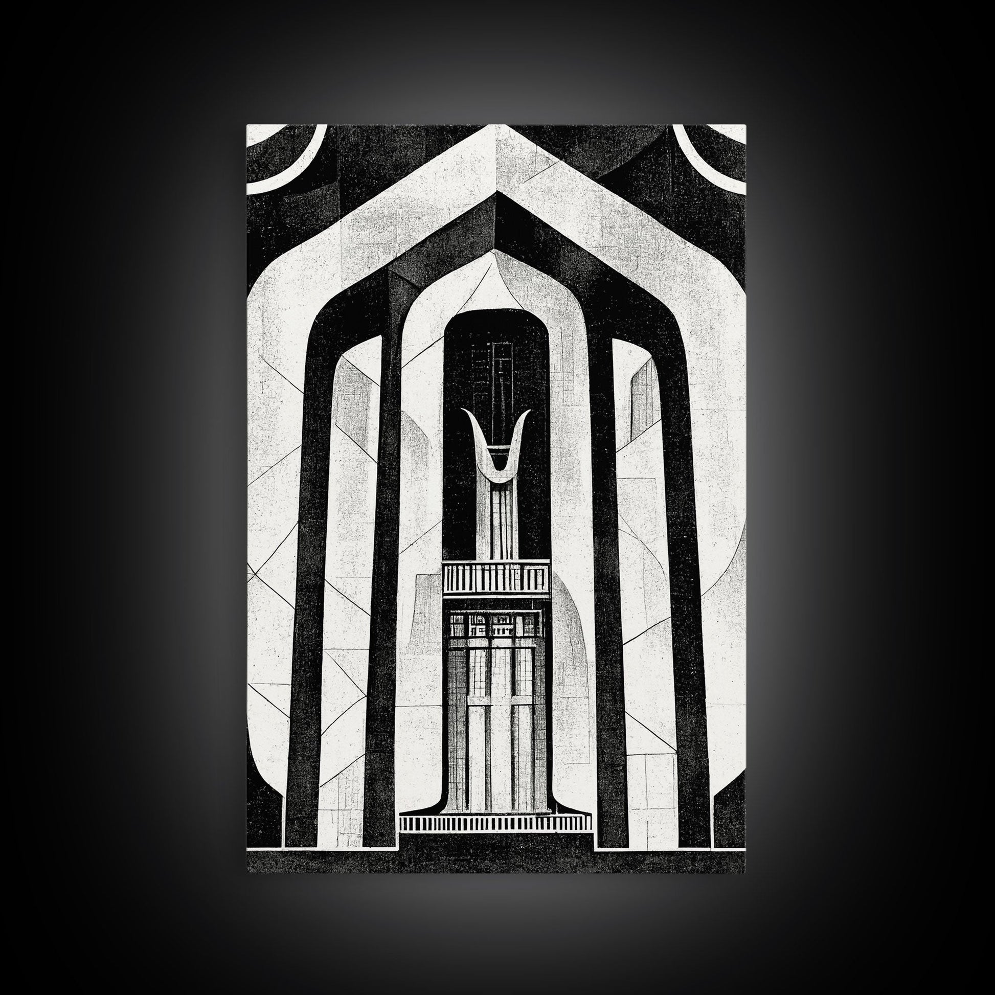 Art Deco Black And White Art Print, Art Deco Architecture, Framed Canvas Print, Ready To Hang Framed Wall Art, Living Room Wall Hanging