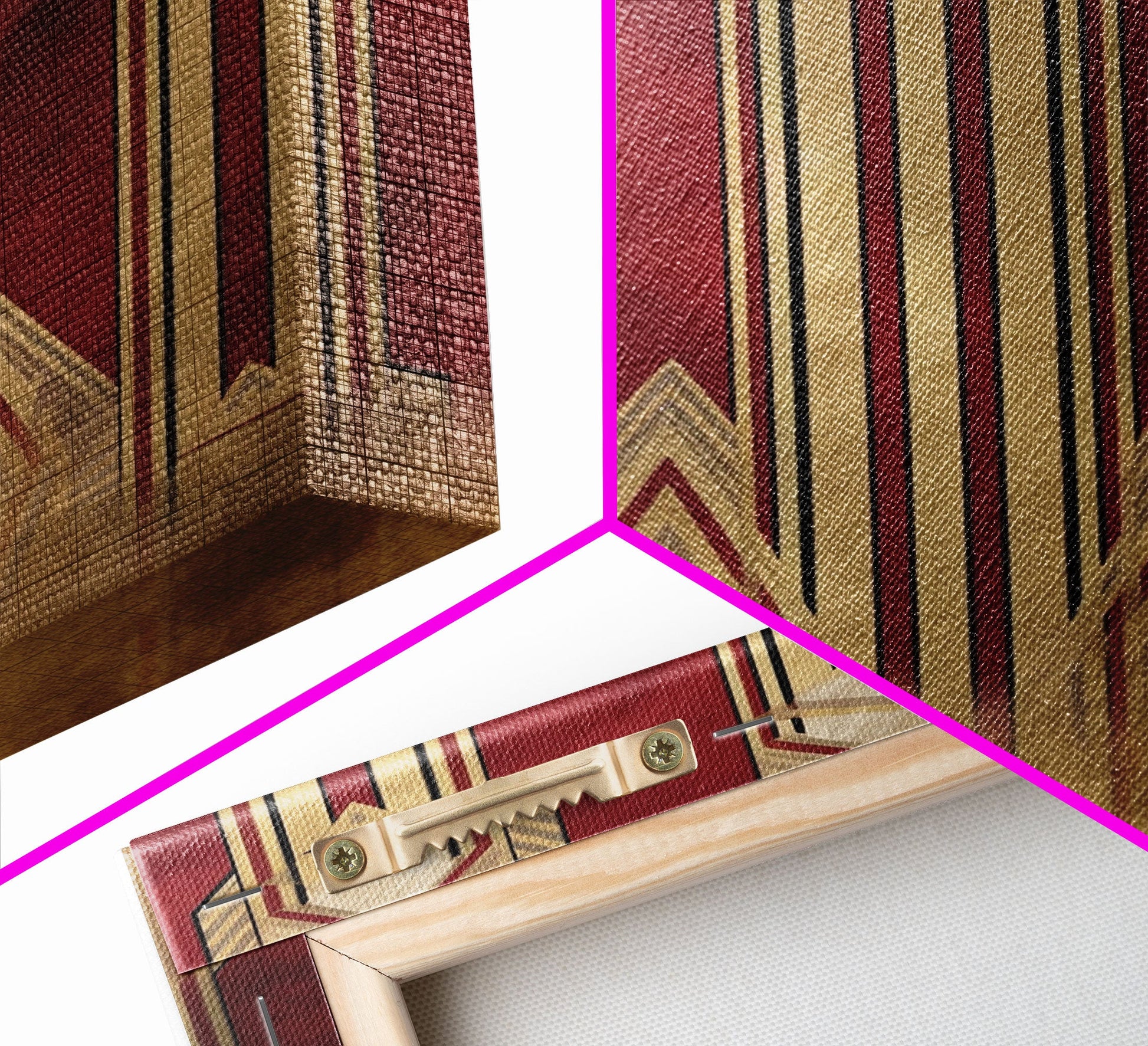 Art Deco Pattern Wall art - Framed Canvas Print - Art Deco - Abstract art - Gold & red art - Lines art - Living room art - Office decor