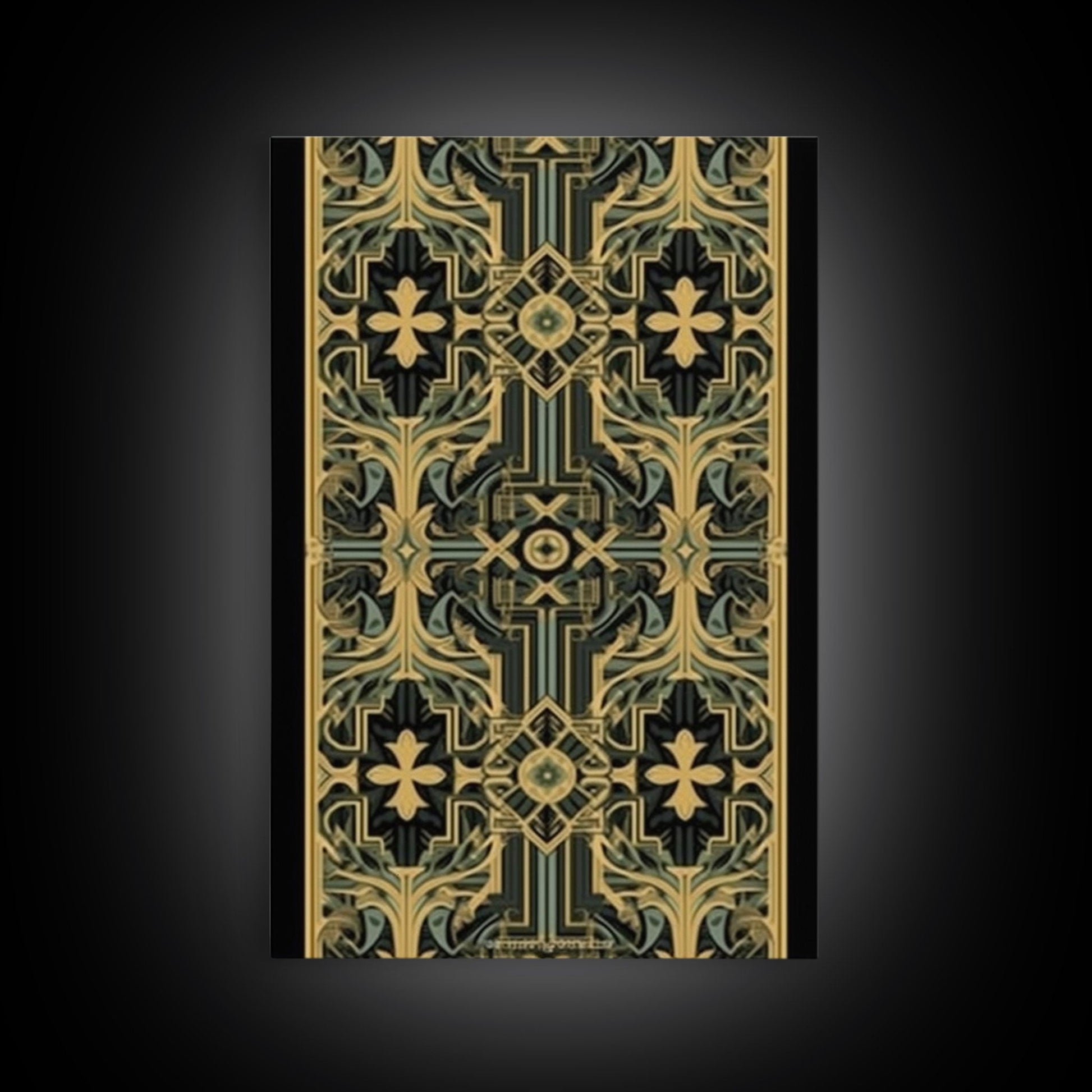 Art Deco Pattern Wall art, Framed Canvas Print, Art Deco, Gold & green art, Framed painting, Black colors, Wonderful art, 1920s Style Art