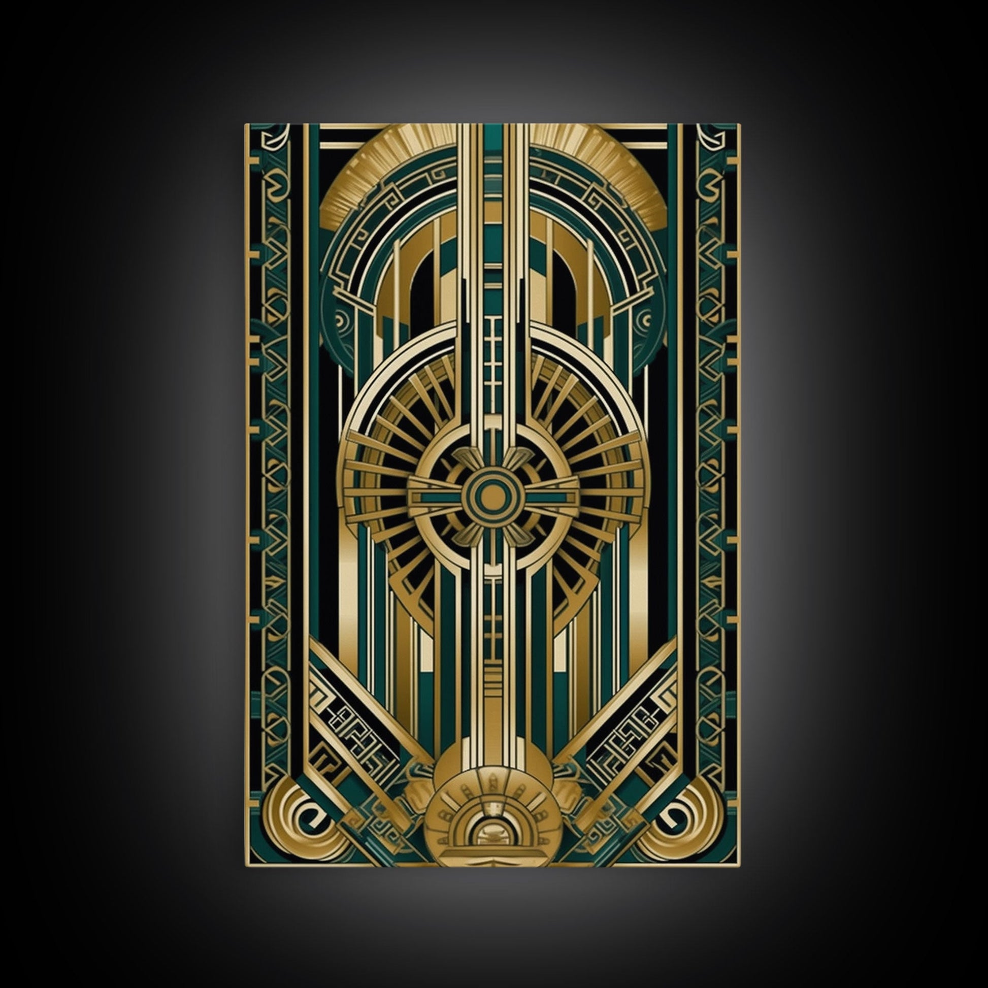Art Deco Pattern Wall art | Framed Canvas Print | Art Deco | Gold & green art | Wonderful art | Lines art | Geometric art | Living room art