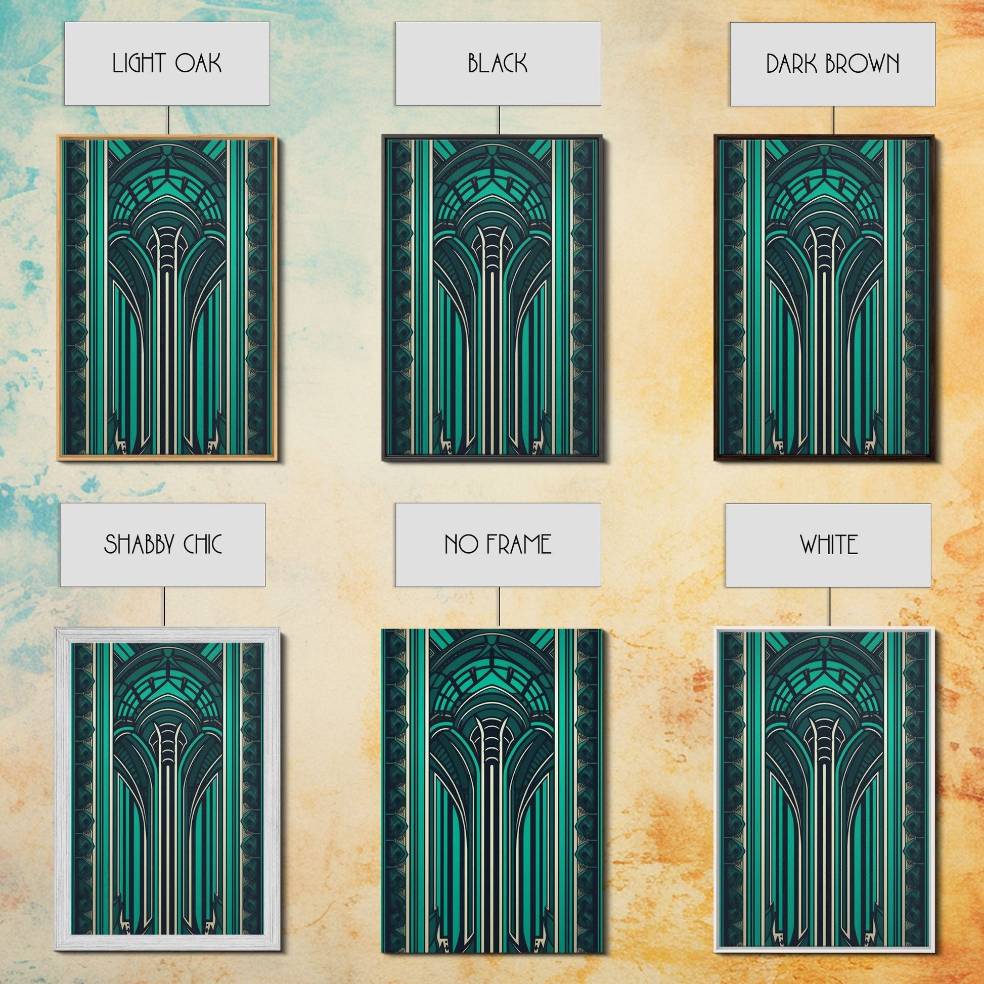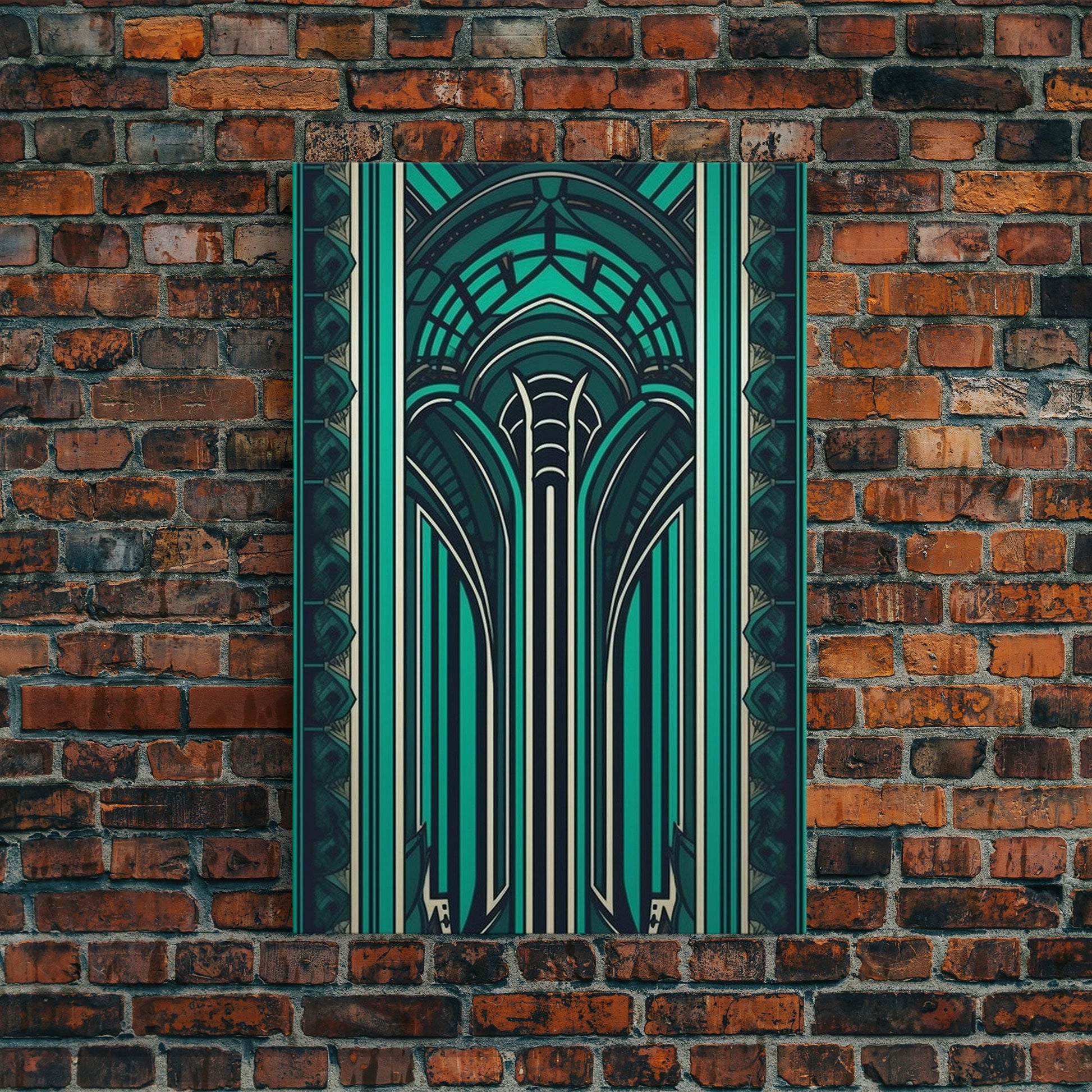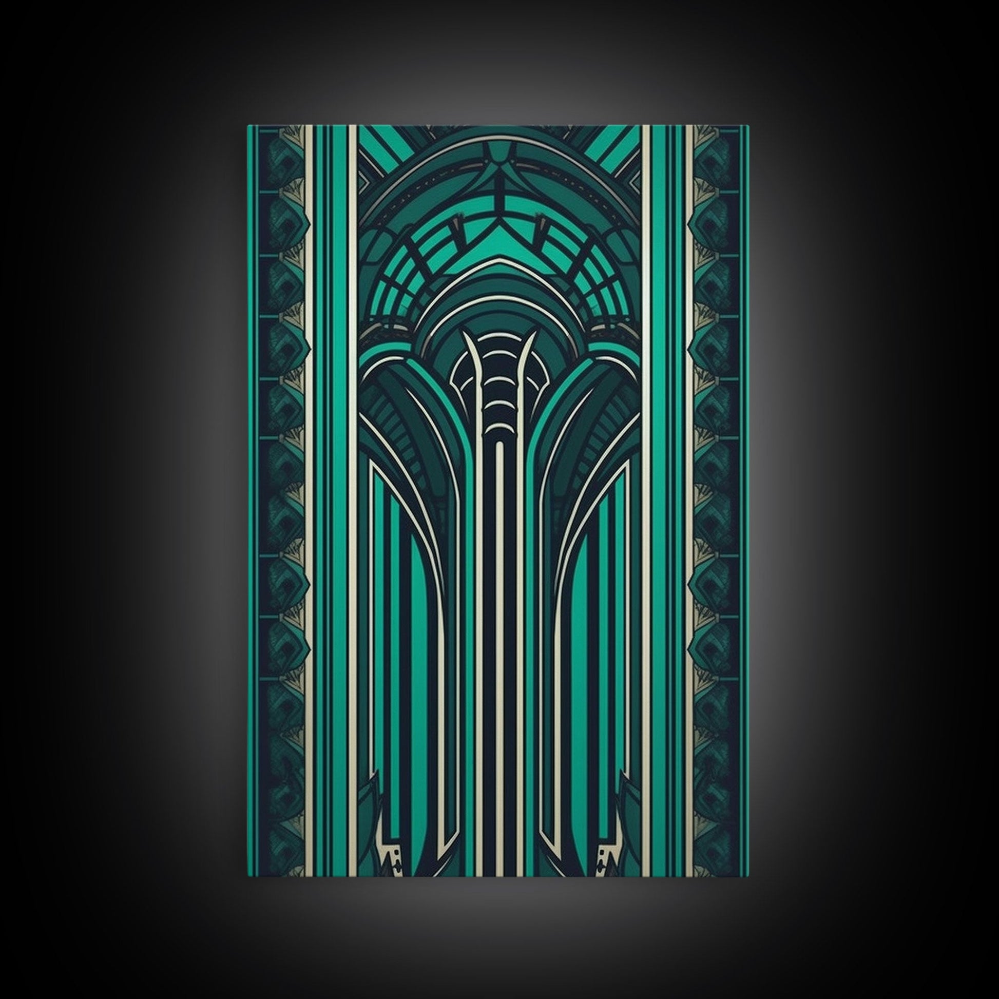 Art Deco Pattern Wall art, Framed Canvas Print, Art Deco, Green colors art, Patterns art, Office wall art, Wonderful art, Stained glass art