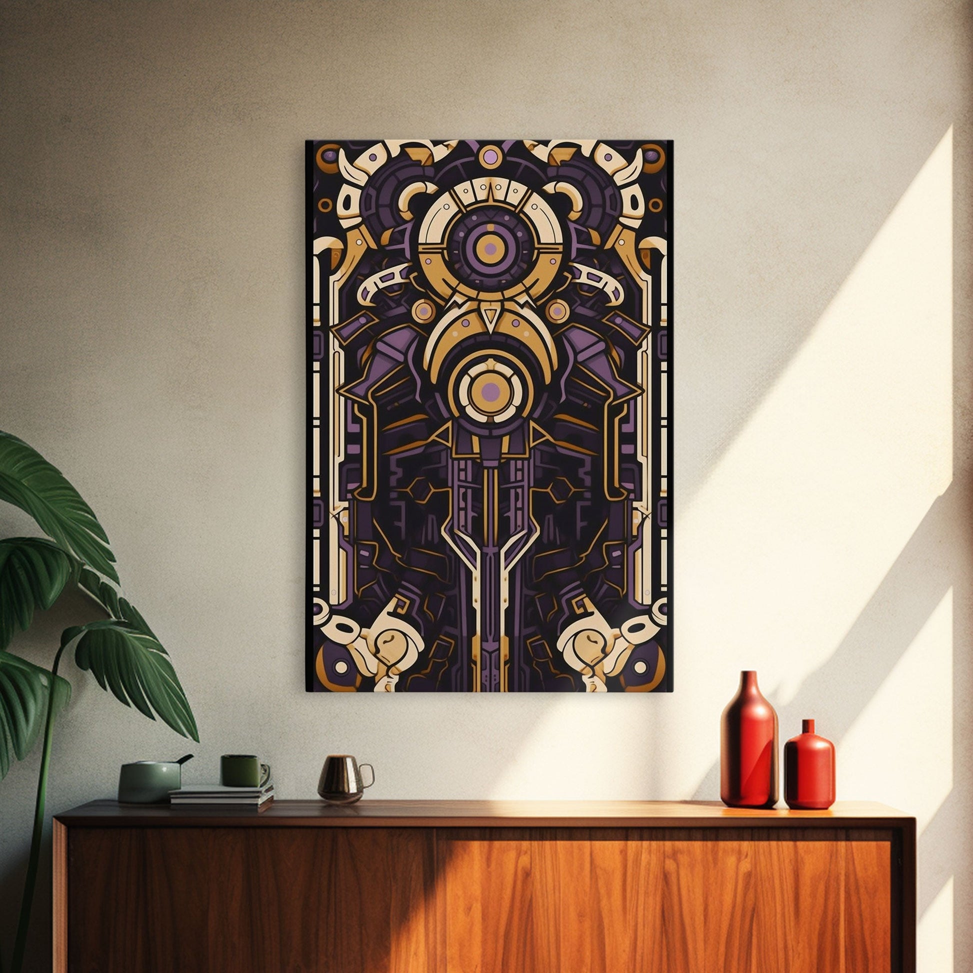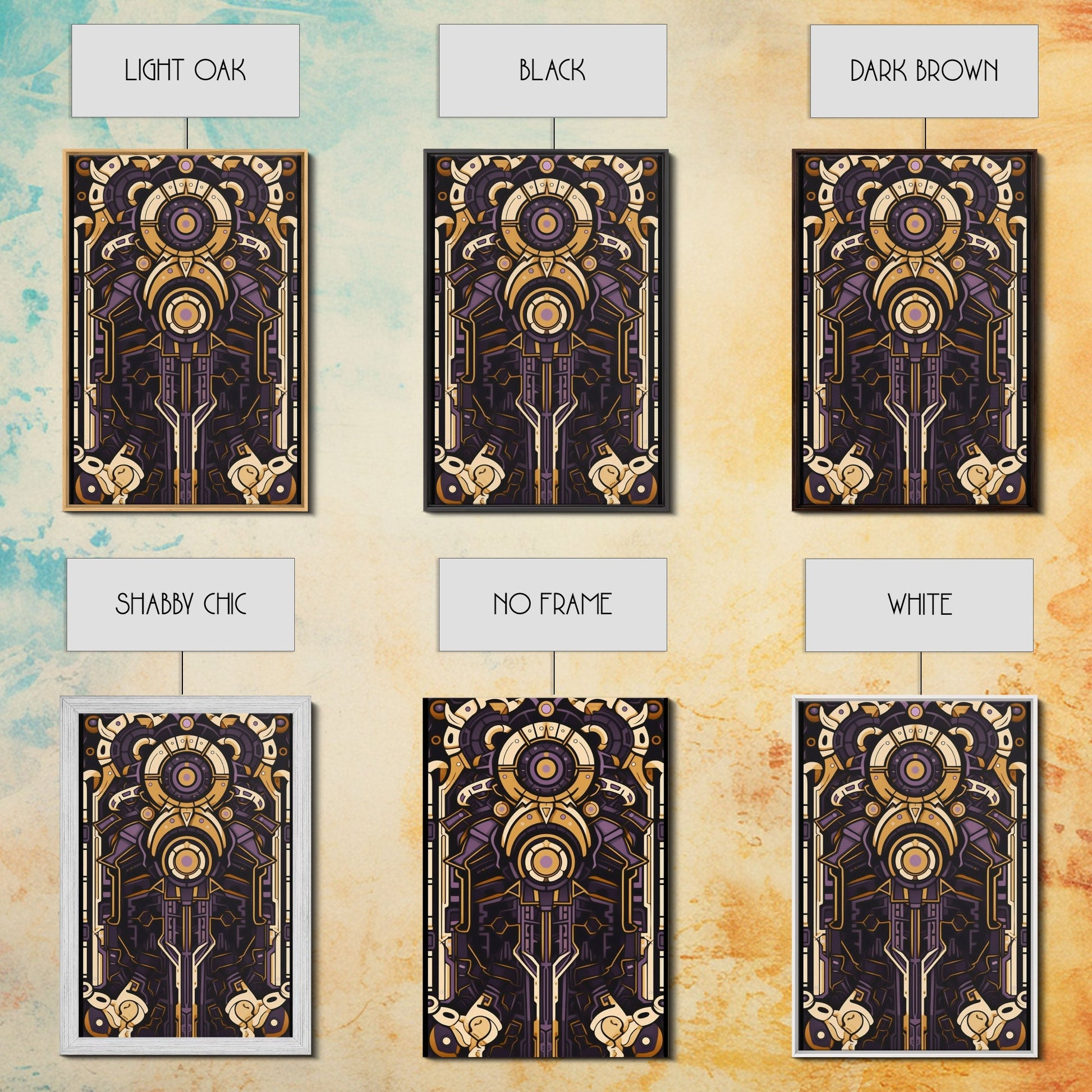 Art Deco Pattern Wall art, Framed Canvas Print, Art Deco, Patterns art, Yellow & purple art, Ornament art, Colorful painting, Light colors