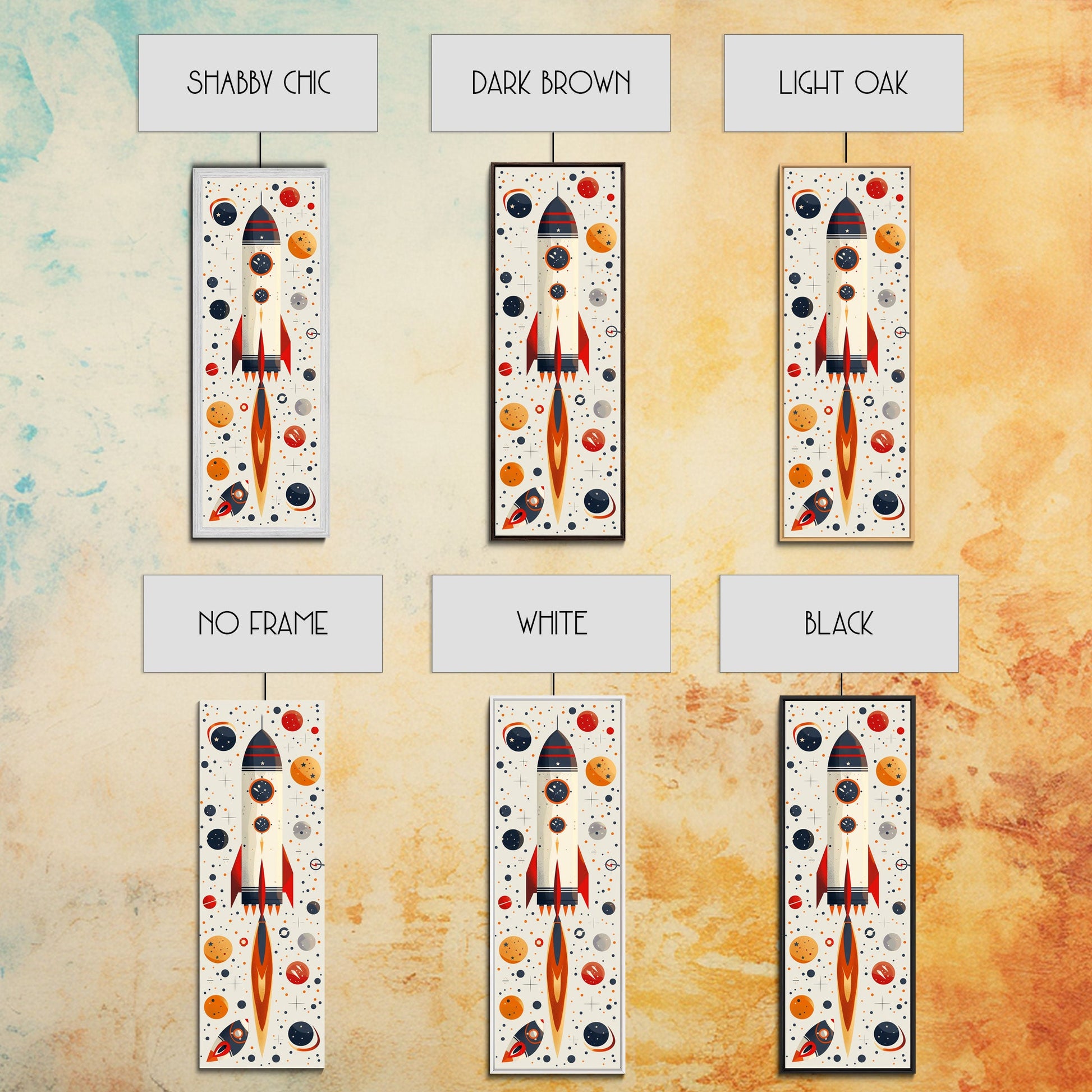 Art Deco Rocket Ship Atomic Age Wall Art, Retro MCM Inspired Framed Canvas Print, Mid-century Modern Nursery Decor