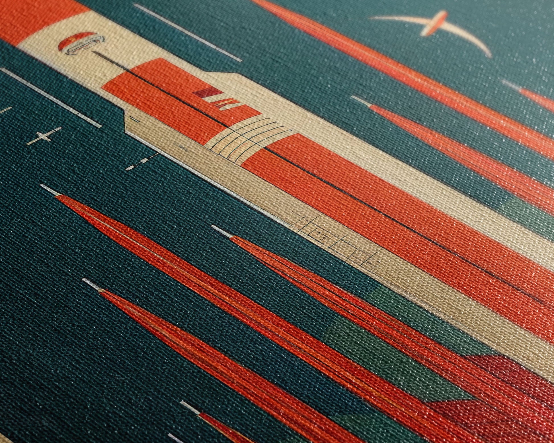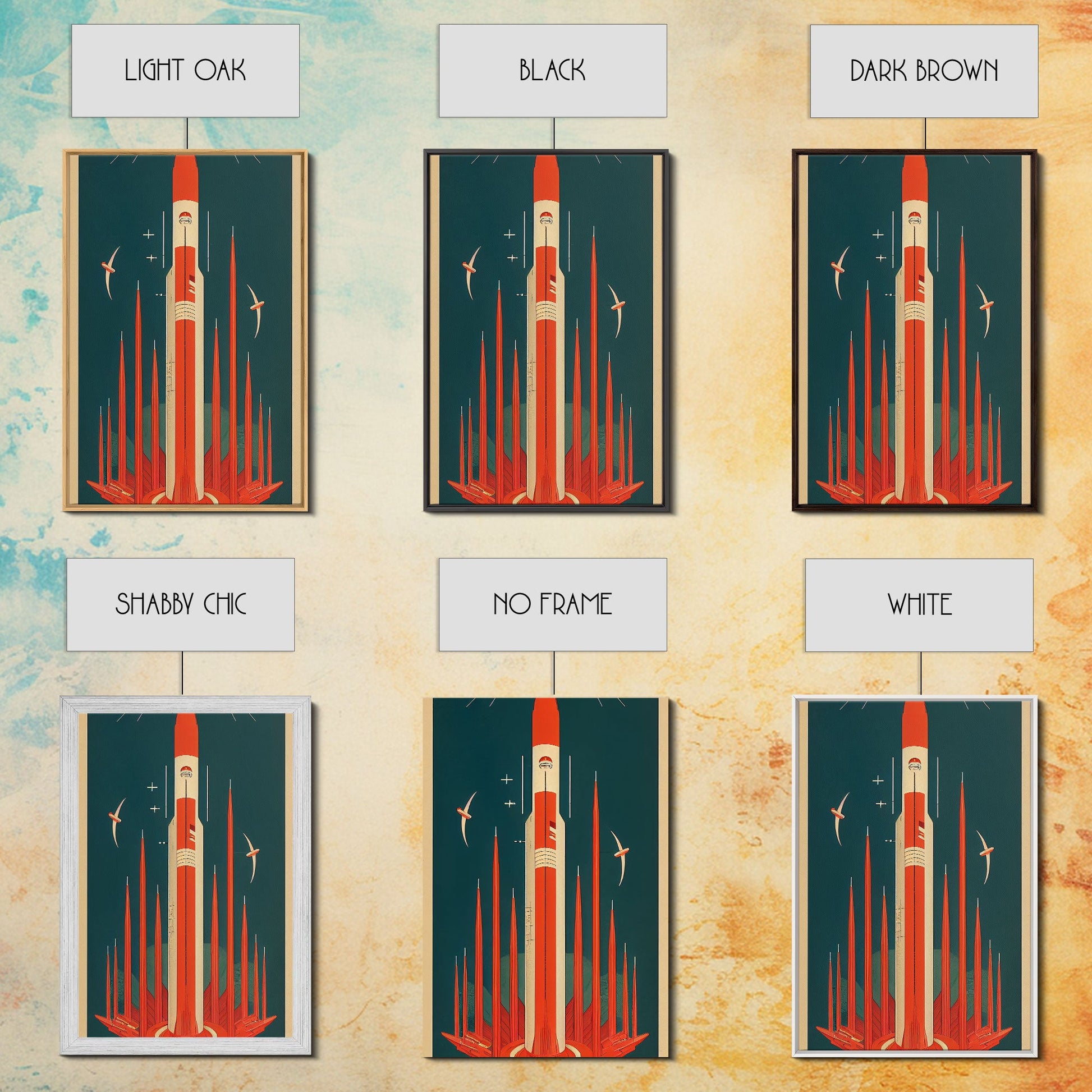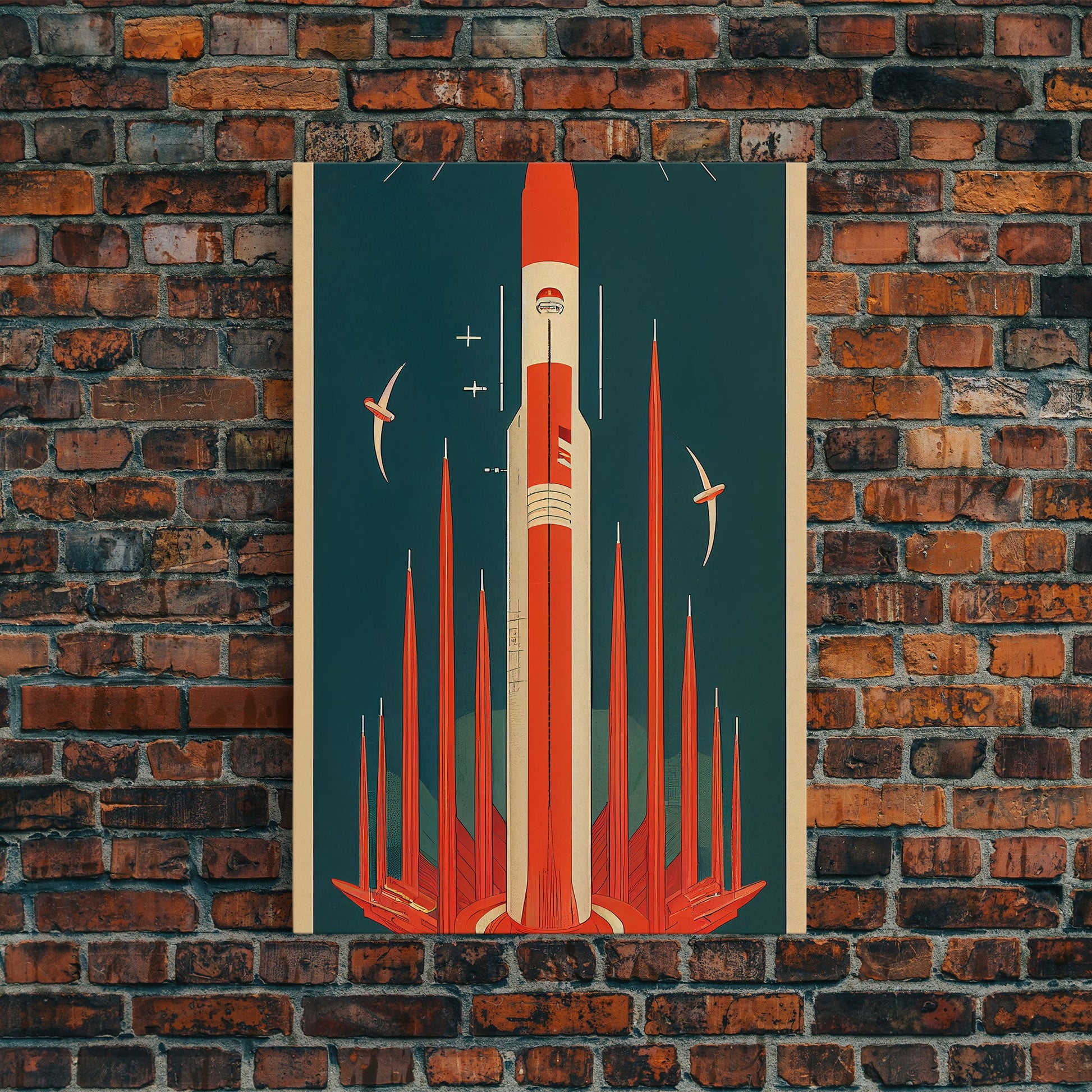 Art Deco Space Travel Poster Art, Framed Canvas Print, Ready To Hang Framed Wall Art, Living Room Wall Hanging