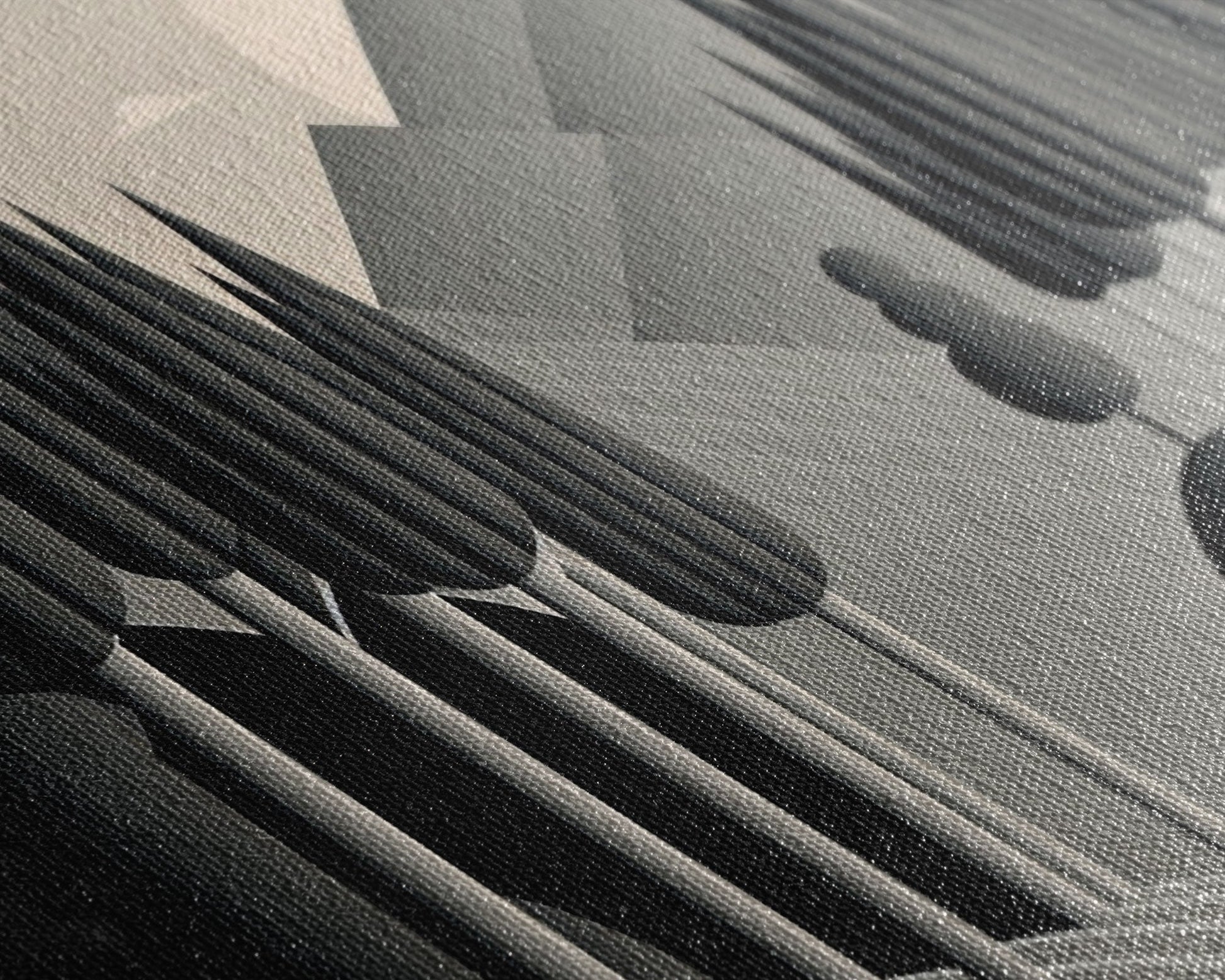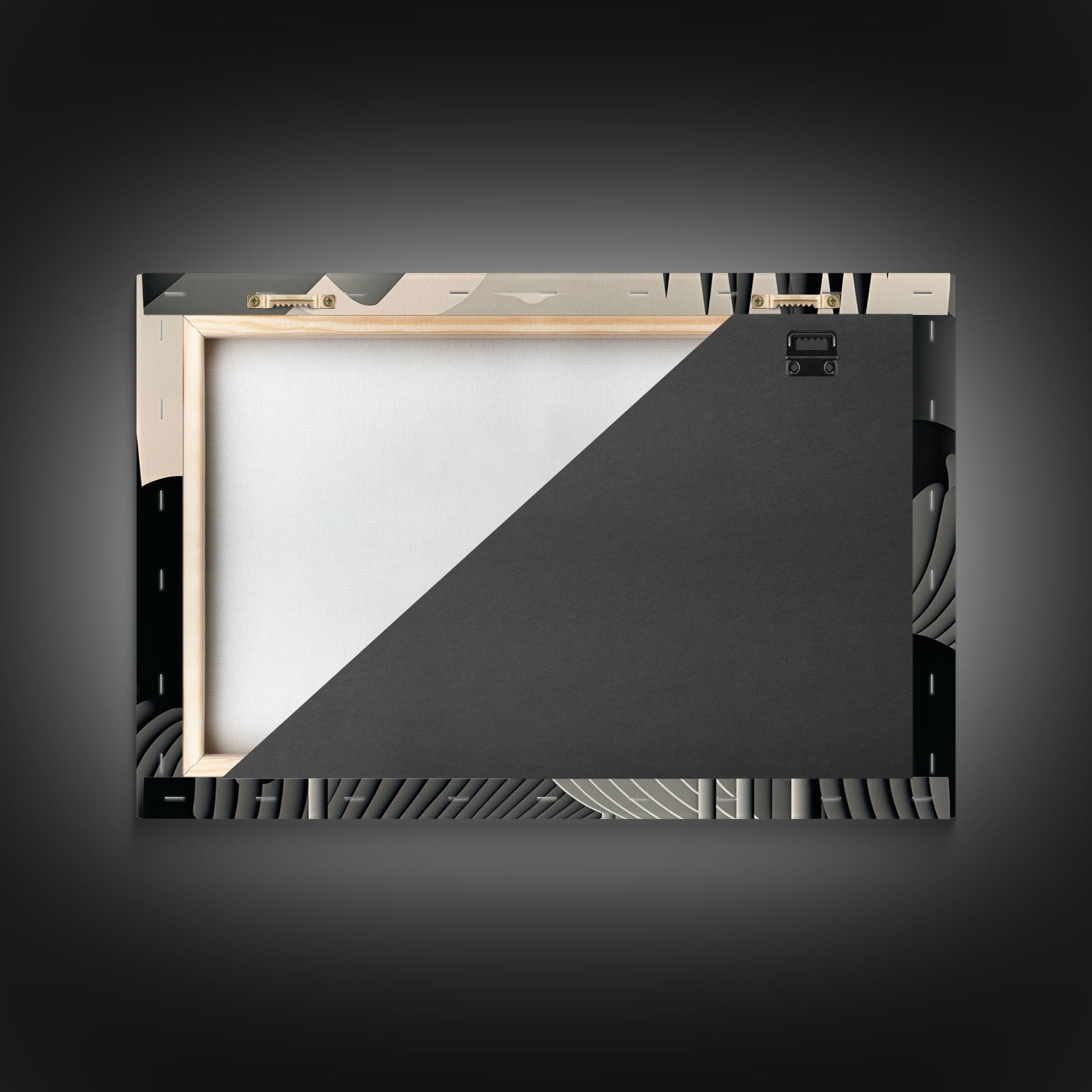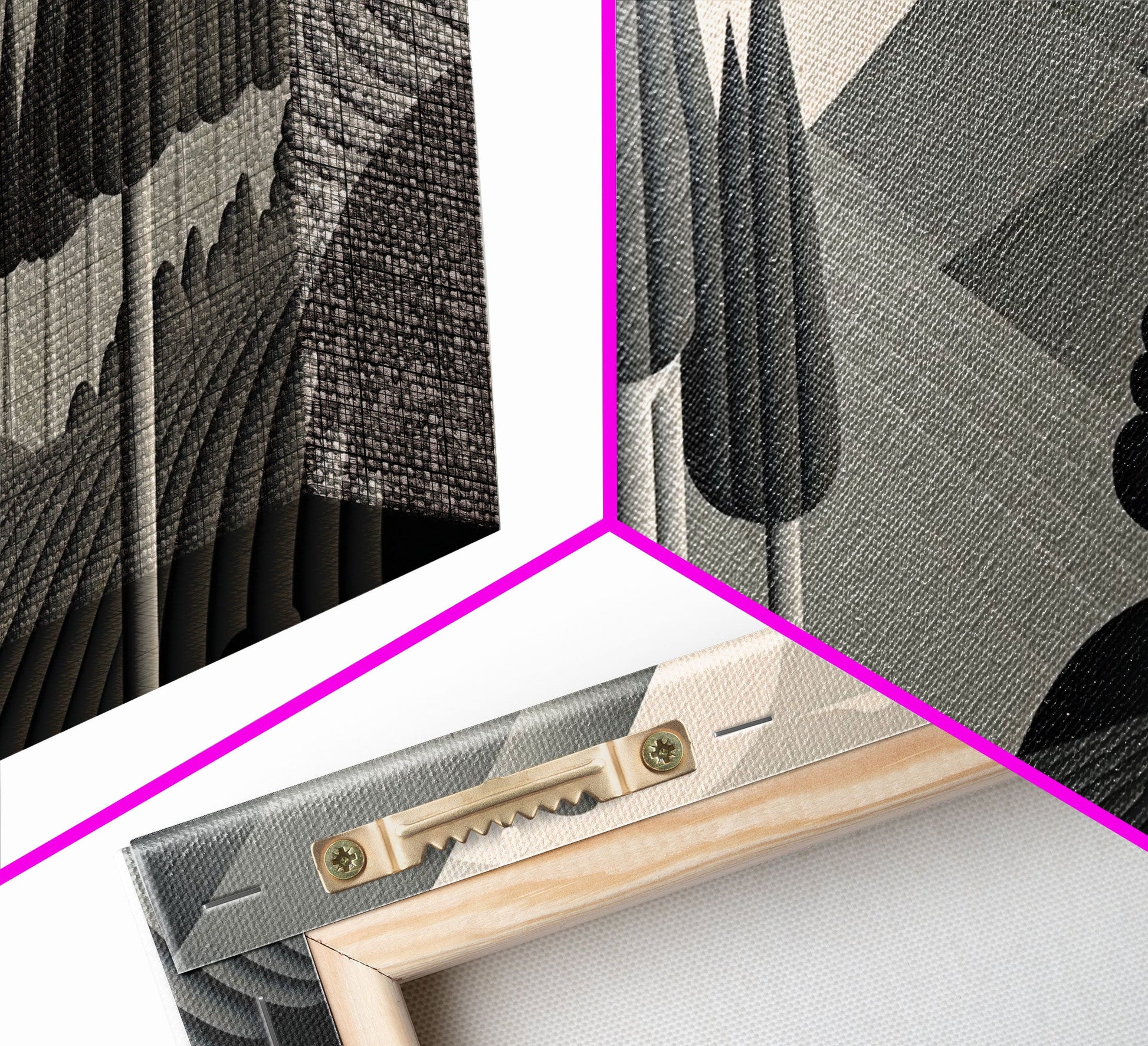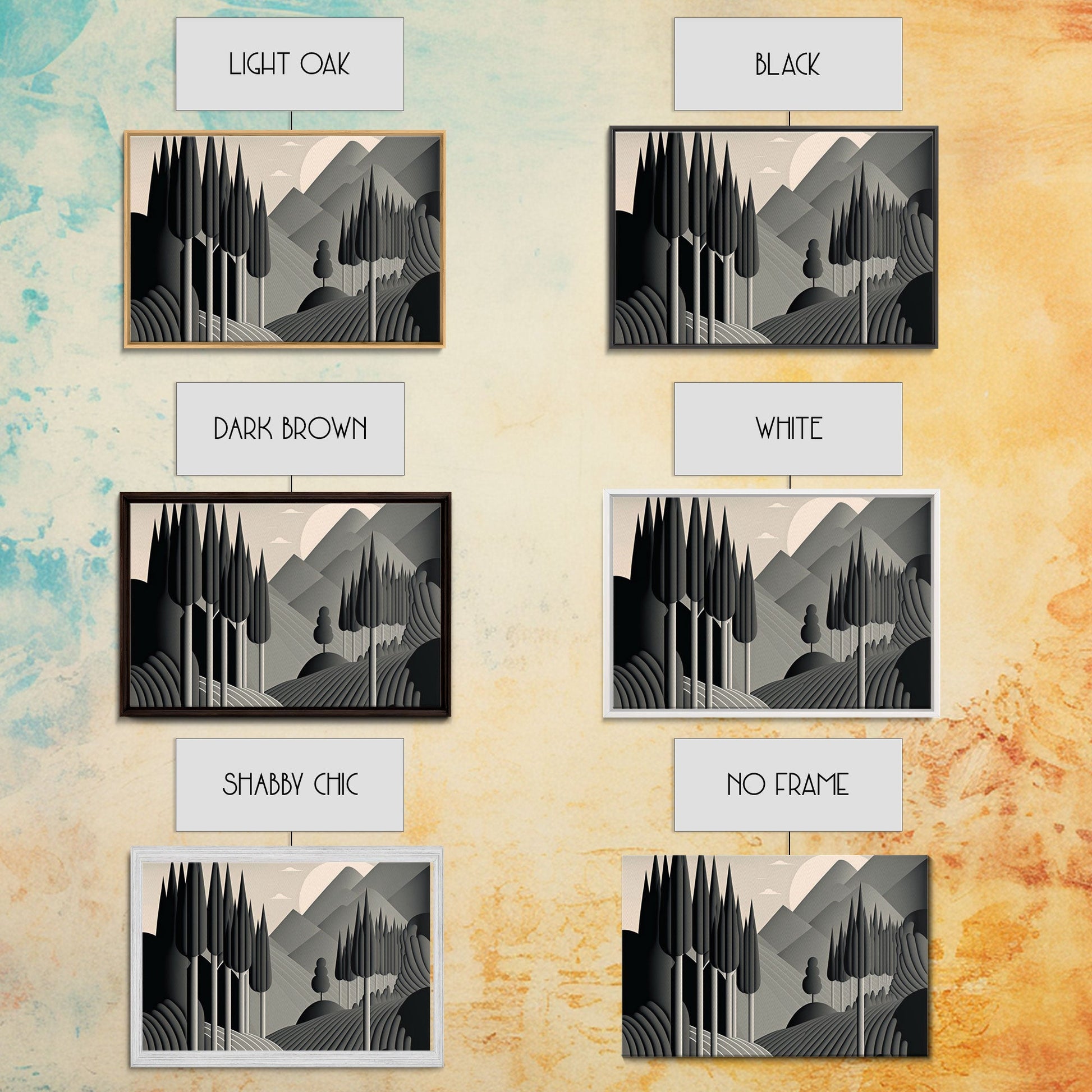 Art Deco Style Greyscale Landscape, Monochromatic Drab and Dreary art, framed canvas print, large format art