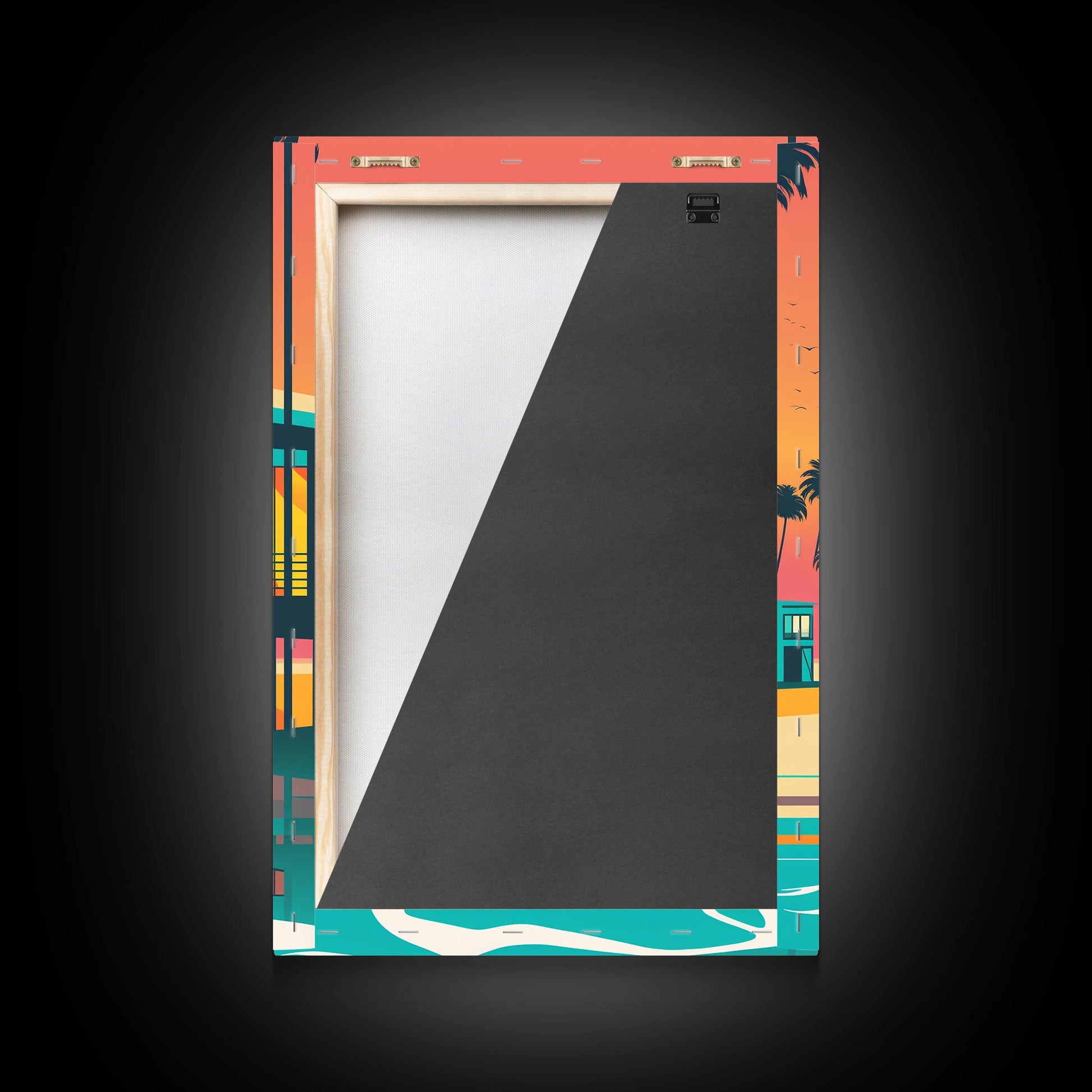 Art Deco Sunset Beach Canvas Print, Minimalist Retro Palmtree Vibe, Vaporwave Art, 80s Retro Vibes, Miami Inspired Art