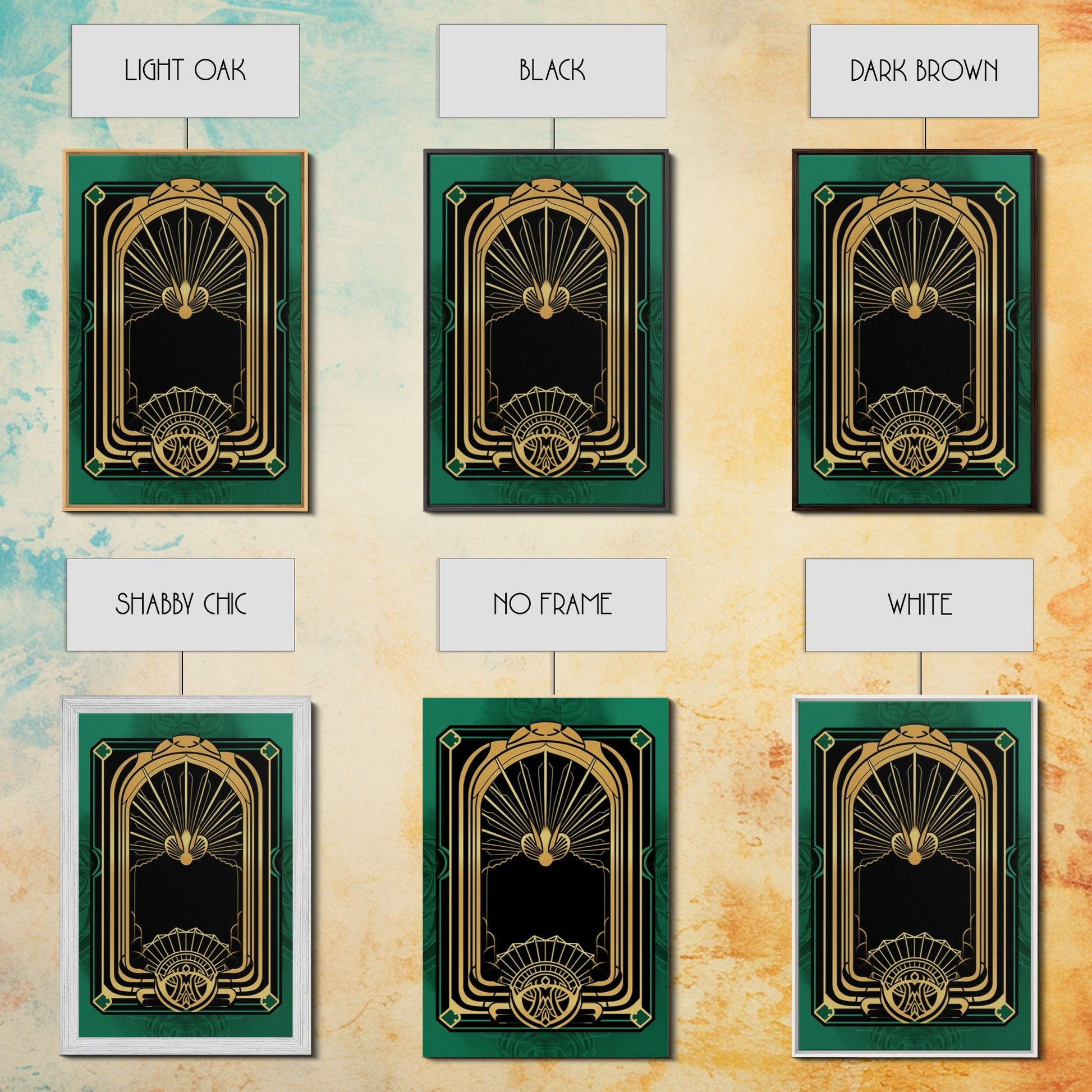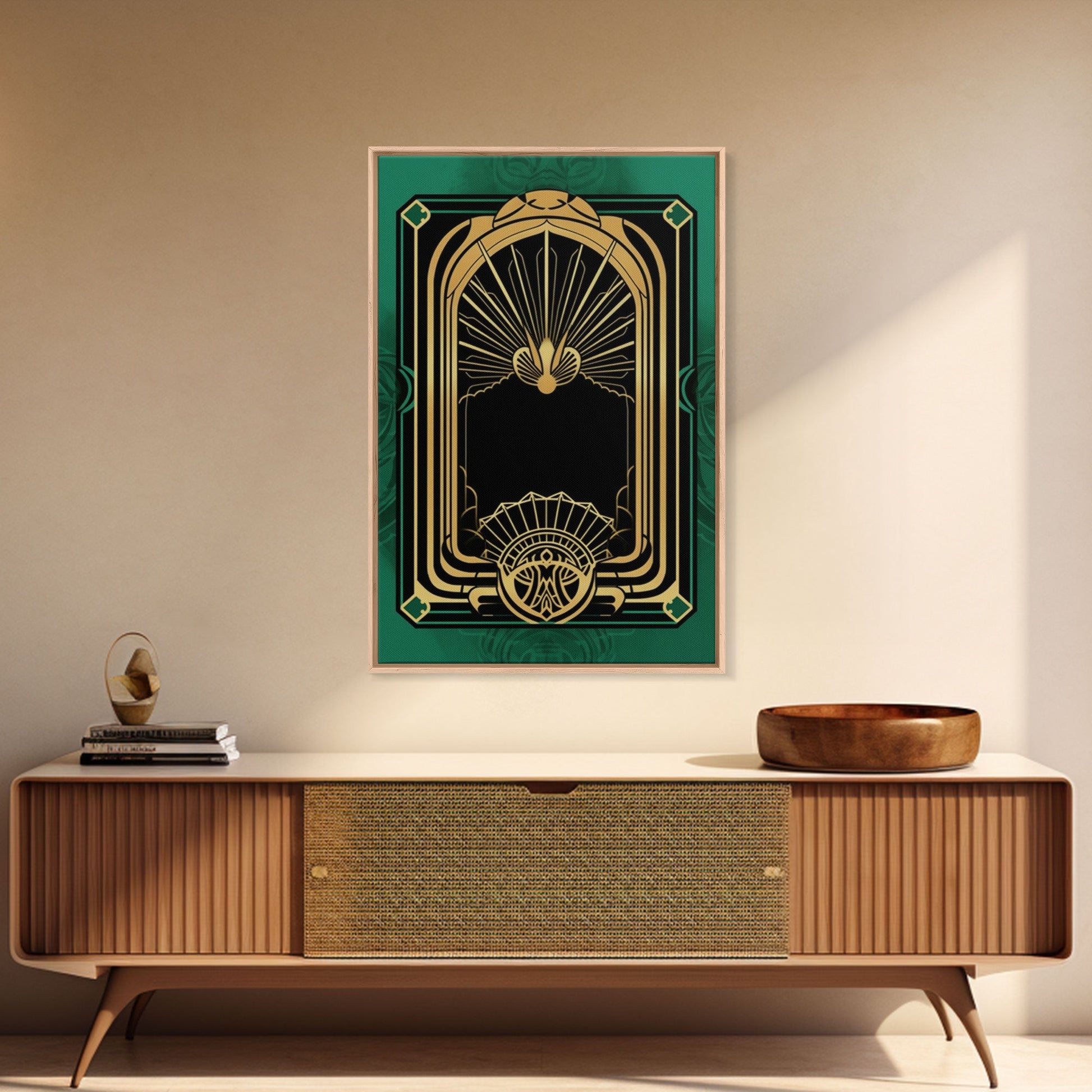 Art Deco Wall art, Framed Canvas Print, Art Deco, Gold & green art, Living room art, Abstract art, Beautiful art, Colorful painting