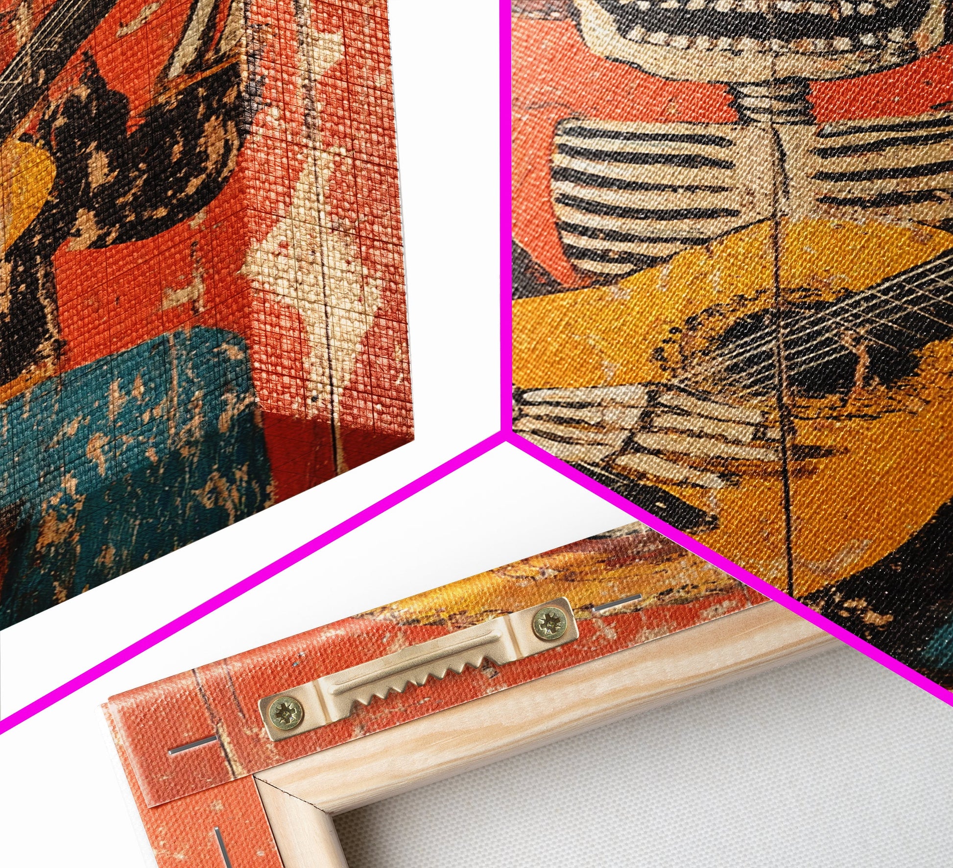 Arte Mexicano - Framed Canvas Print - Chicano Art - Skeleton Vaquero playing a guitarra, Mexican Inspired Wall Art, Southwestern Art