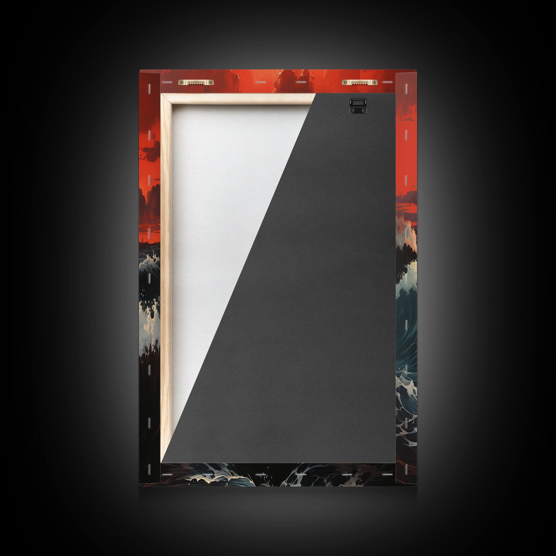 Asian Art, Japanese Wall Art, Ocean Waves, Sunset Art, Canvas Print, Wall Art, 3 Piece Wall Art, Trendy Wall Art, Modern Art Prints