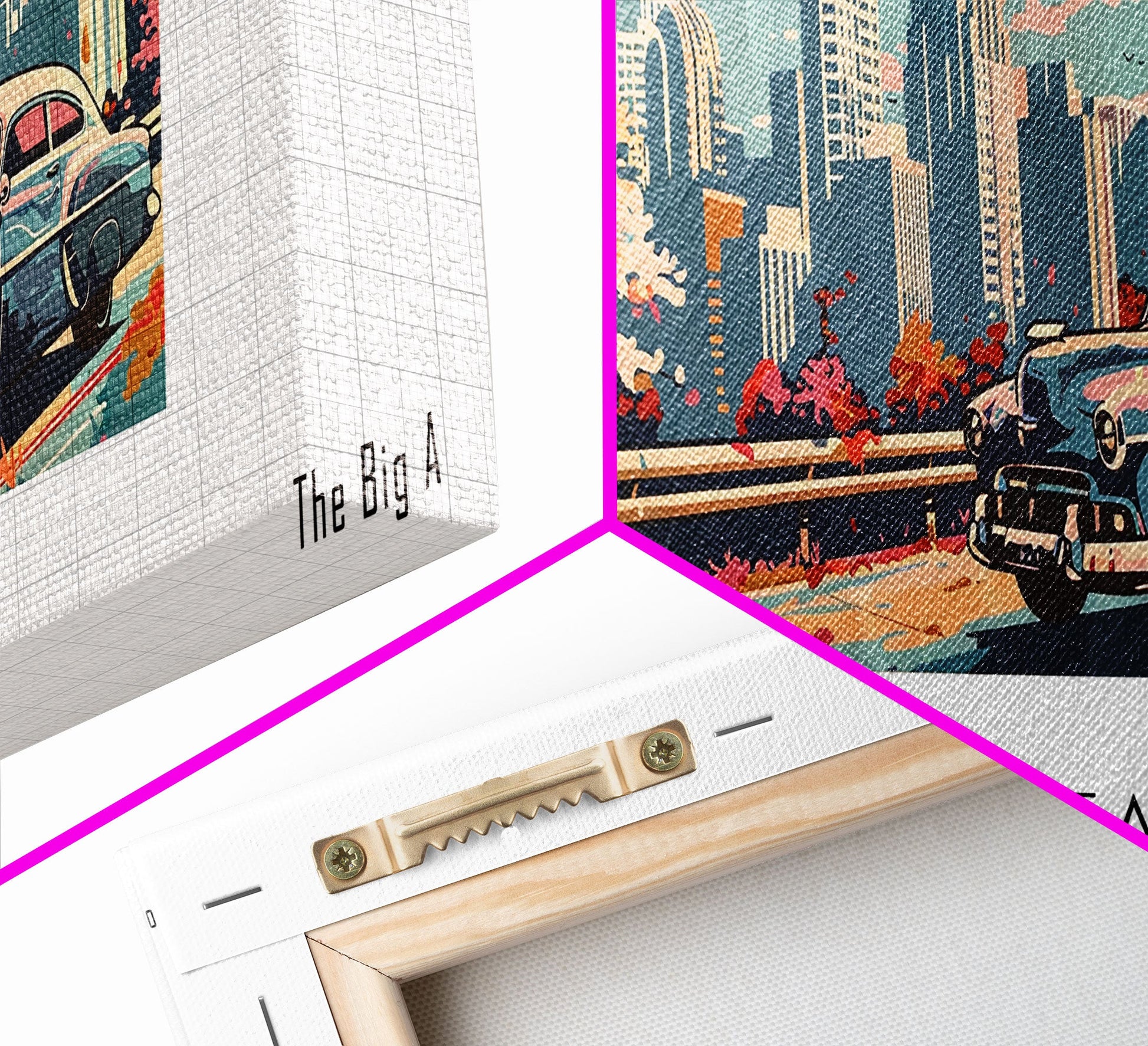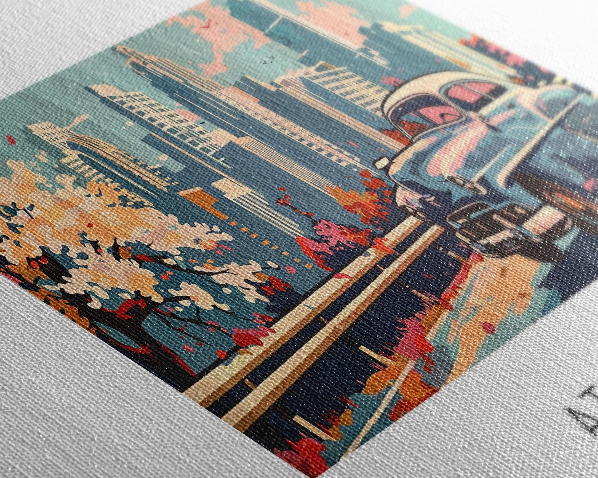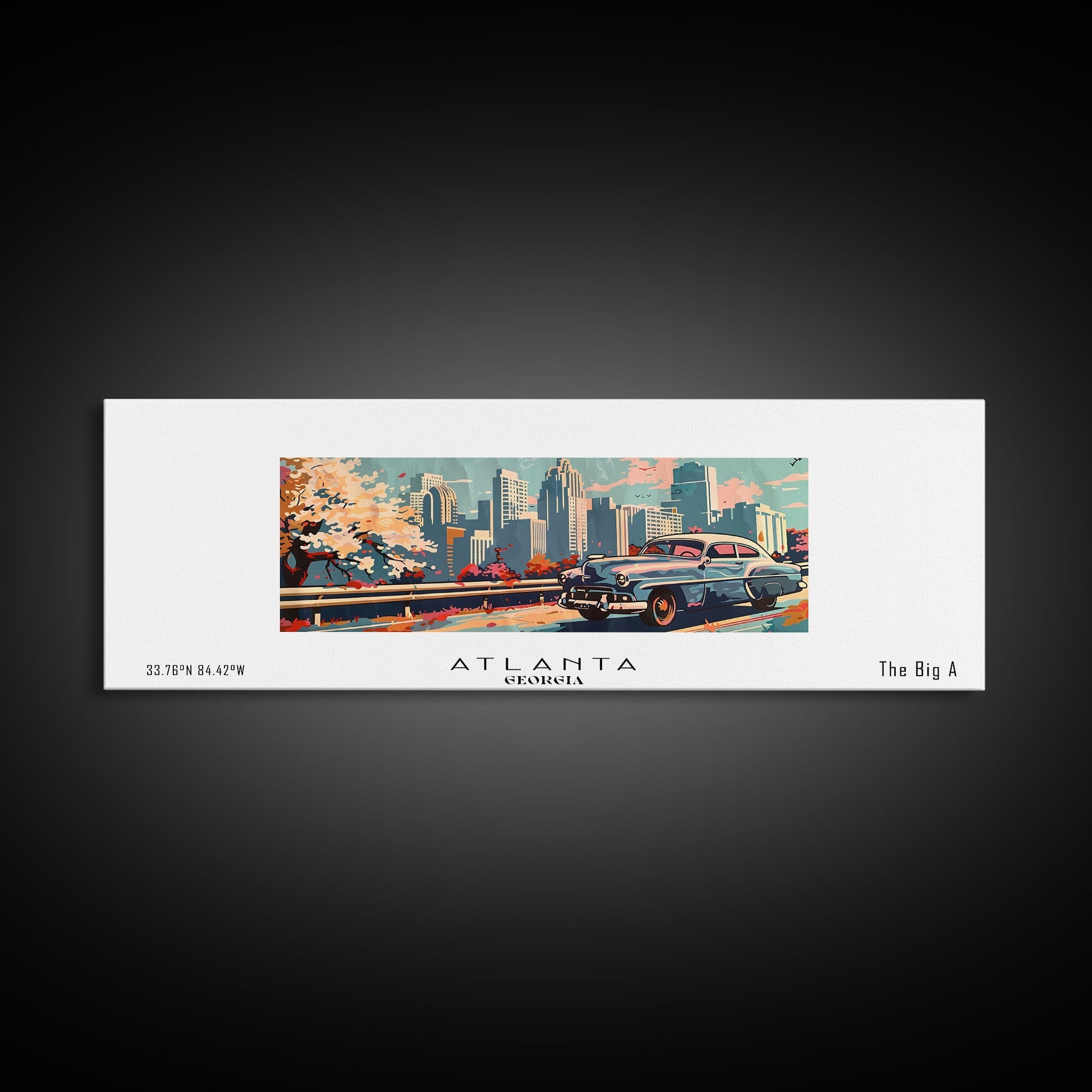 Atlanta Georgia Panoramic Painting, Mid Century Modern Framed Canvas Print, Retro Pop Art Travel Poster, Wall Decor, Gift Idea, Home Decor