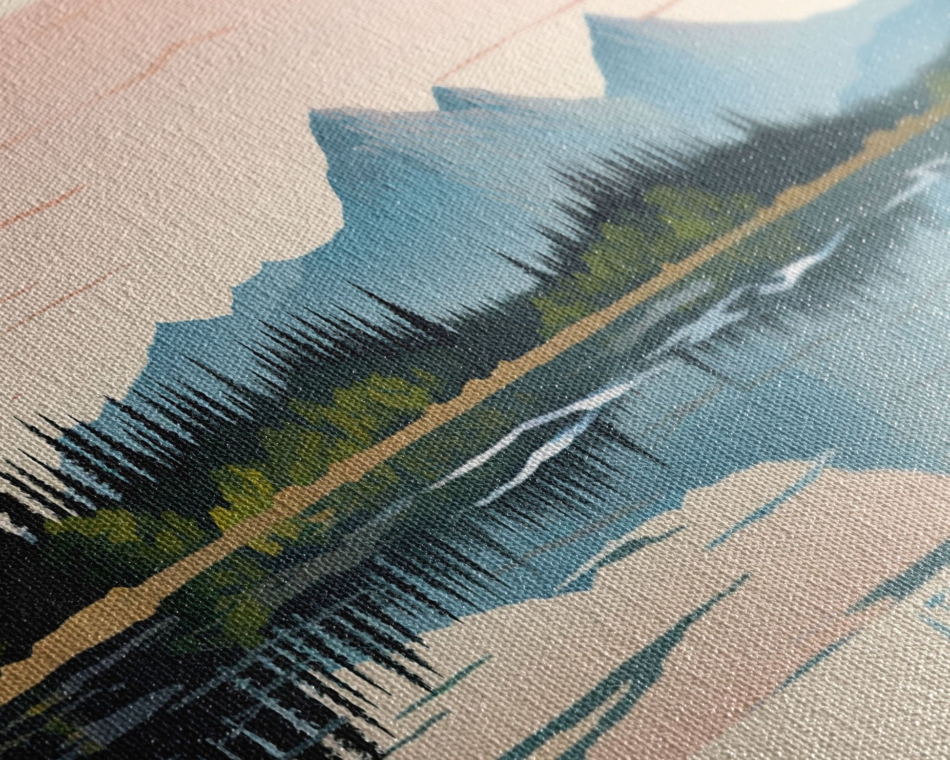 Atlin Lake British Columbia Framed Canvas Print, Panoramic Travel Poster, Midcentury Modern Wall Art, Pop Art, Bedroom Decor