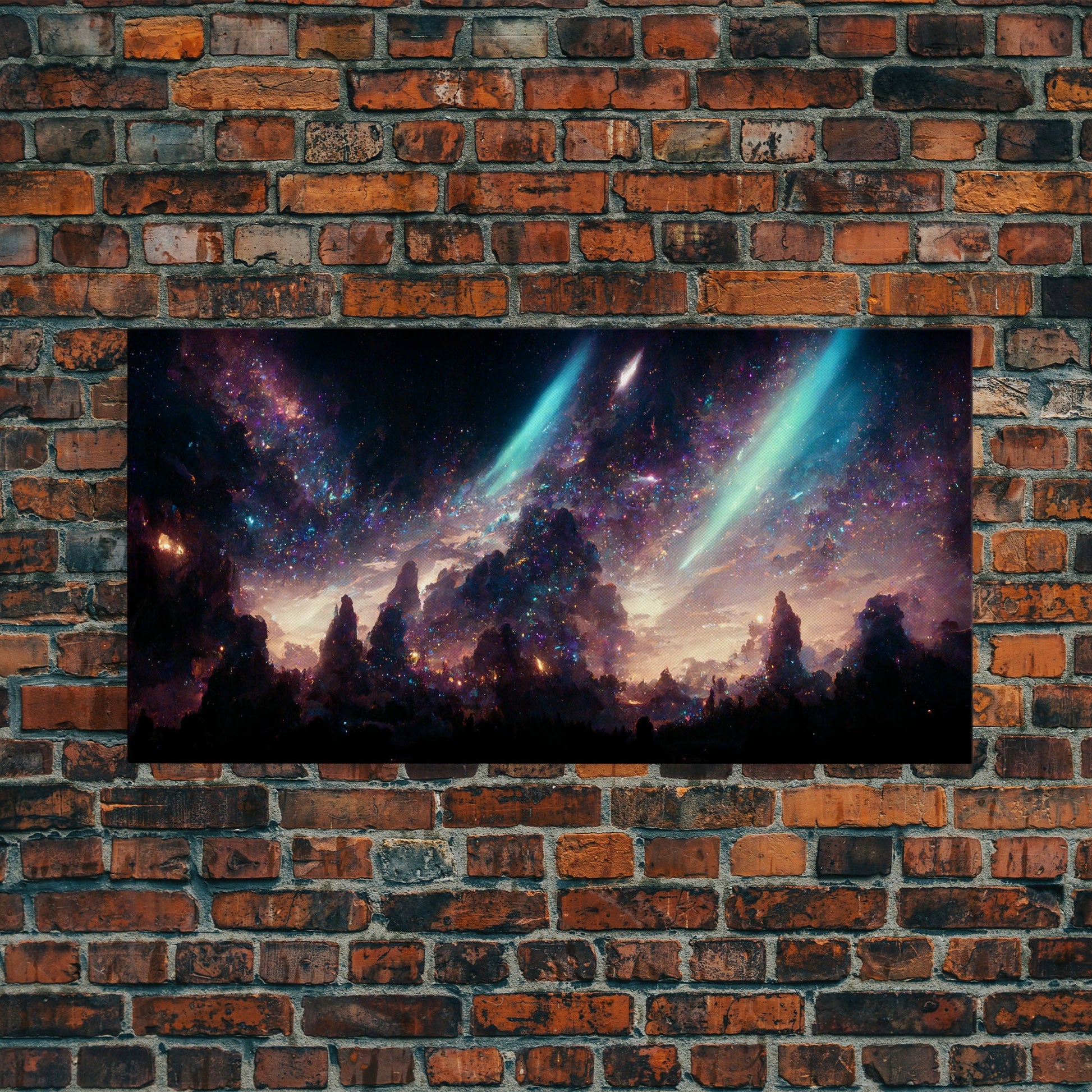 Aurora Borealis Landscape Canvas Print, Mountains of Norway, cool wall art, unique wall art, mountain landscape wall art, space and stars