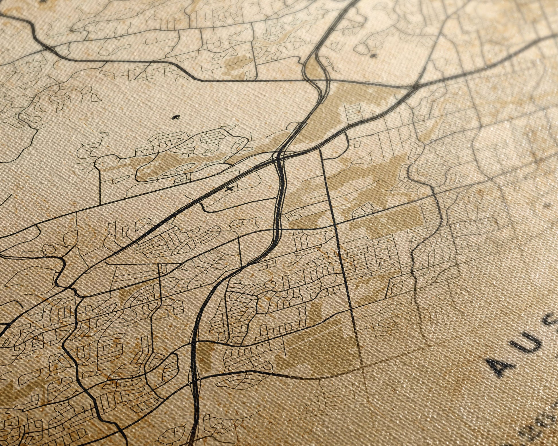 Austin Map Print Canvas or Poster, Texas Map Art, Texas Map Print, Vintage Austin Texas Map Framed Art, Retro / Distressed Office Art
