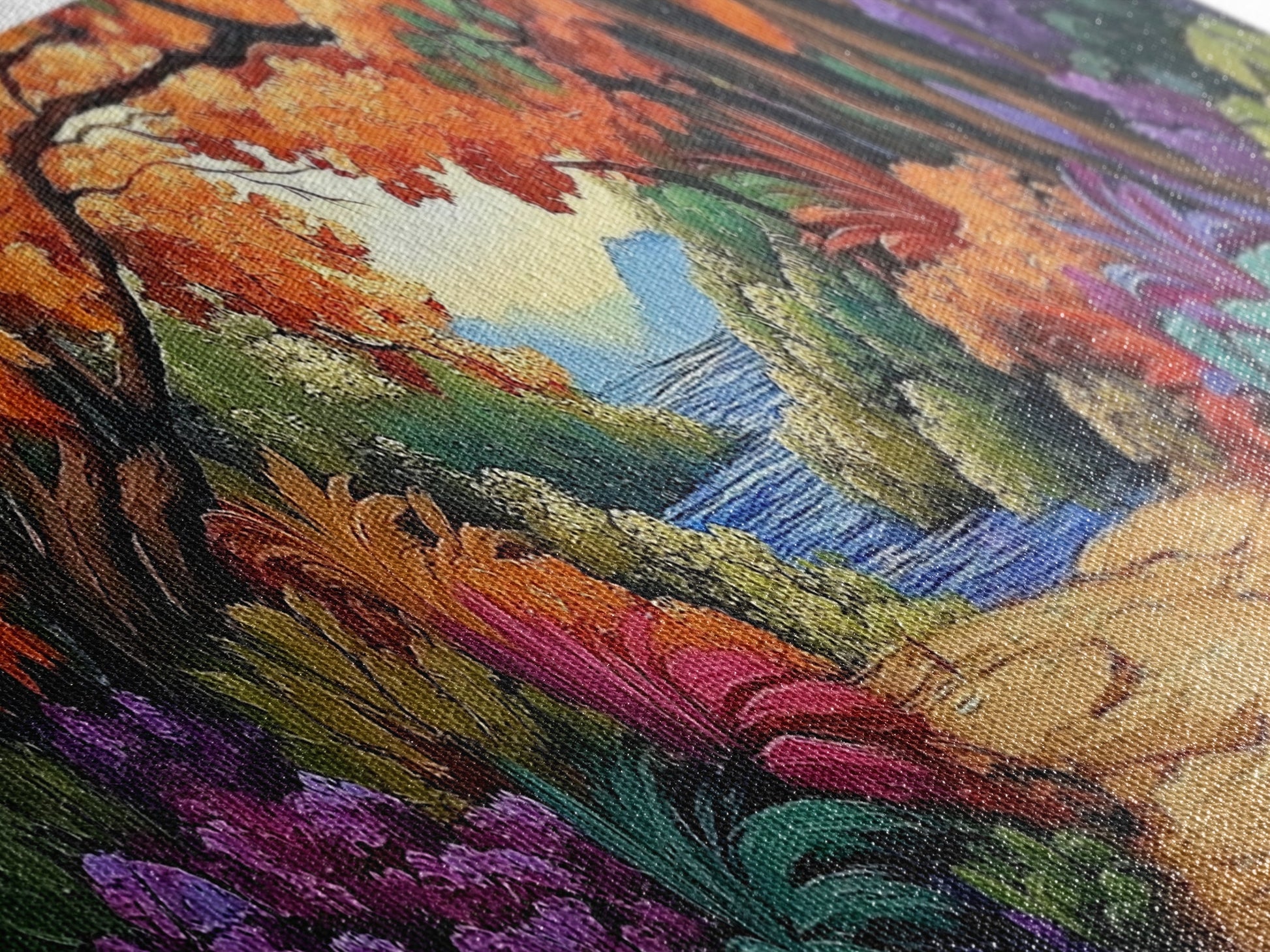 Autumn Archway, Colorful Path, Forest Lake, Vibrant Trees, Framed Canvas Print, Entryway Wall Art, Fall Nature Scene, Boho Art