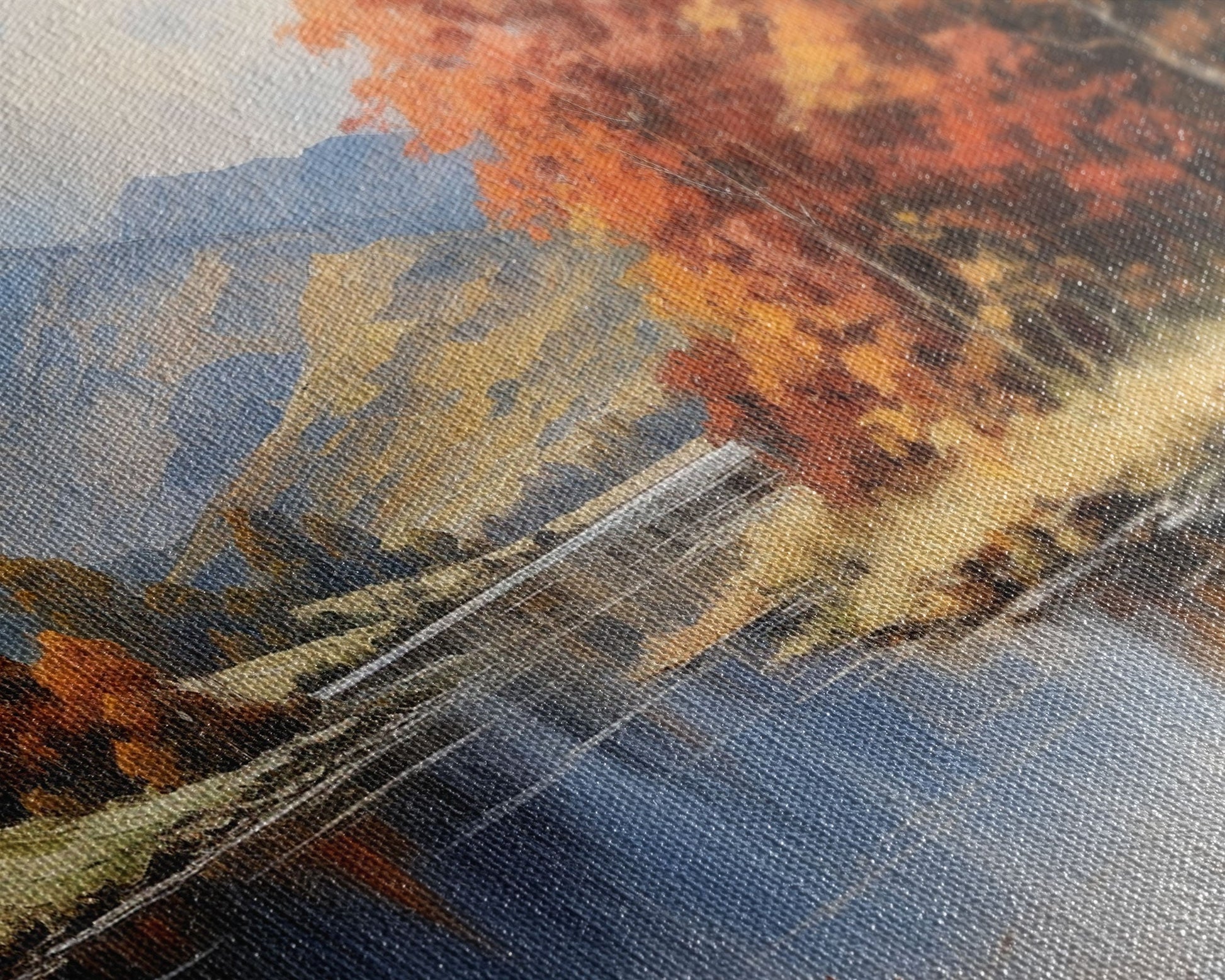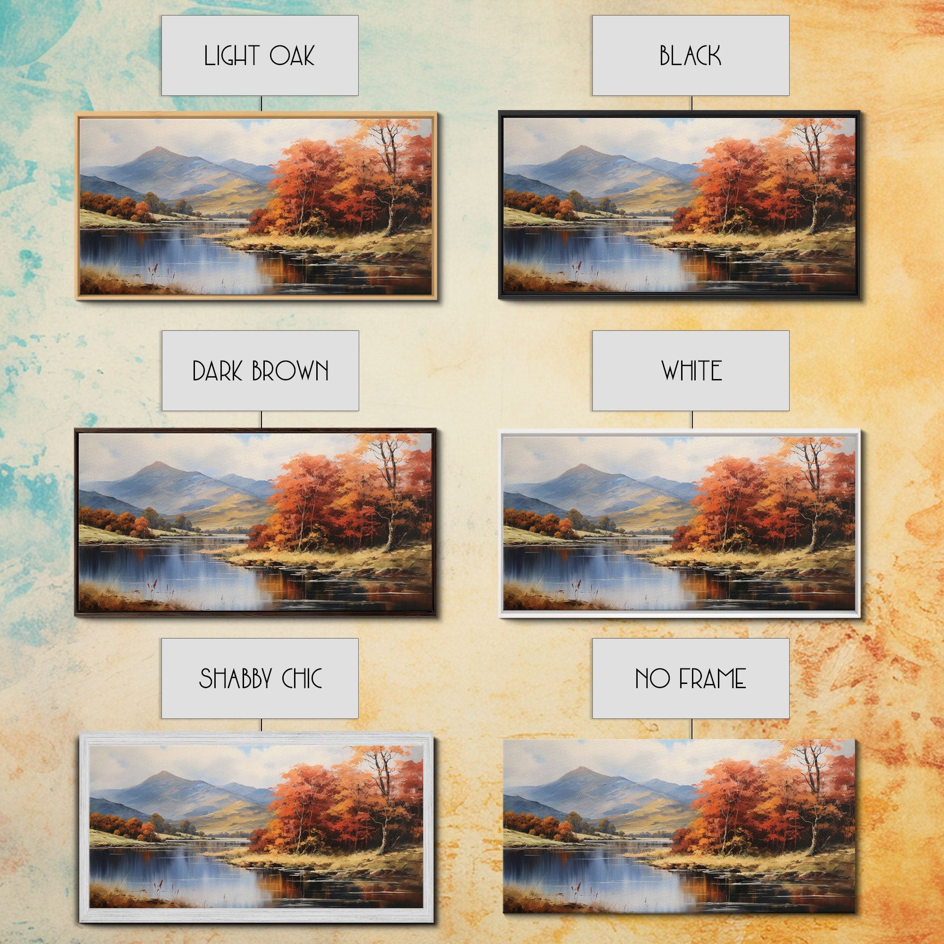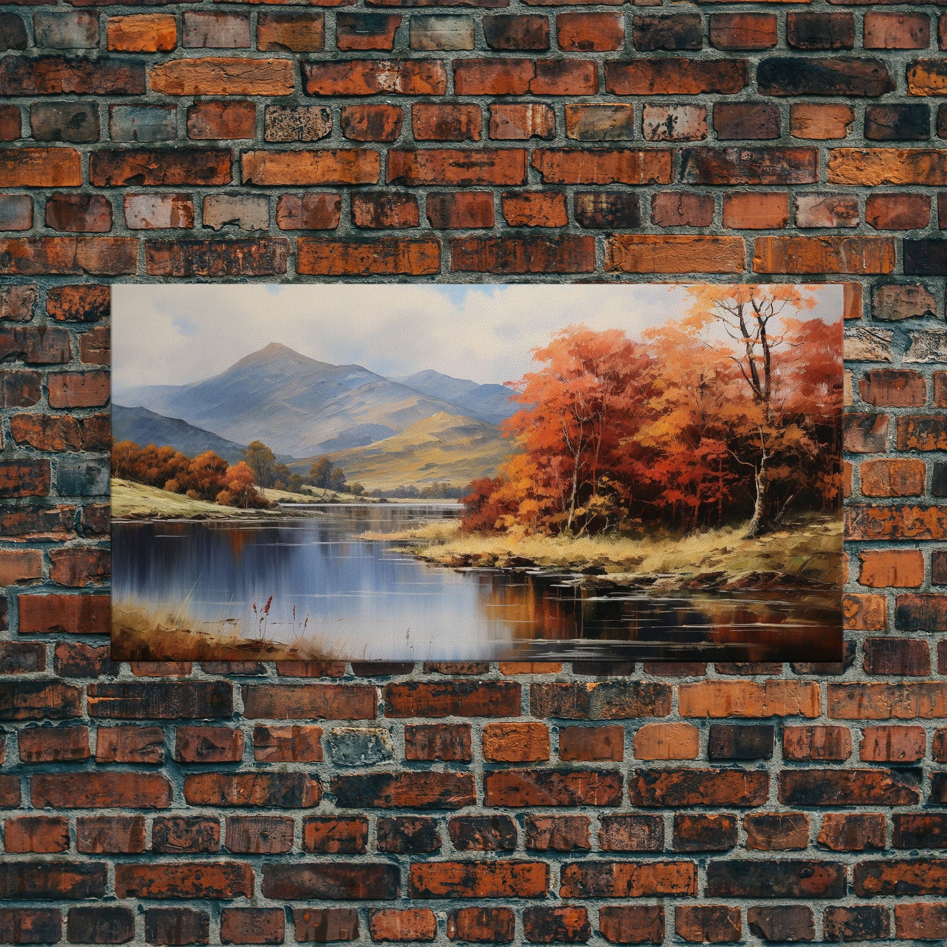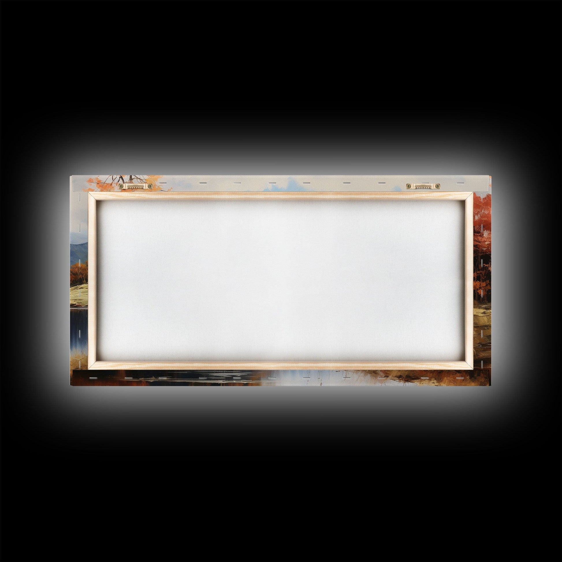Autumn By The Lake, Framed Canvas Print, Original Landscape Painting, Fall Decor, Boho Minimalist Farmhouse Decor, Rustic Art