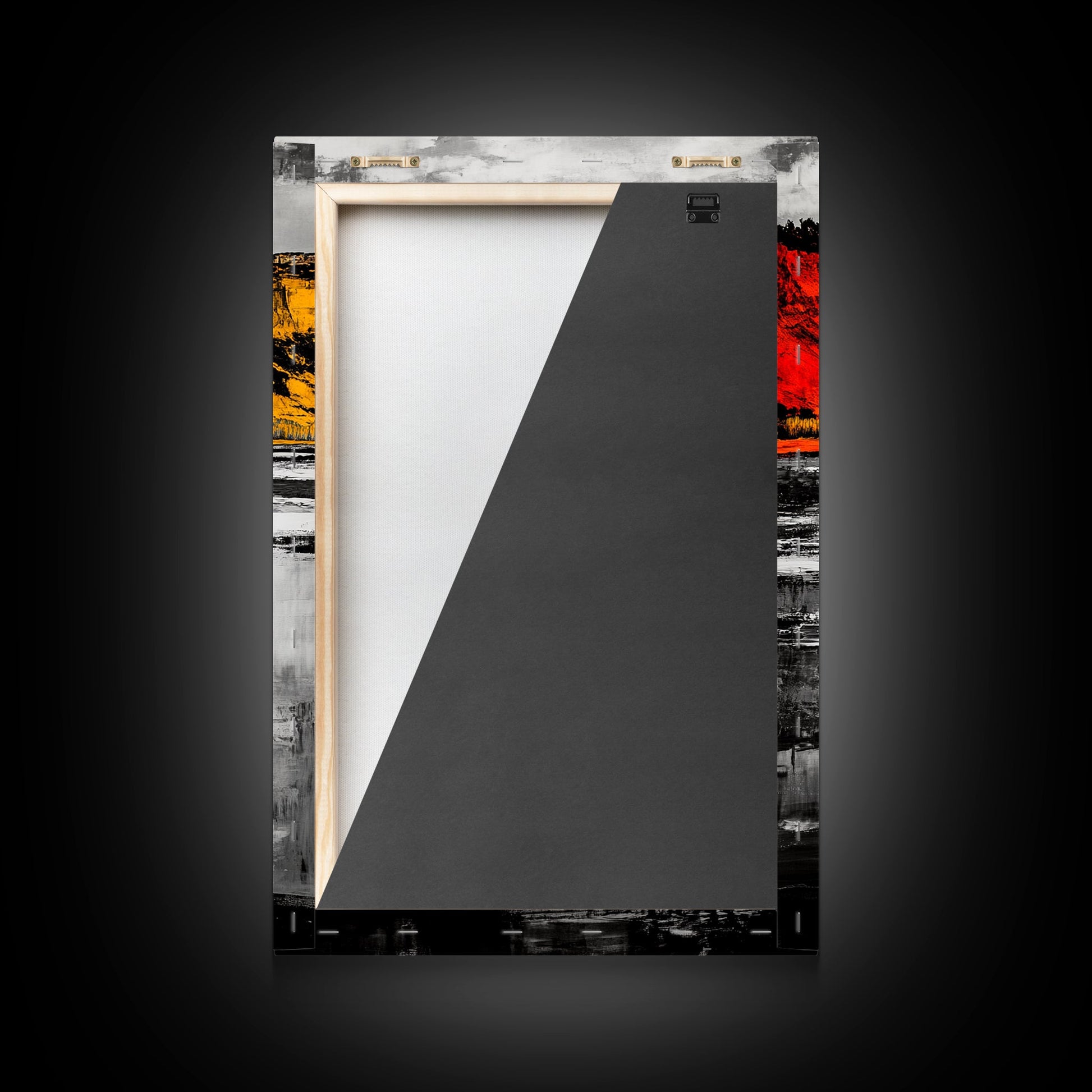 Autumn Cliffs, Seasonal Landscape, Fall Wall Art, Rustic Nature Print, Bold Orange and Yellow, Framed Canvas Print, Living Room Decor