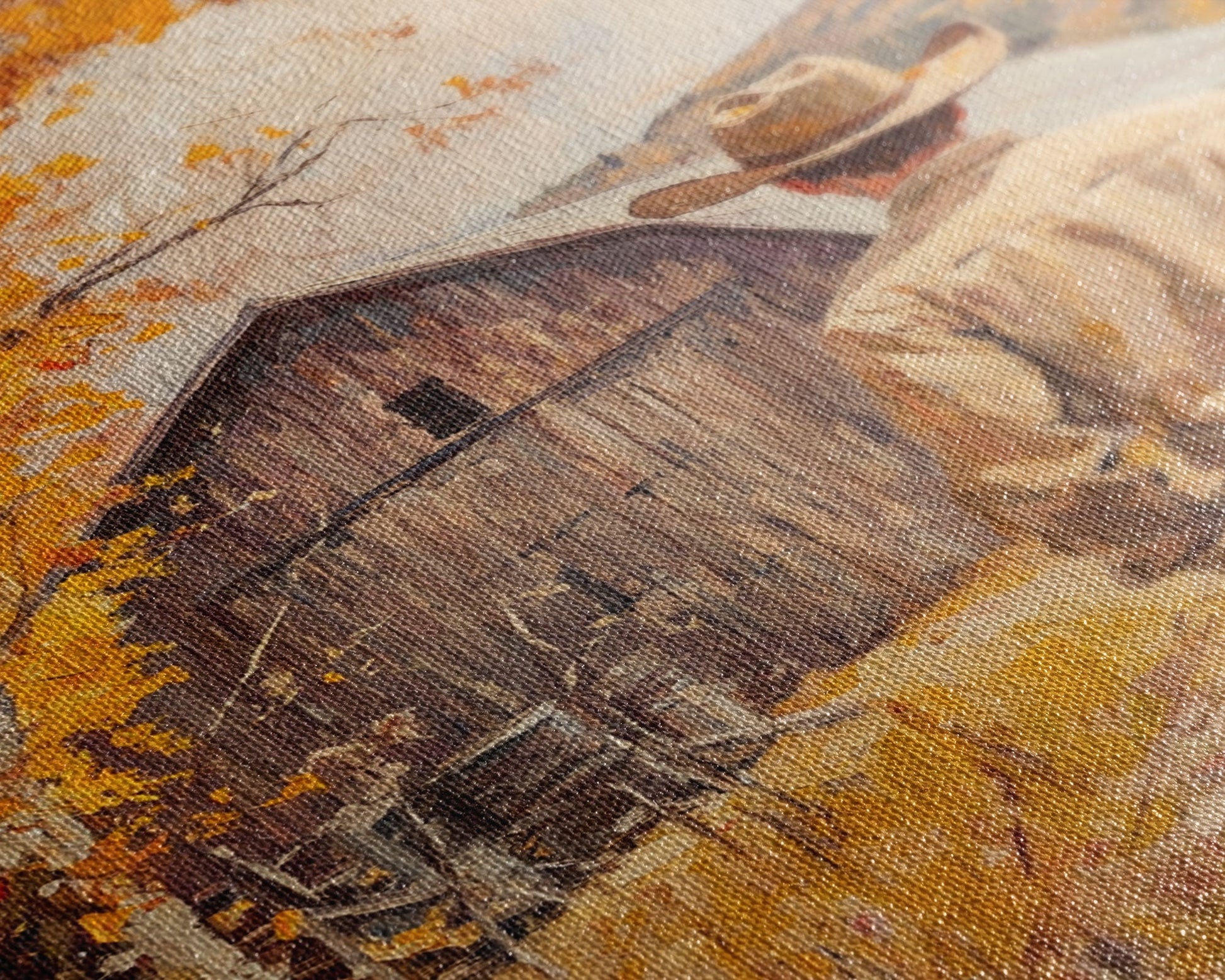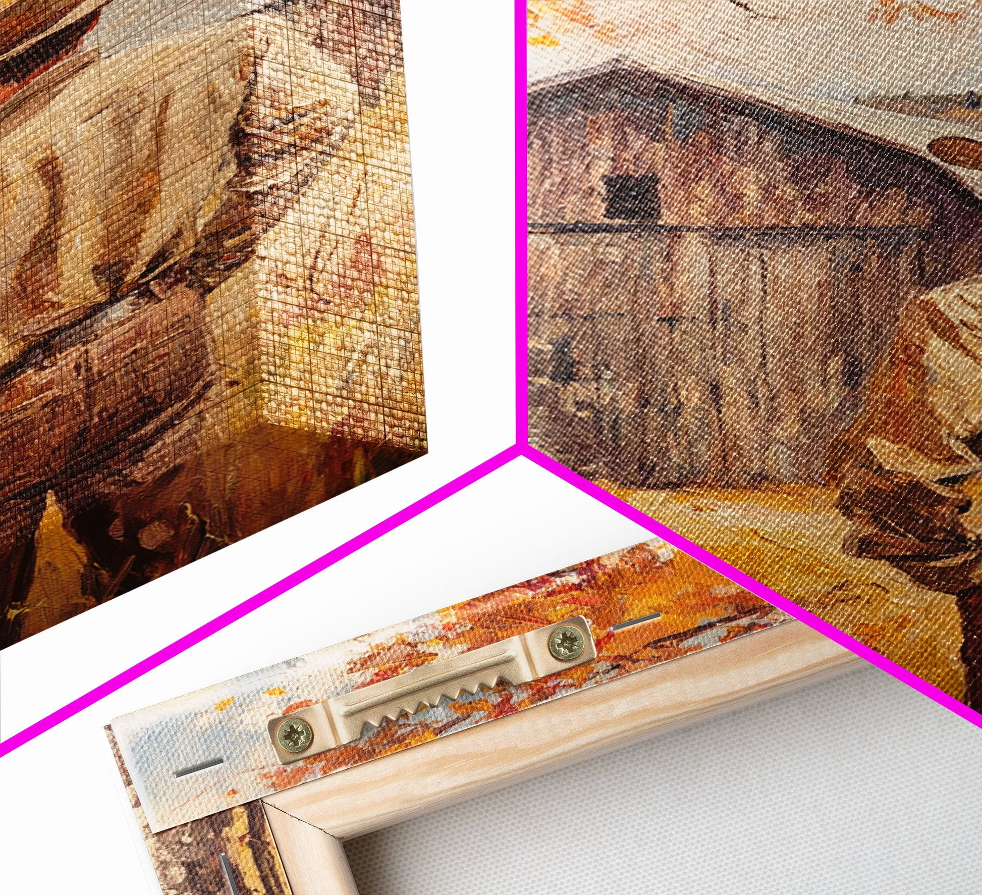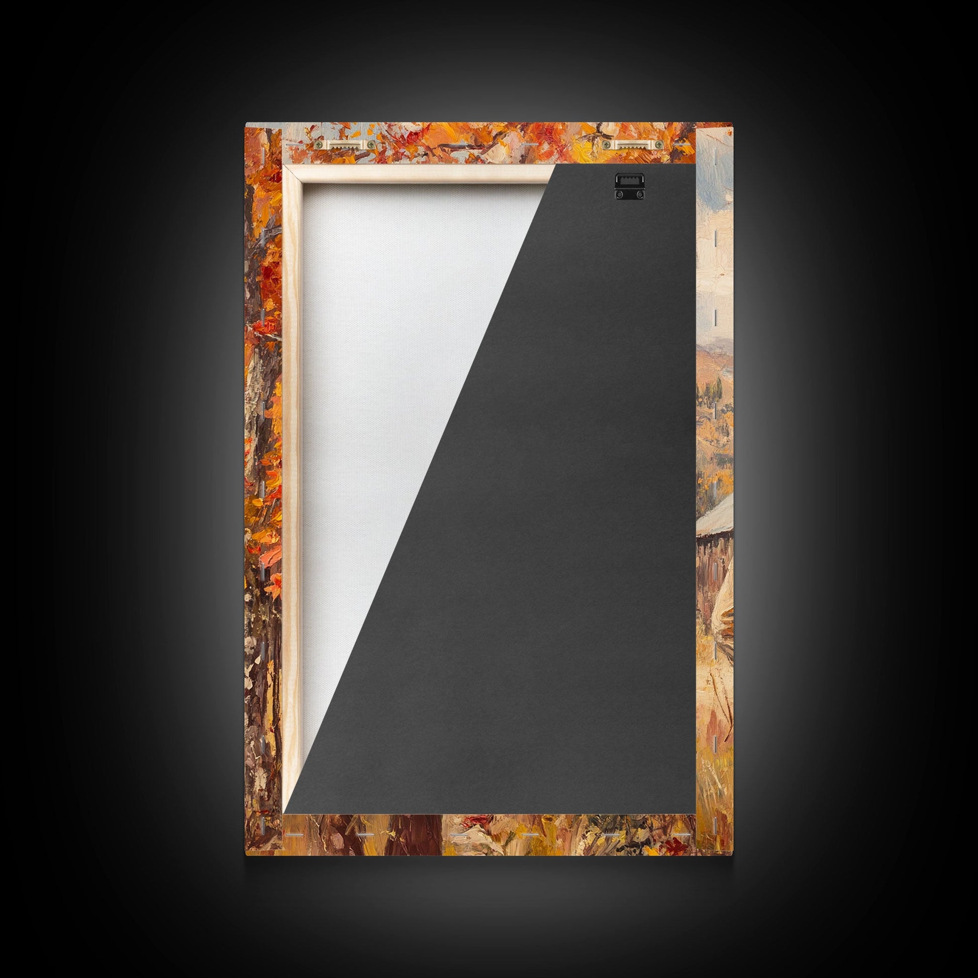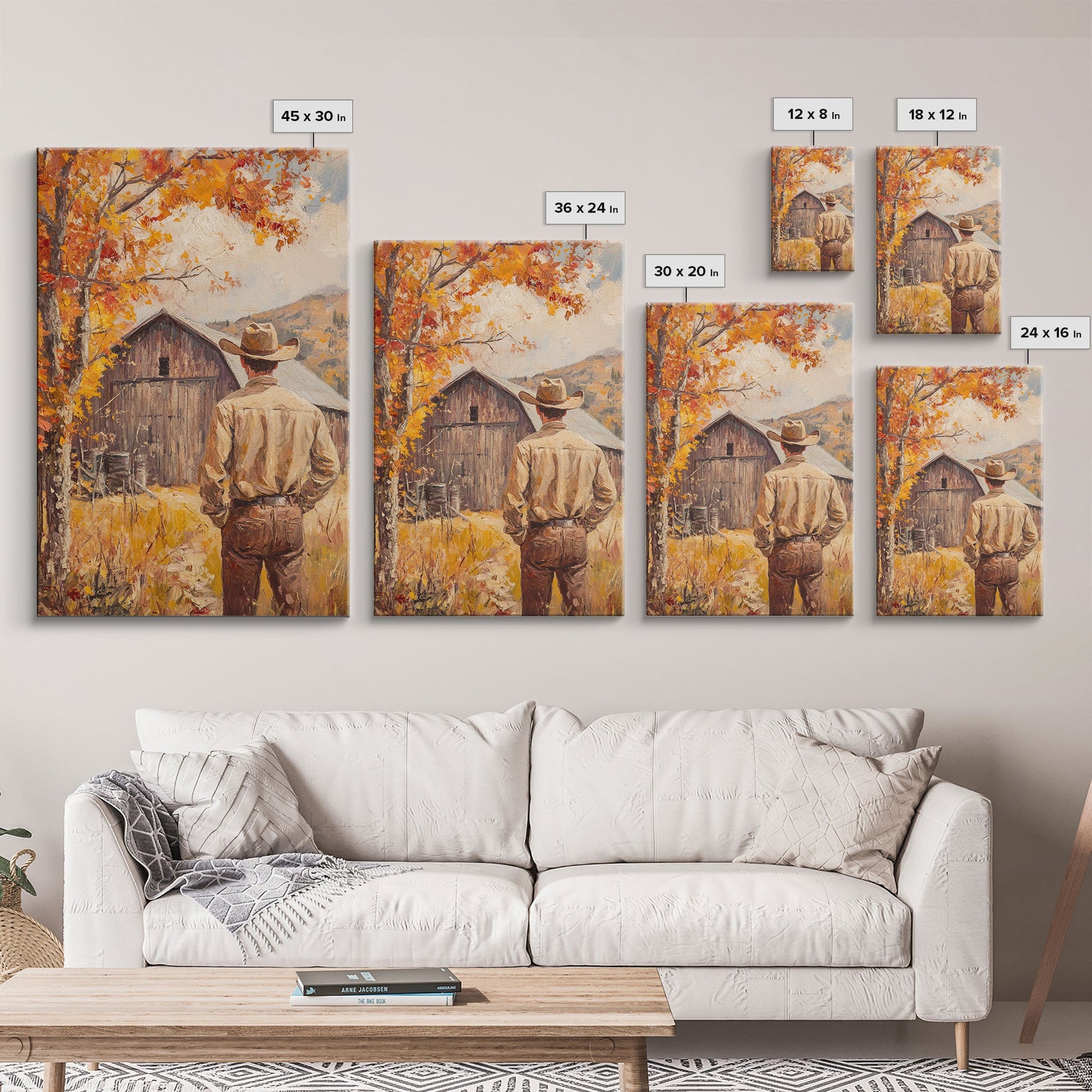 Autumn Cowboy Barn Framed Canvas Print - Fall Harvest Country Wall Art Best Gift Idea 2024 Rustic Farmhouse Decor