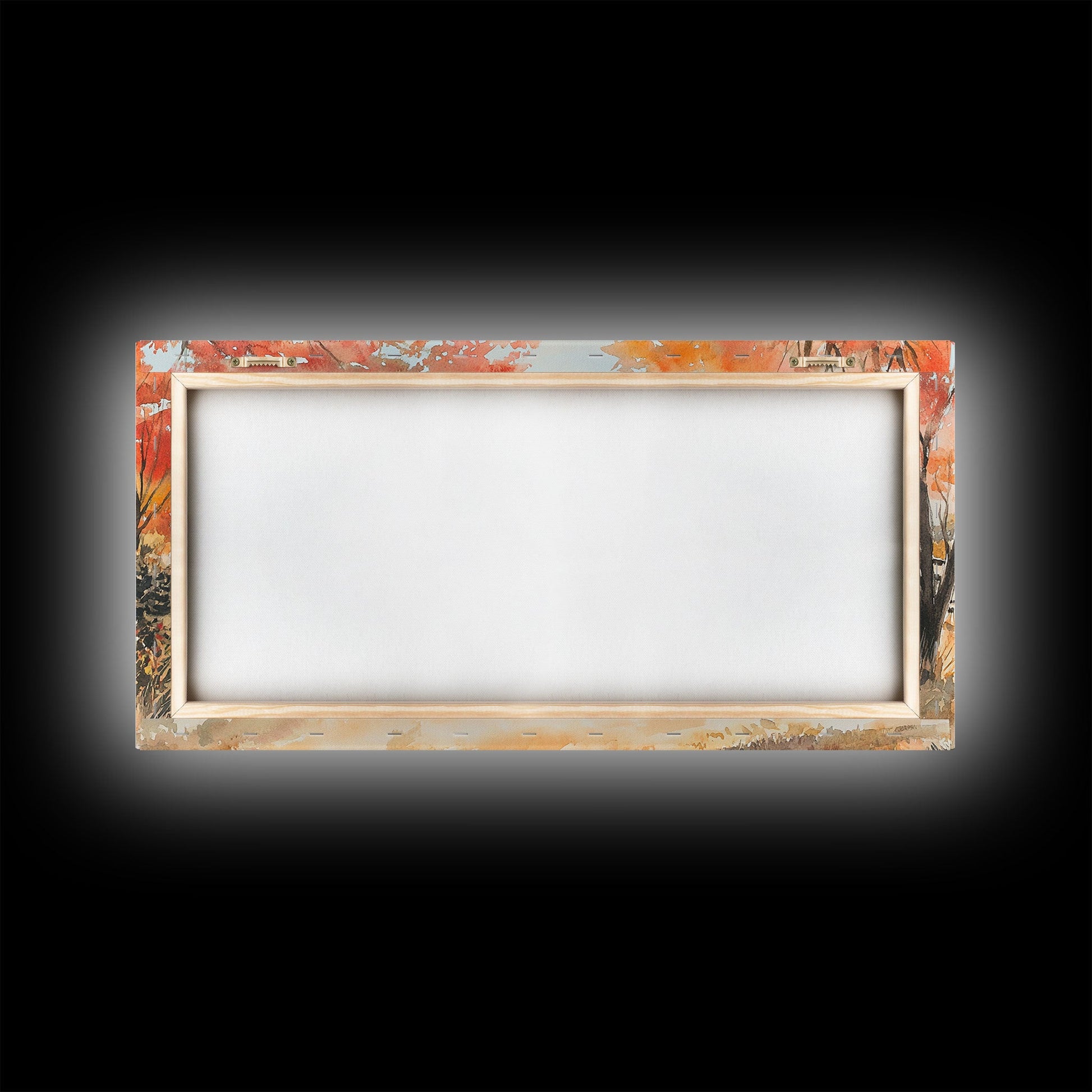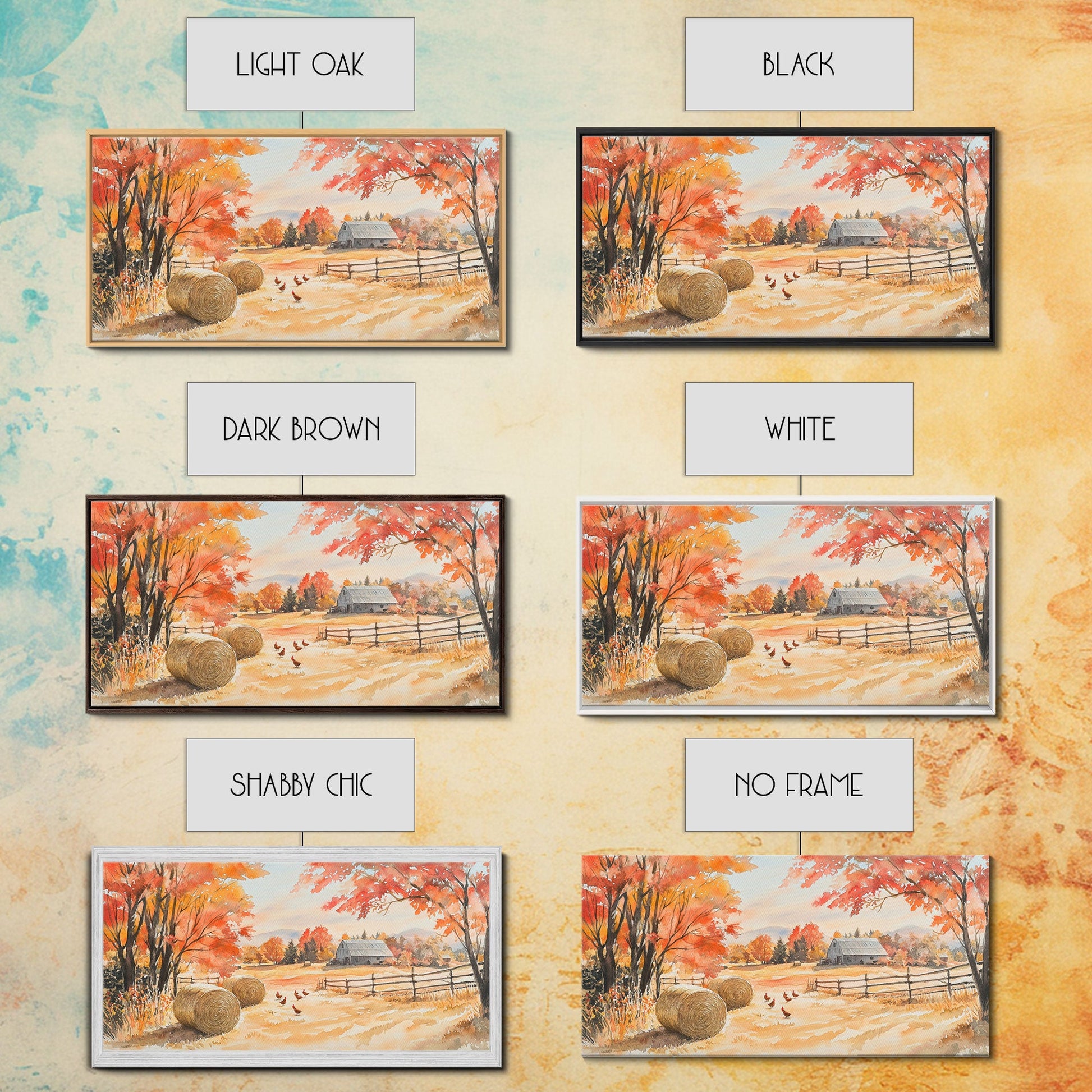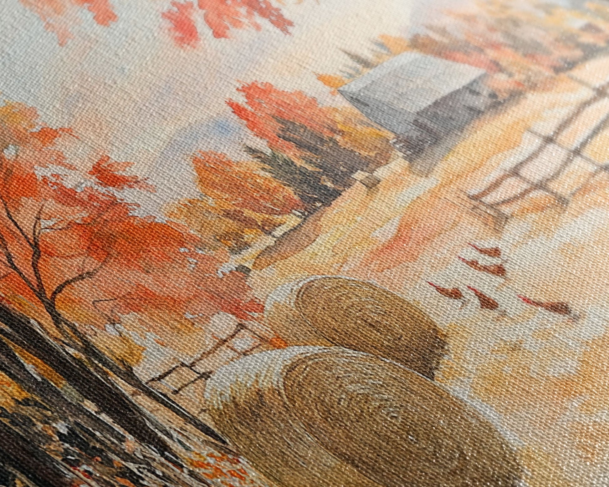 Autumn farmhouse decor Canvas Print fall landscape with barn and chickens harvest season gift idea rustic fall wall art holiday home decor