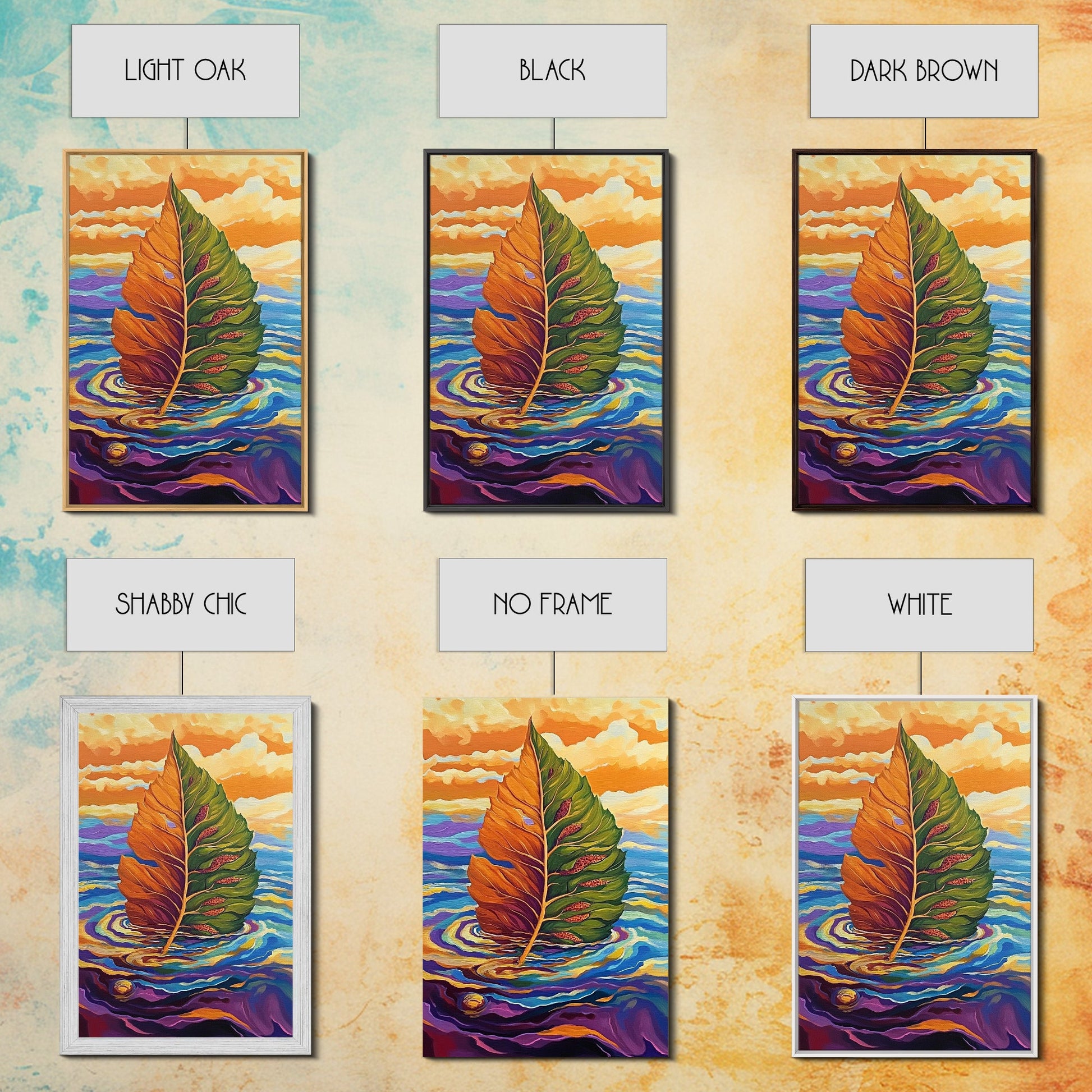 Autumn Leaf, Nature, Floating, Framed Canvas Print, floating leaf wall art, nature inspired canvas print, cozy Fall living room decor