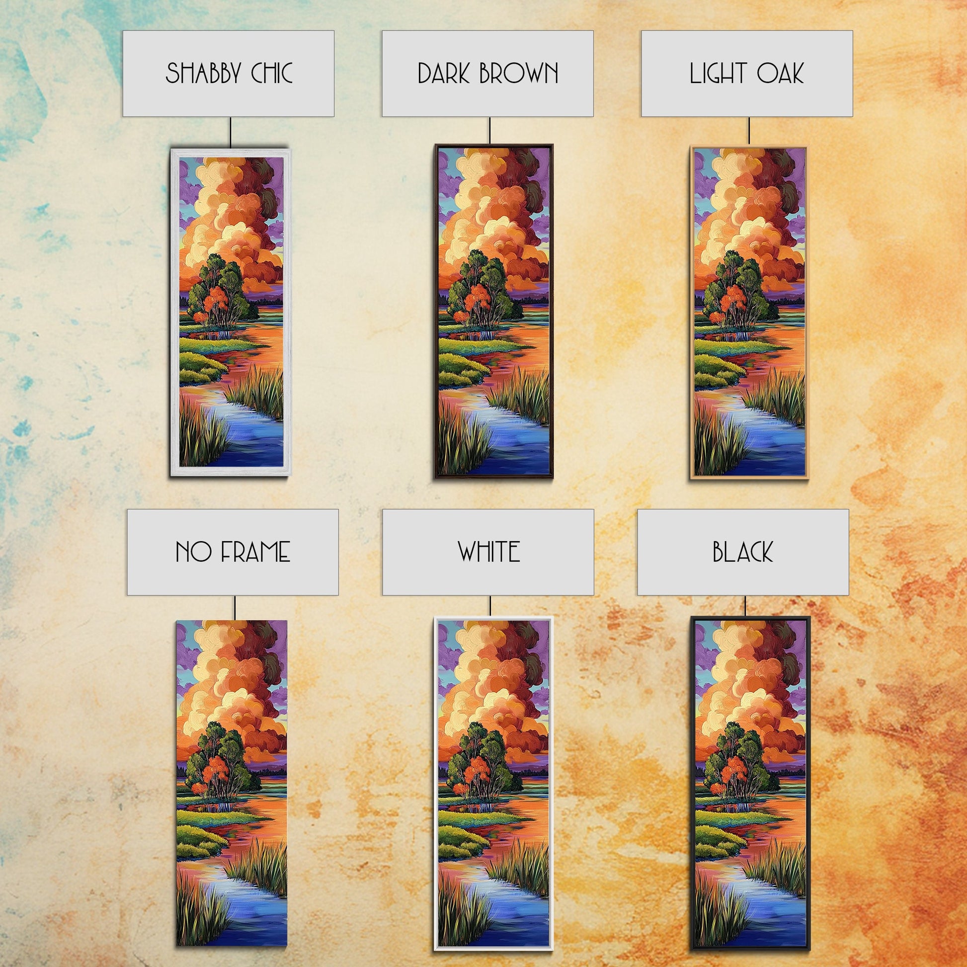 *Optional frames add a total of 1.5 inches to each dimension, for example a 10x20 canvas with a frame will be 11.5 by 21.5 inches total. All framed canvas are 1.5" total depth.