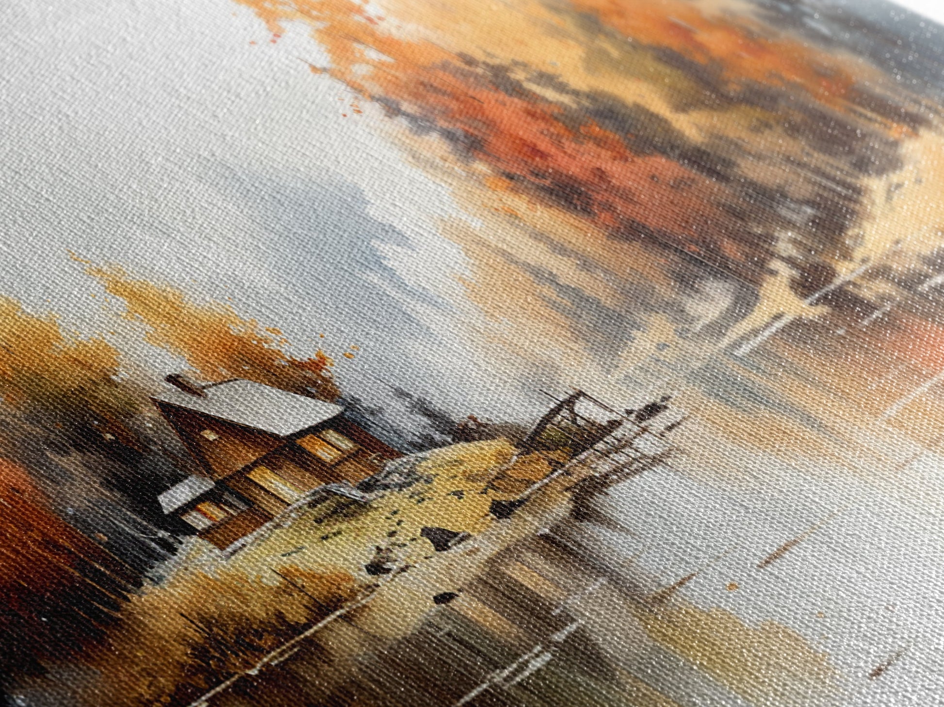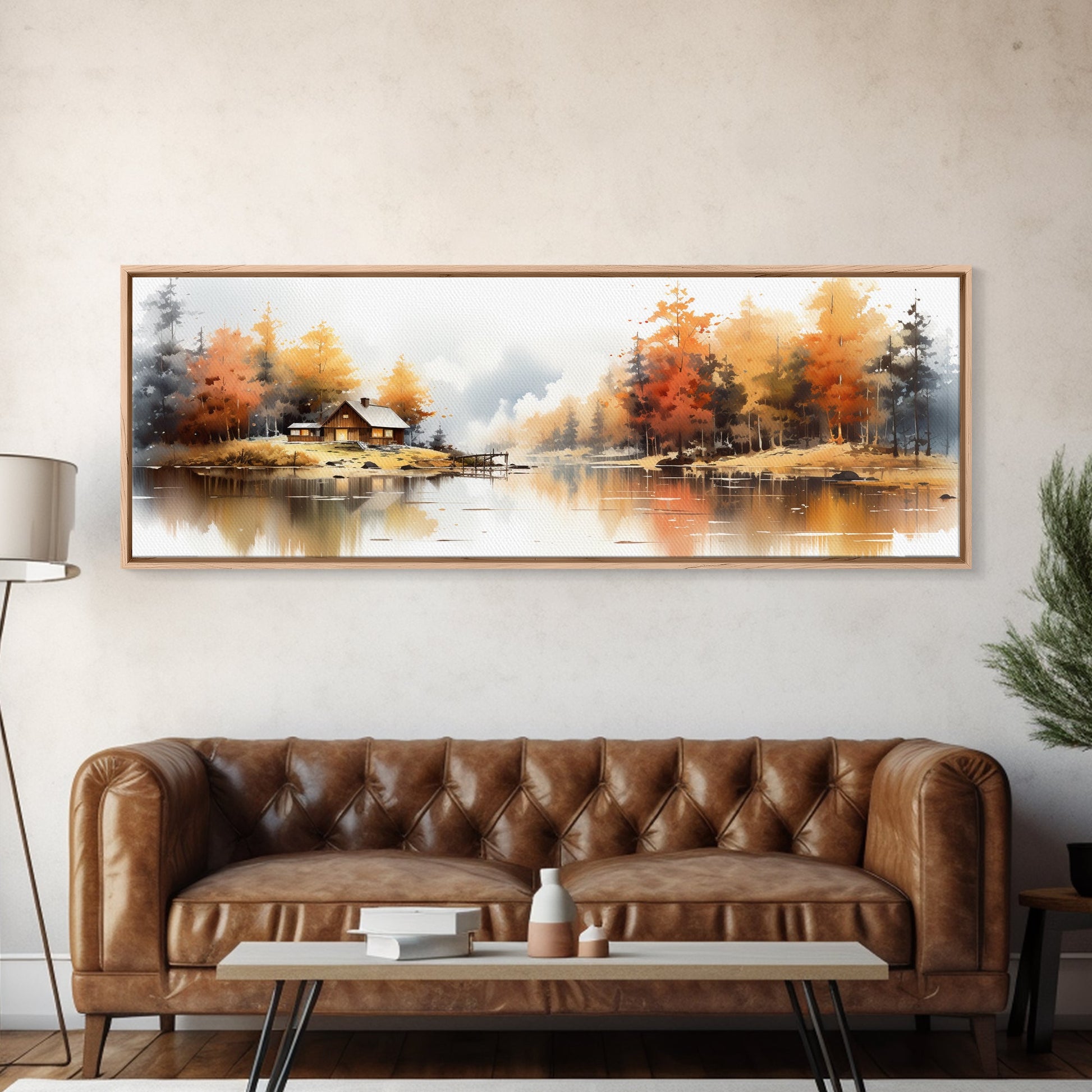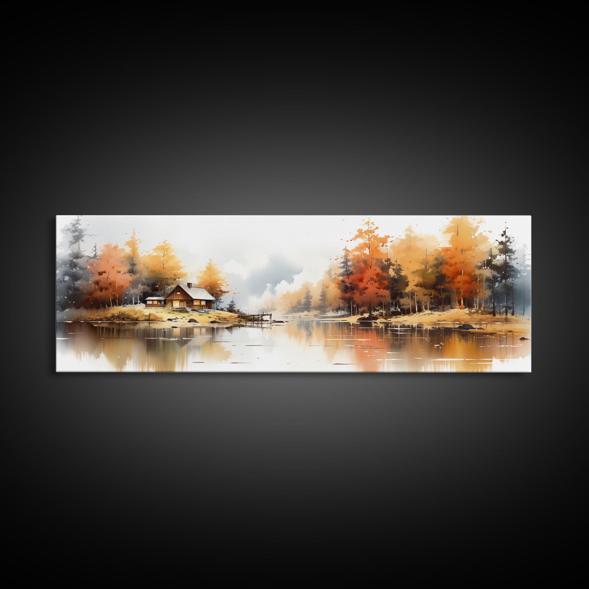 Autumn On The Lake - Watercolor Painting | Peaceful Wilderness Landscape Canvas Print | Modern Country Decor and Nature Lovers