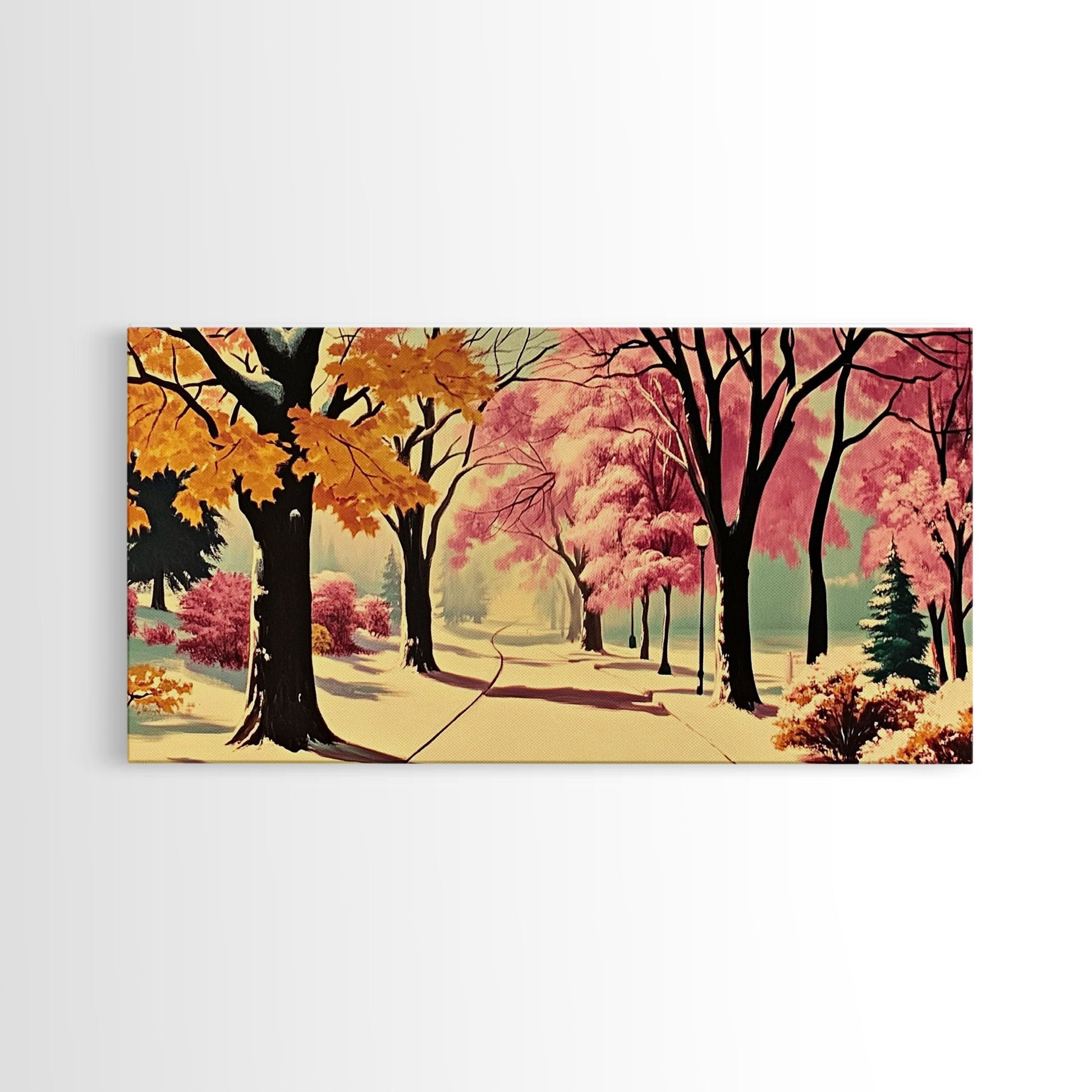 Autumn Park Path Framed Canvas Print, Warm Fall Trees and Pathway Wall Art, Seasonal Fall Home Decor, Farmhouse Gift Idea, Holiday Wall Art