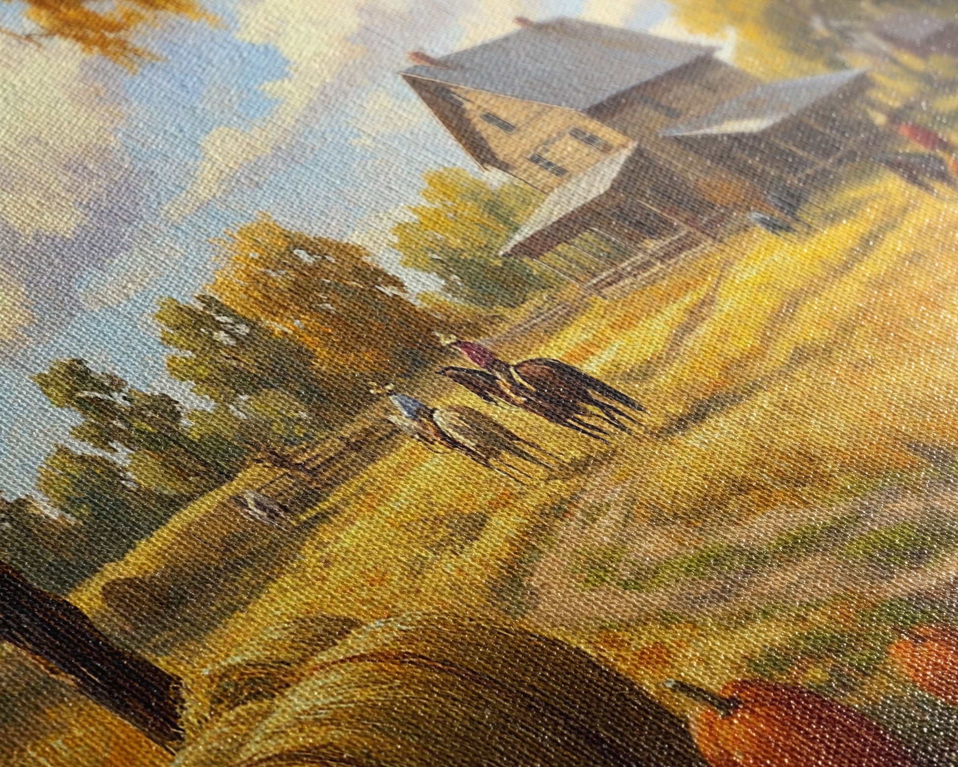 Autumn Ranch Framed Canvas Print Pumpkin Patch Rustic Art Country Home Decor Large Fall Wall Art Farmhouse Style Thanksgiving Decor