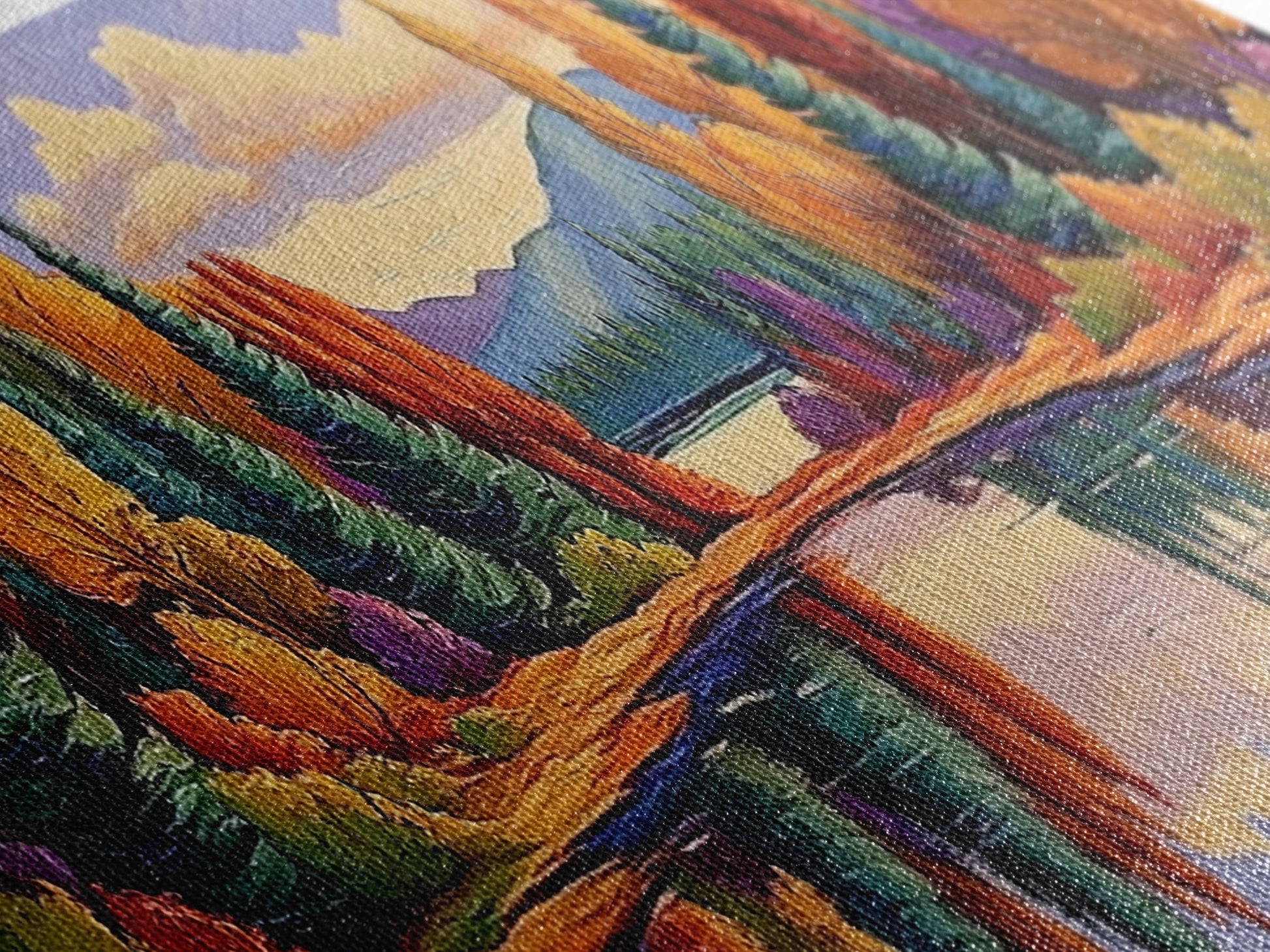 Autumn Reflections Painting, Lakeside Forest Landscape, Fall Color Trees, Framed Canvas Print, Cabin Wall Art, Cozy Living Room