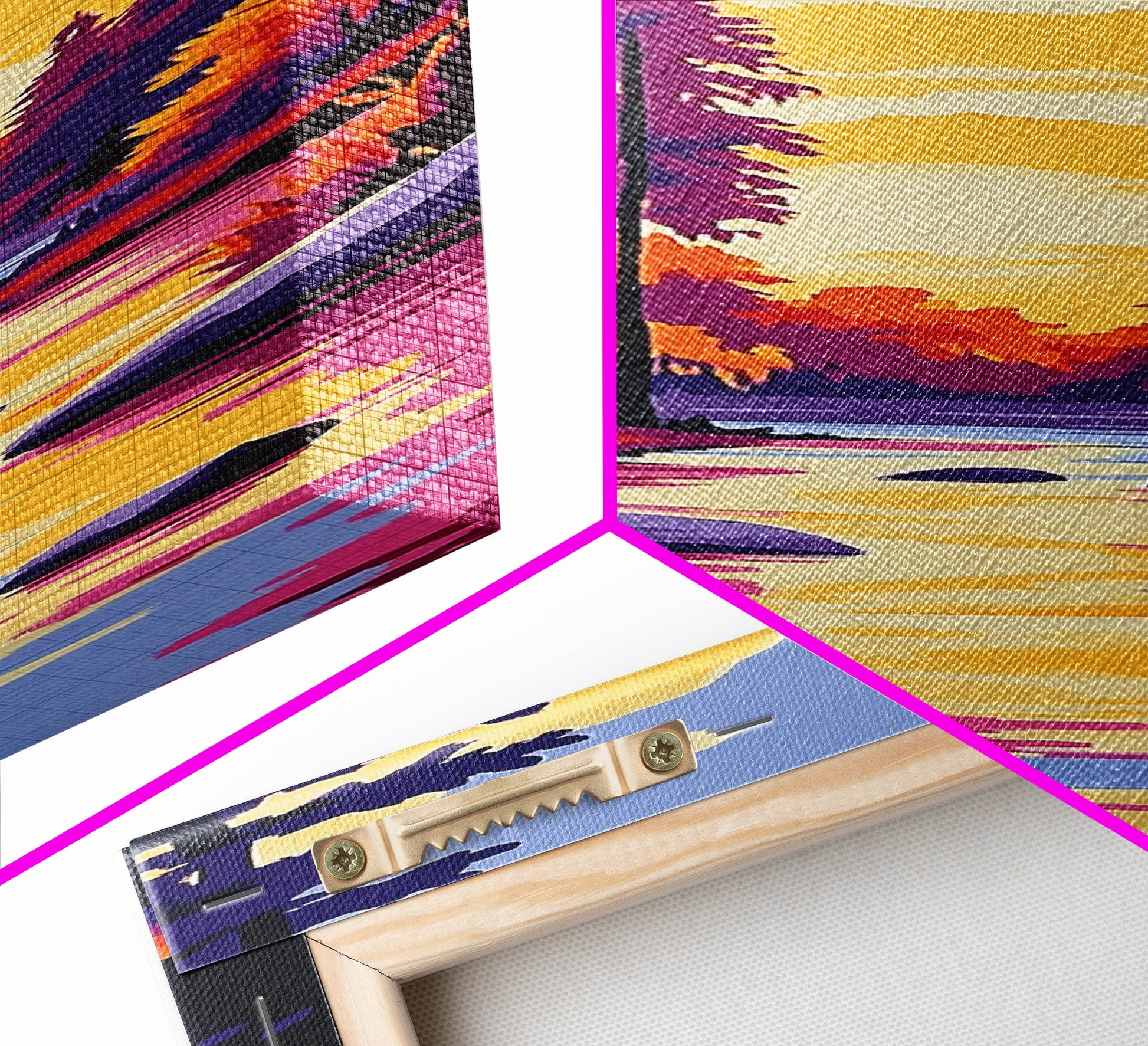 Hello and thank you for taking the time to view our modern high quality giclée artwork! We offer both posters and stretched canvas prints. Our posters are printed on Ultra Matte 60 lb / 230 GSM high quality photo paper, with a thickness of 10 mil. Our canvases are printed on museum grade 350 GSM canvas material with ECO friendly archival grade ink, then hand stretched and stapled over premium, FSC certified and shrink resistant frames. Designed and built to last a lifetime.