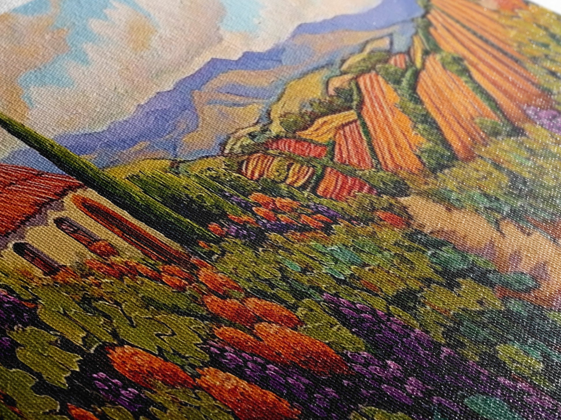 Autumn Vineyard Path, Rustic Countryside, Orange and Purple Art, Framed Canvas Print, Kitchen Wall Decor, Fall Landscape Painting