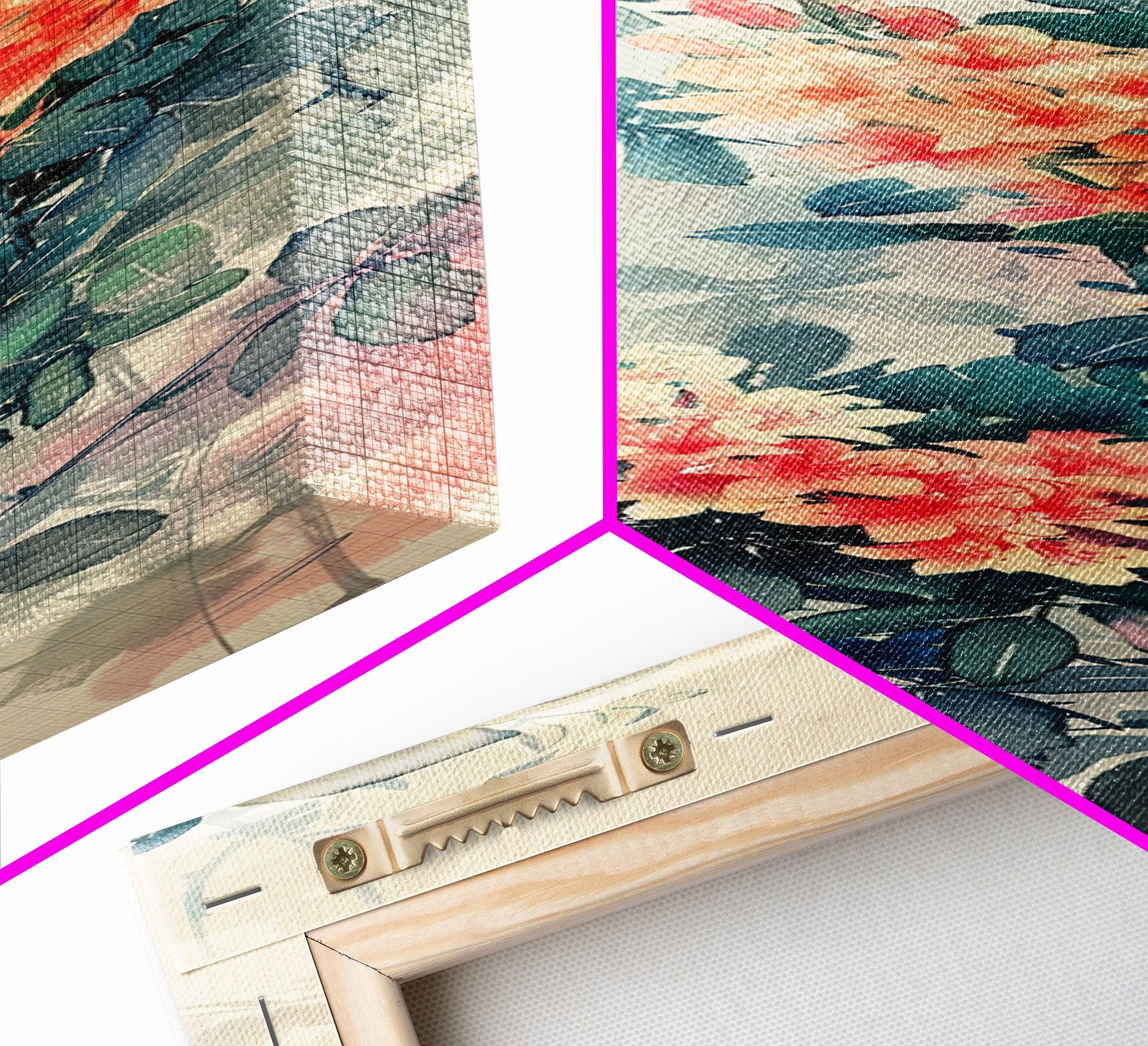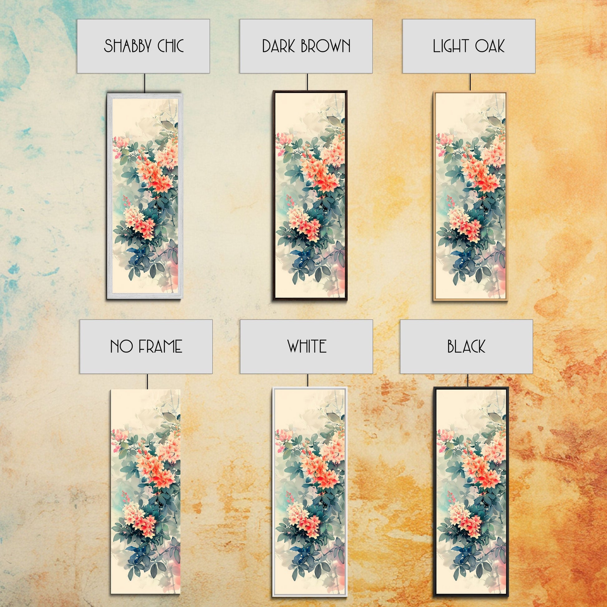 Azalea Blossoms Skinny Art Tall Art Japanese Ukiyo-e Inspired Floral Framed Canvas Print for Elegant and Timeless Decor