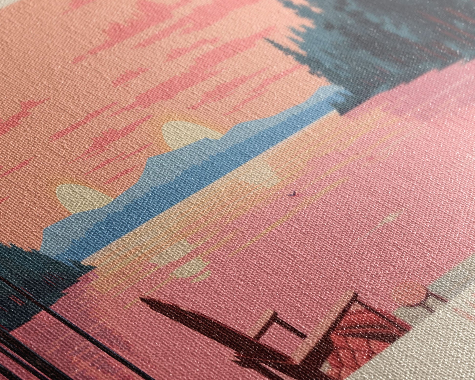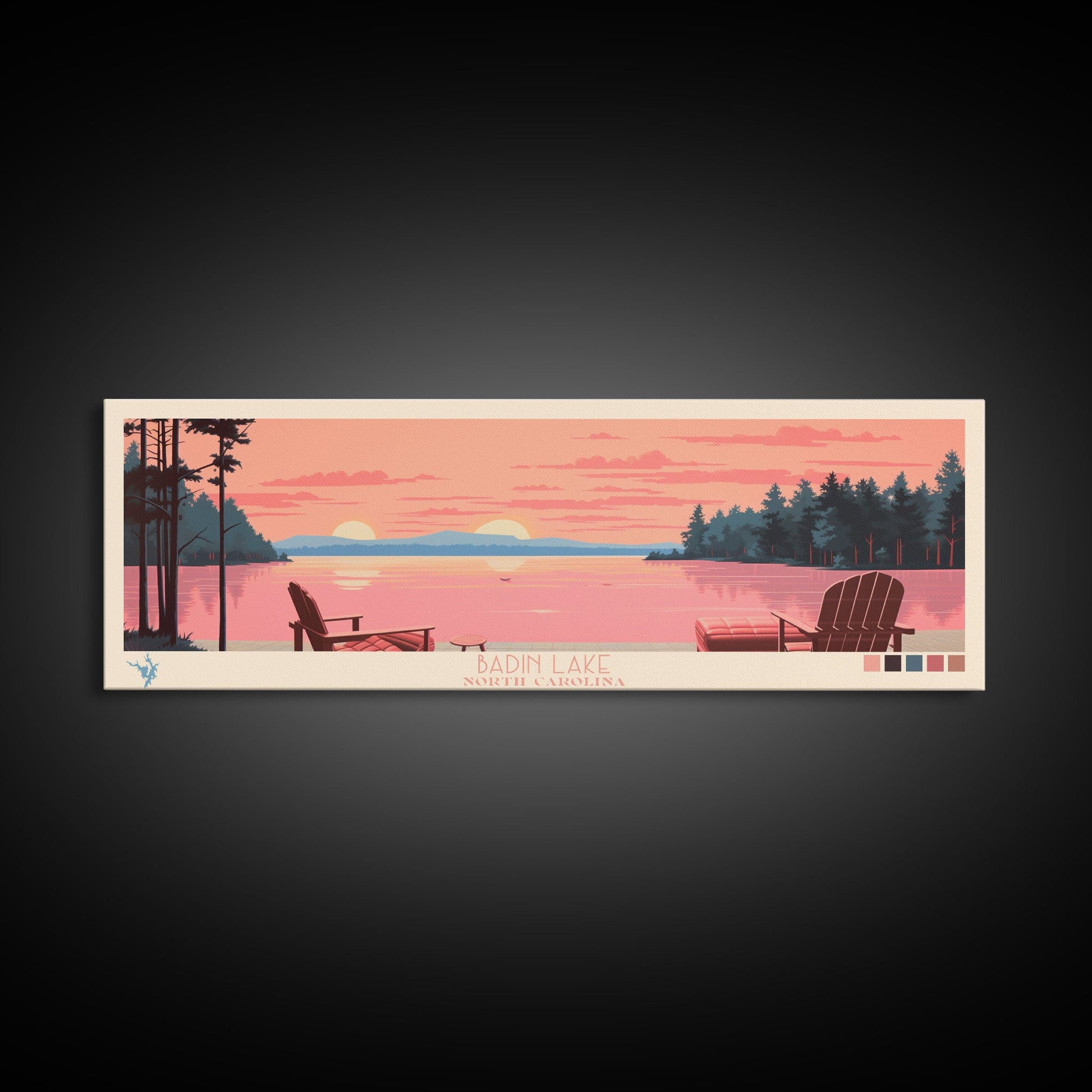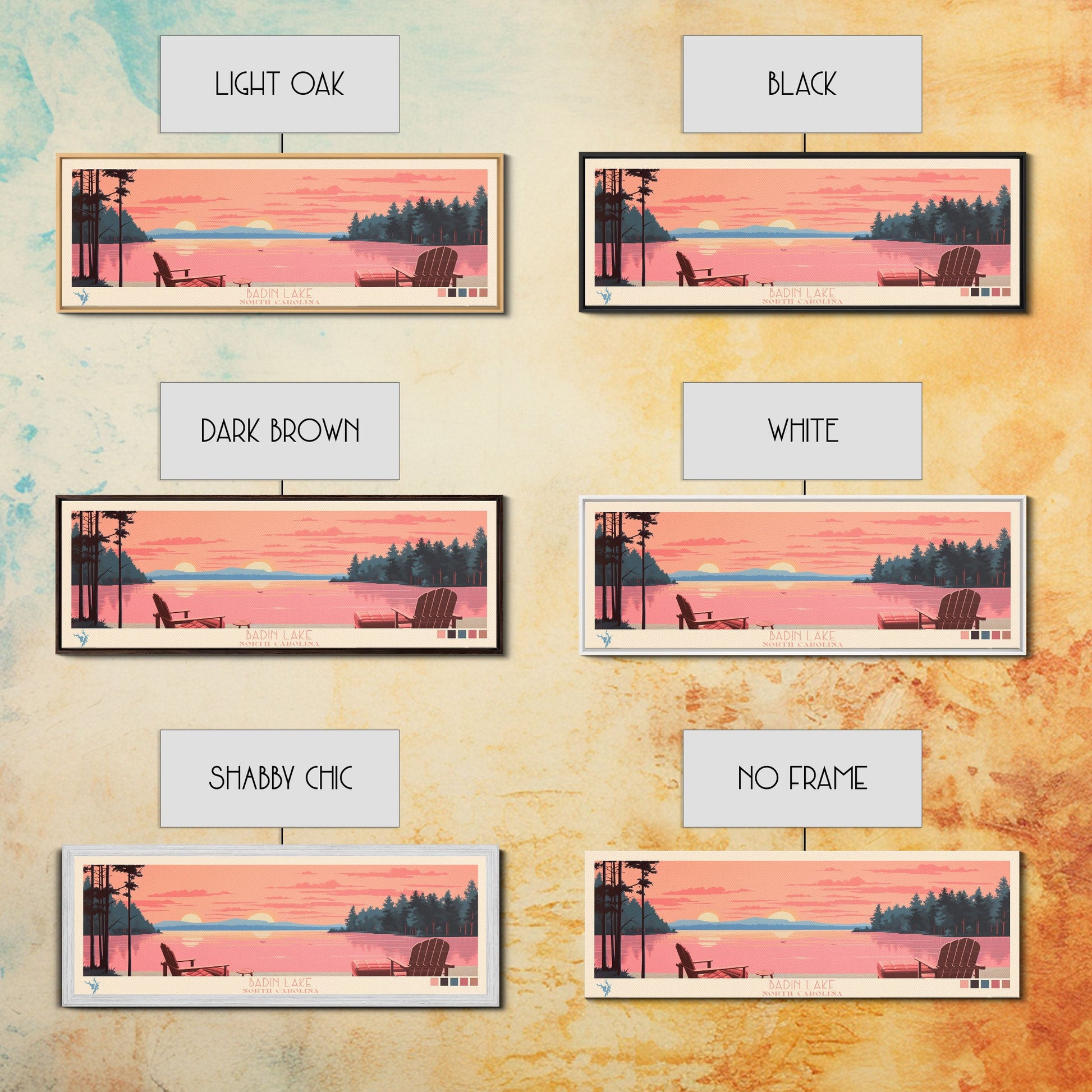 Badin Lake North Carolina Framed Canvas Print, Panoramic Wall Art, Midcentury Modern, Pop Art, Travel Poster, Scenic Bedroom Art