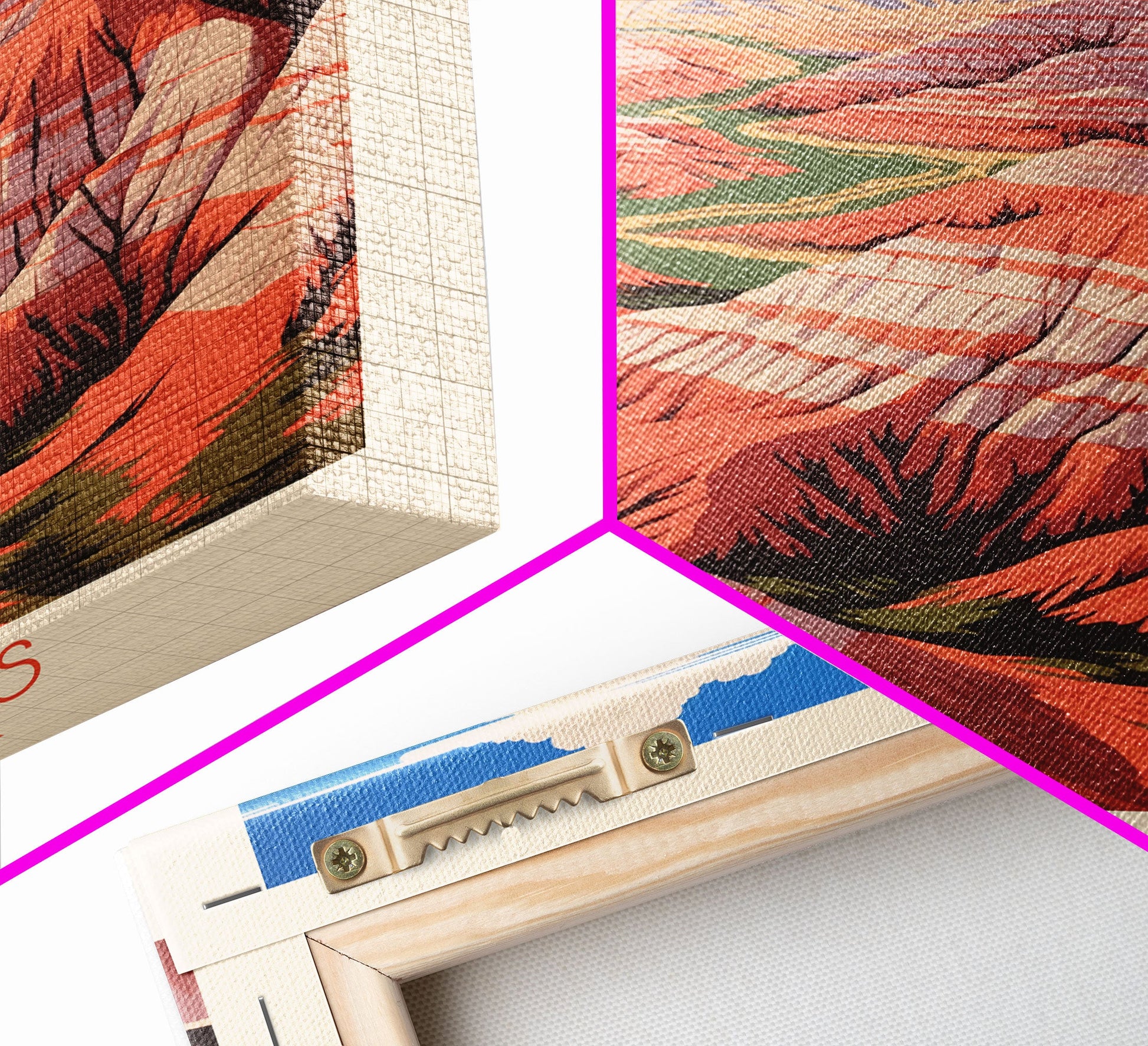 Badlands National Park, Framed Wall Art Canvas Print, Travel Poster, South Dakota Travel Art, Roadtrip Decor, Cool Art, Retro State Park Art