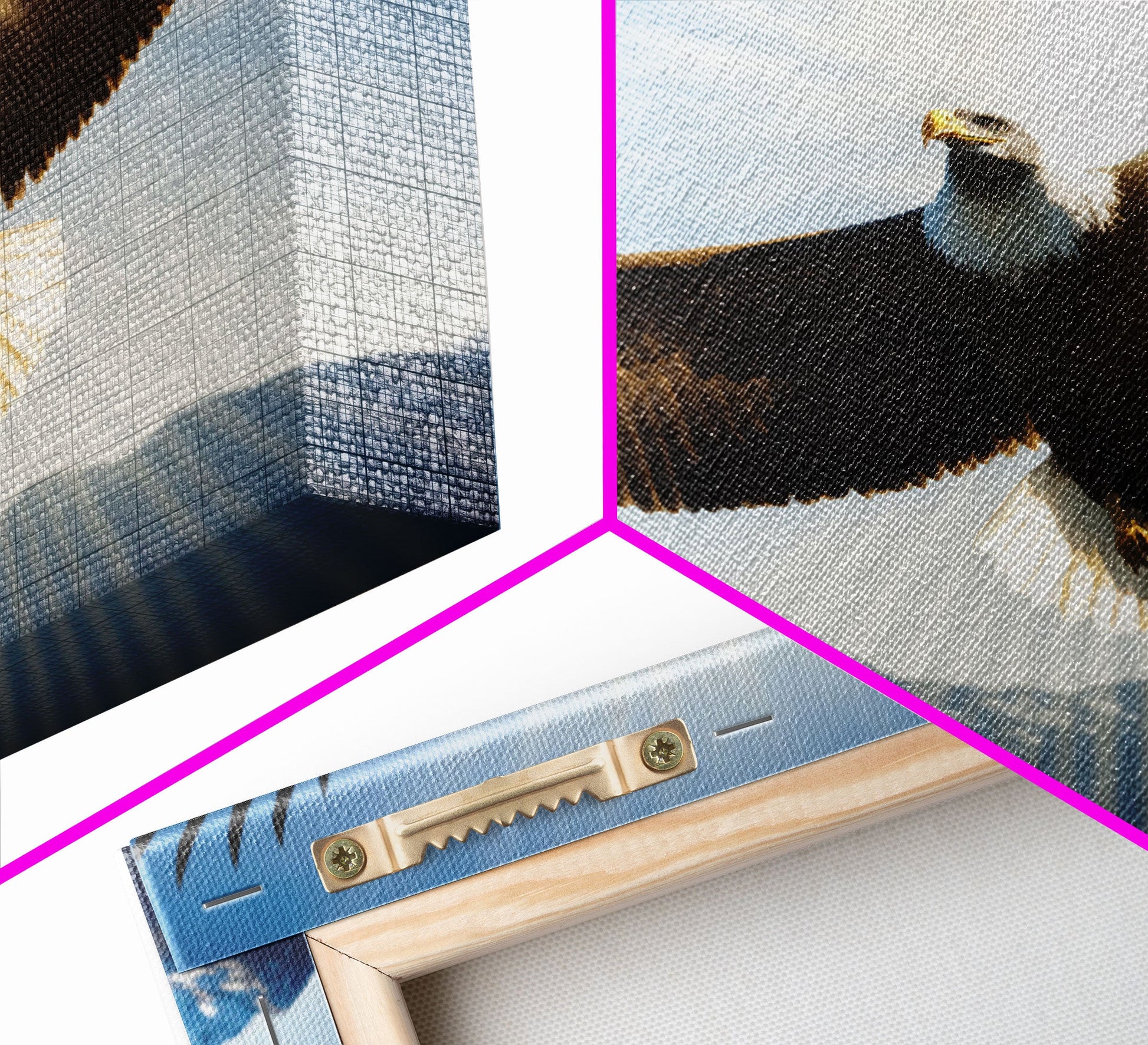Bald Eagle in a Mountain Clouds Canvas Wall Art Design, Framed Canvas Print Decor for Home & Office Decoration, CANVAS READY to Hang